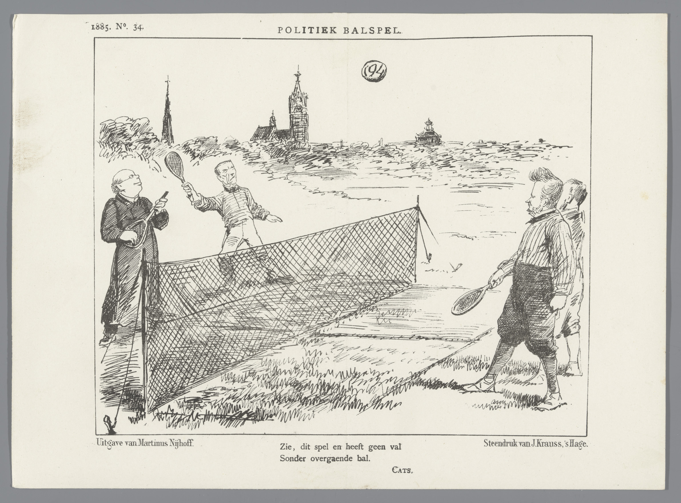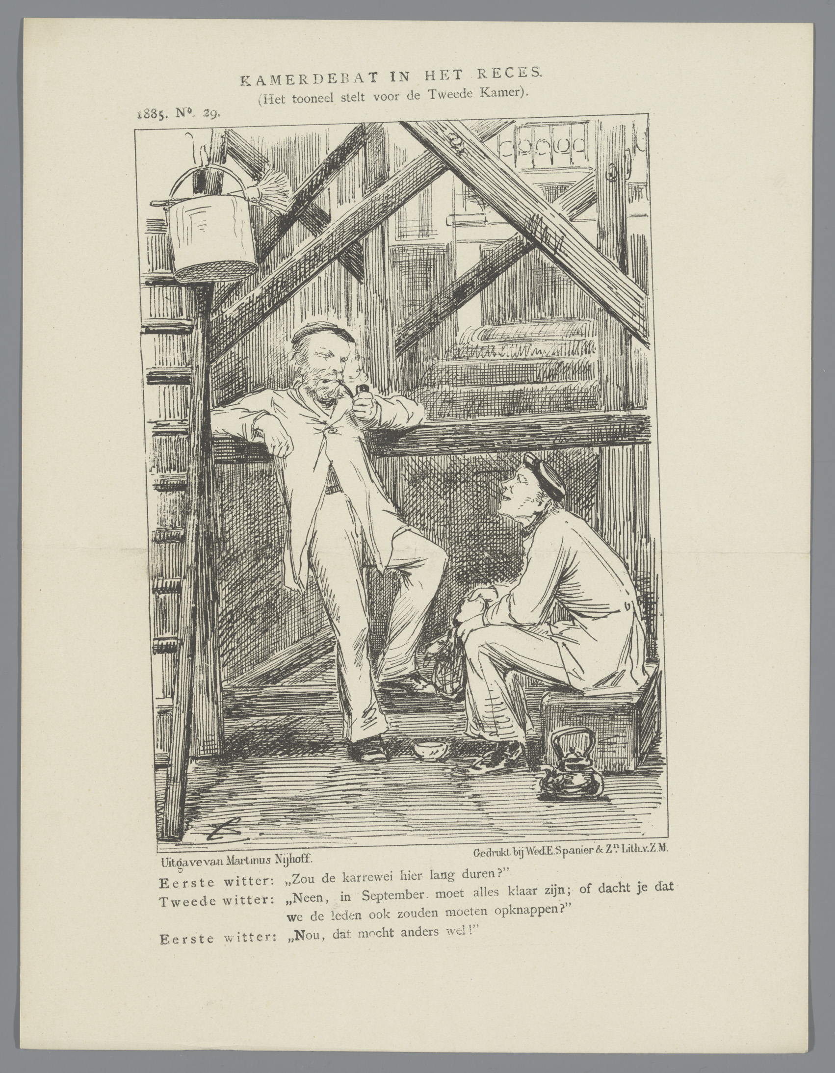 Spotprent op de kamerdebatten gehouden tijdes het re...