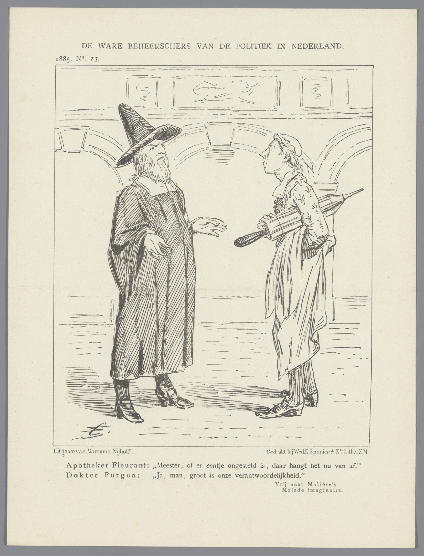 Spotprent over twee kwakzalvers in de politiek, 1885