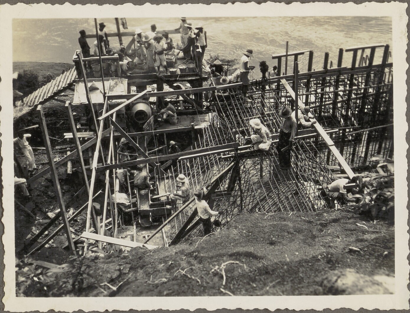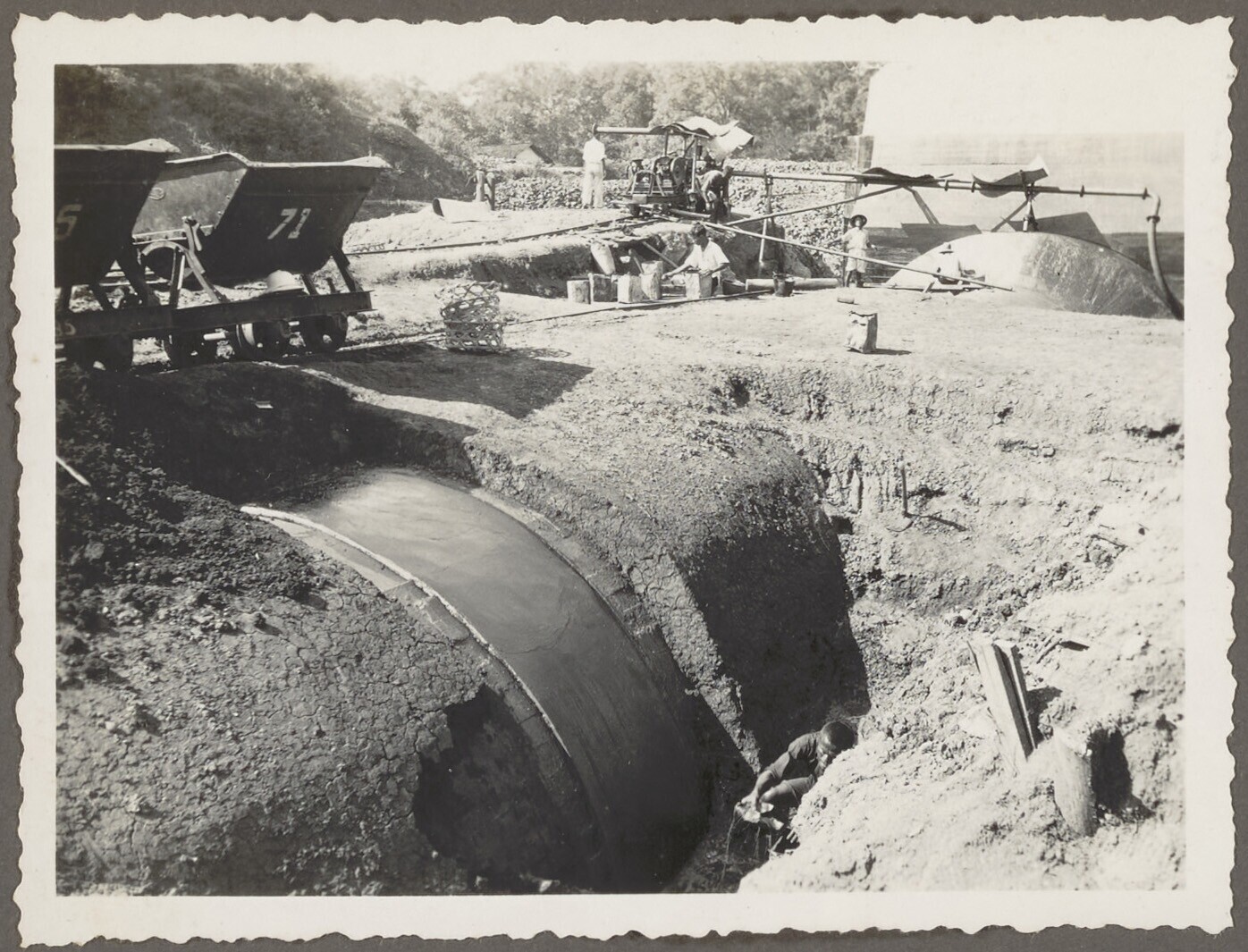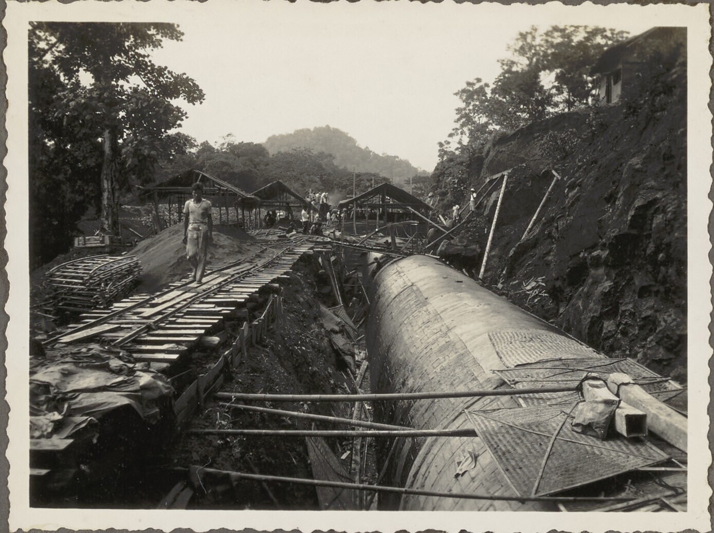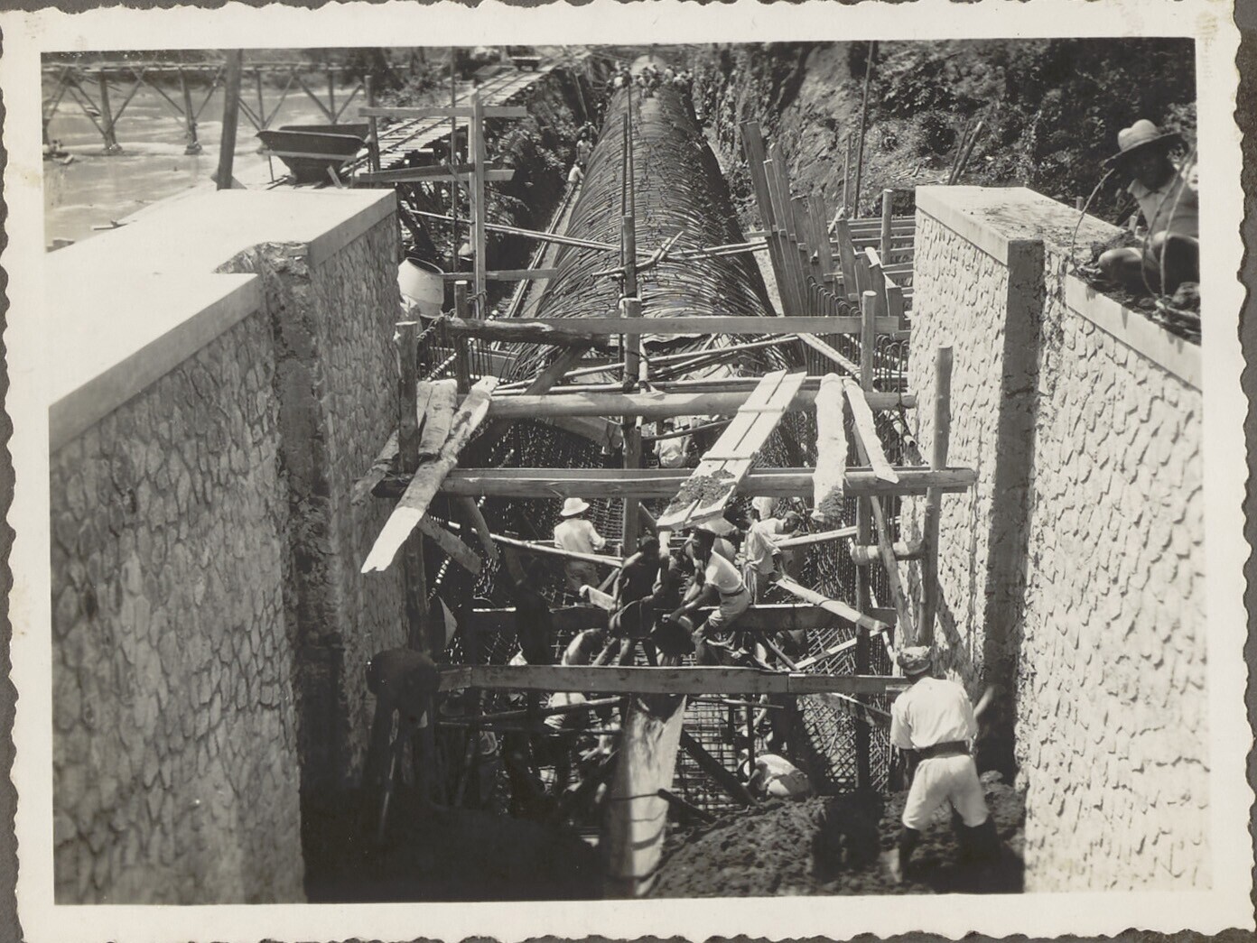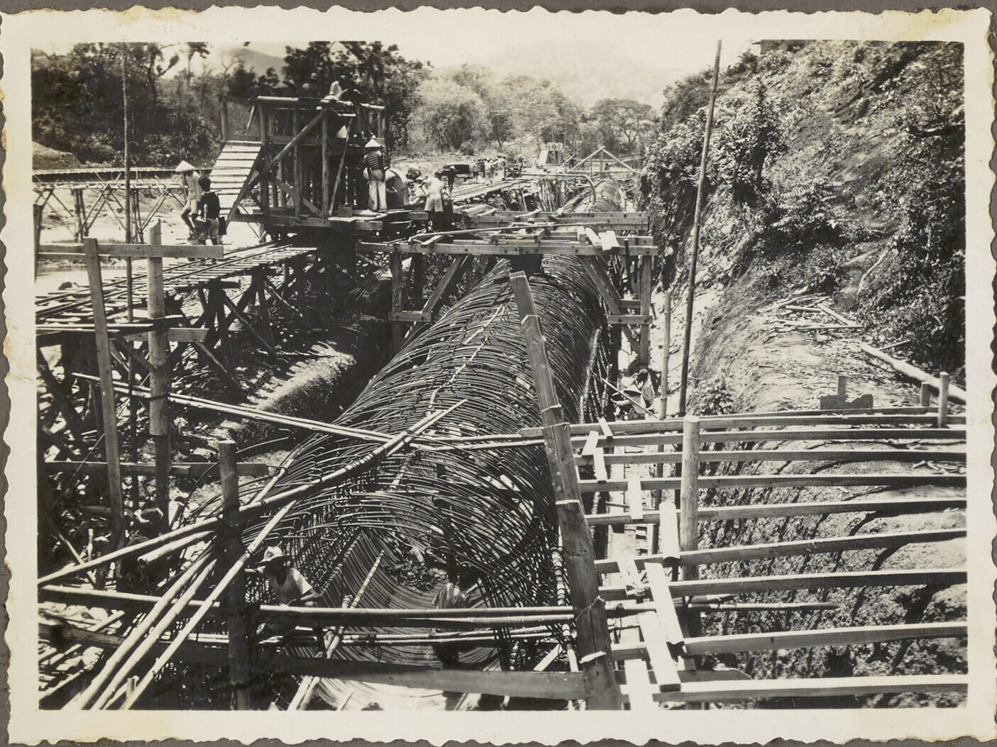 Woelbak in aanbouw door Javaanse arbeiders