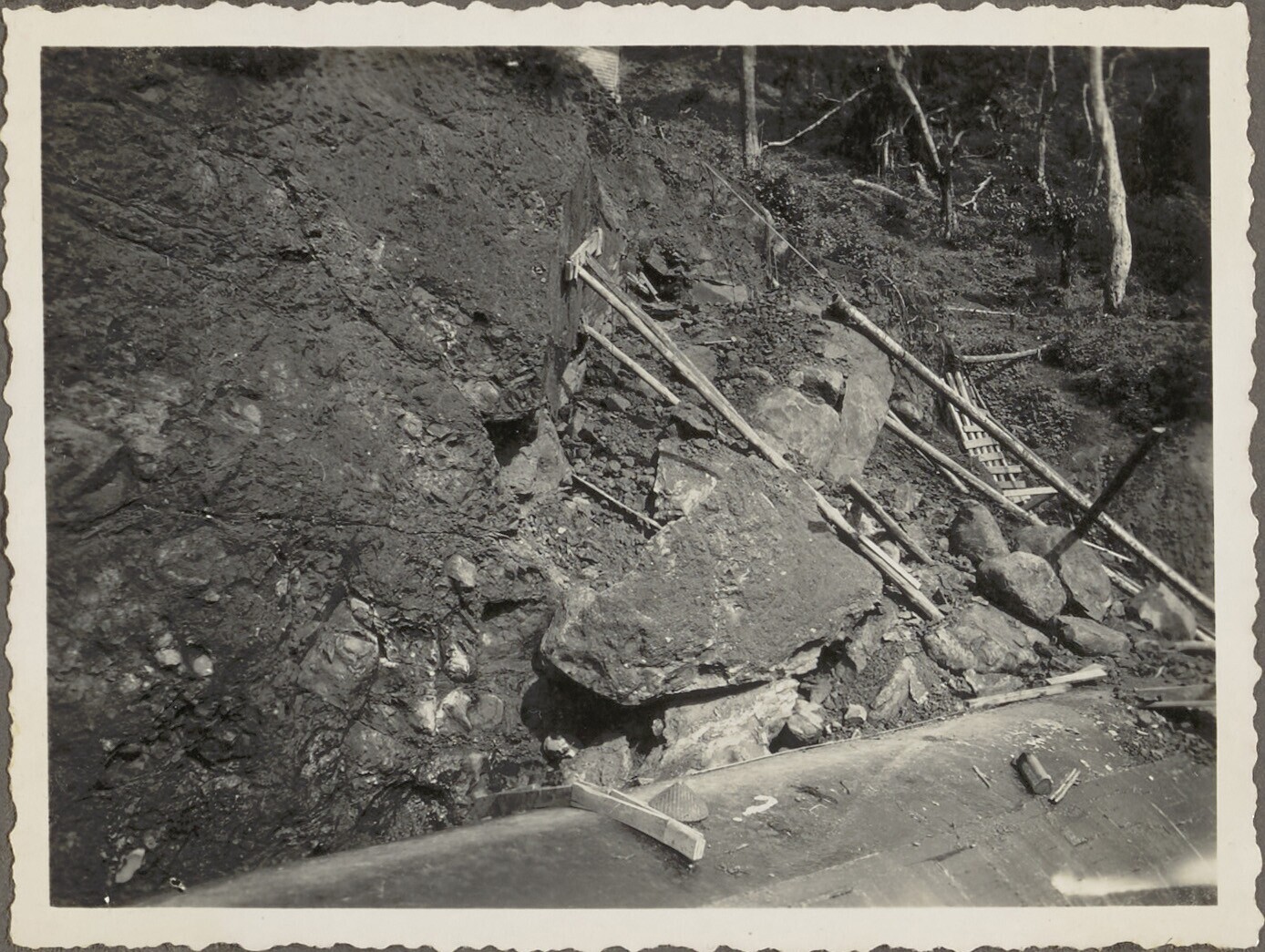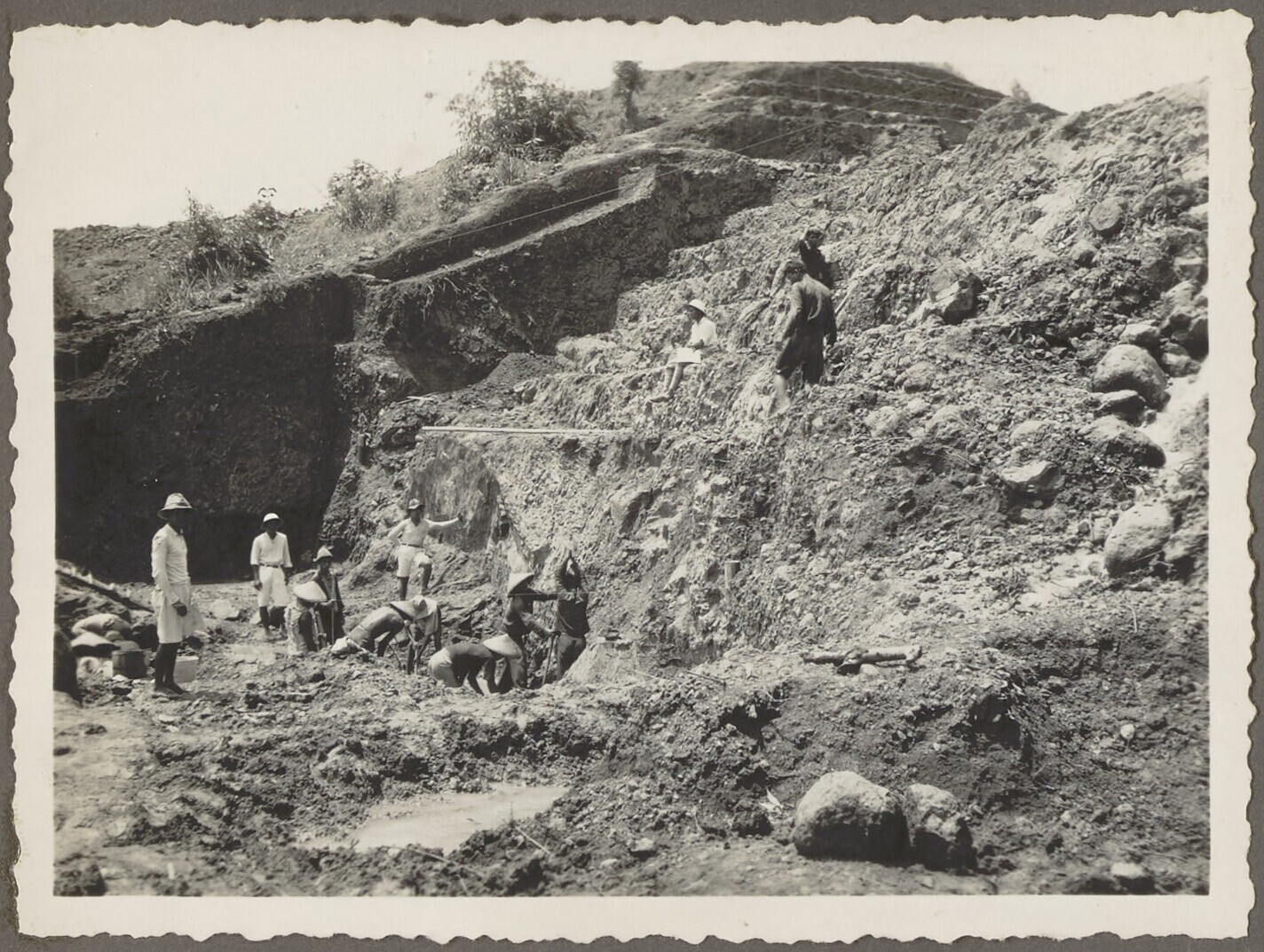 Graven van proefkuilen door Javaanse arbeiders