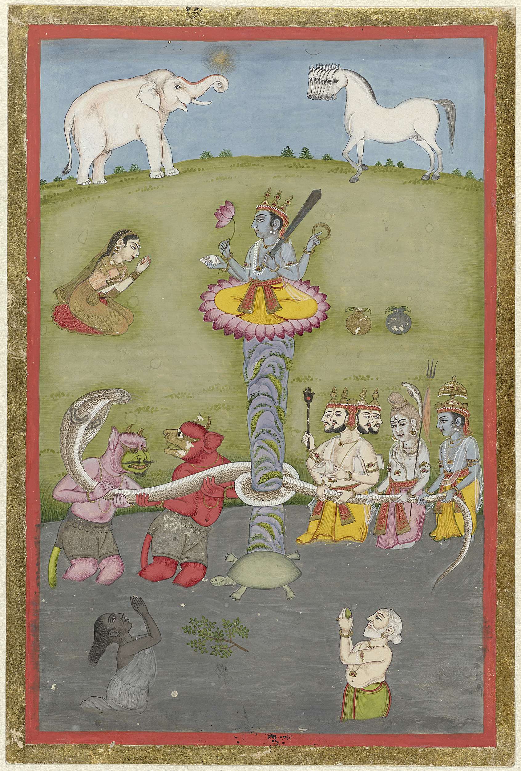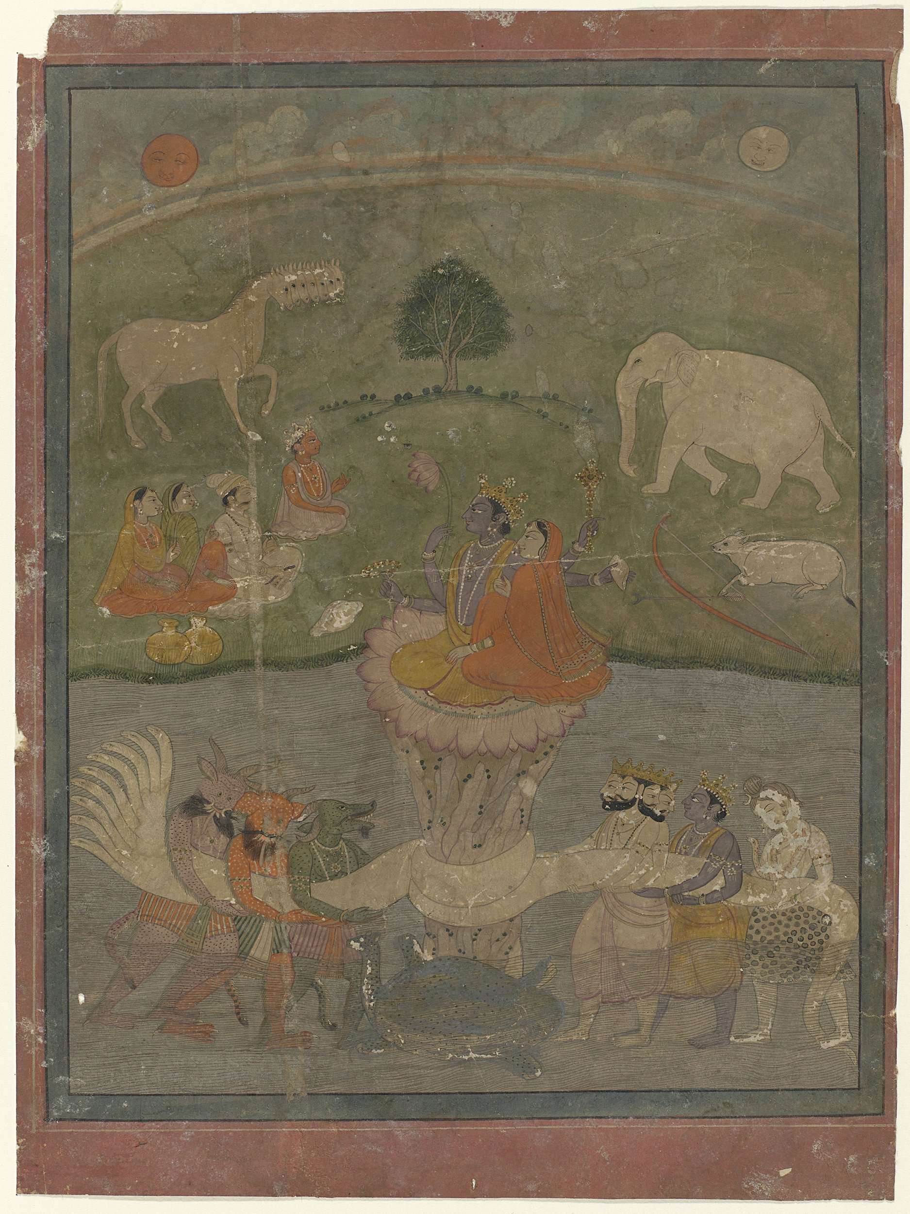 Vishnu op wereldslang Ananta, geboorte van Brahma