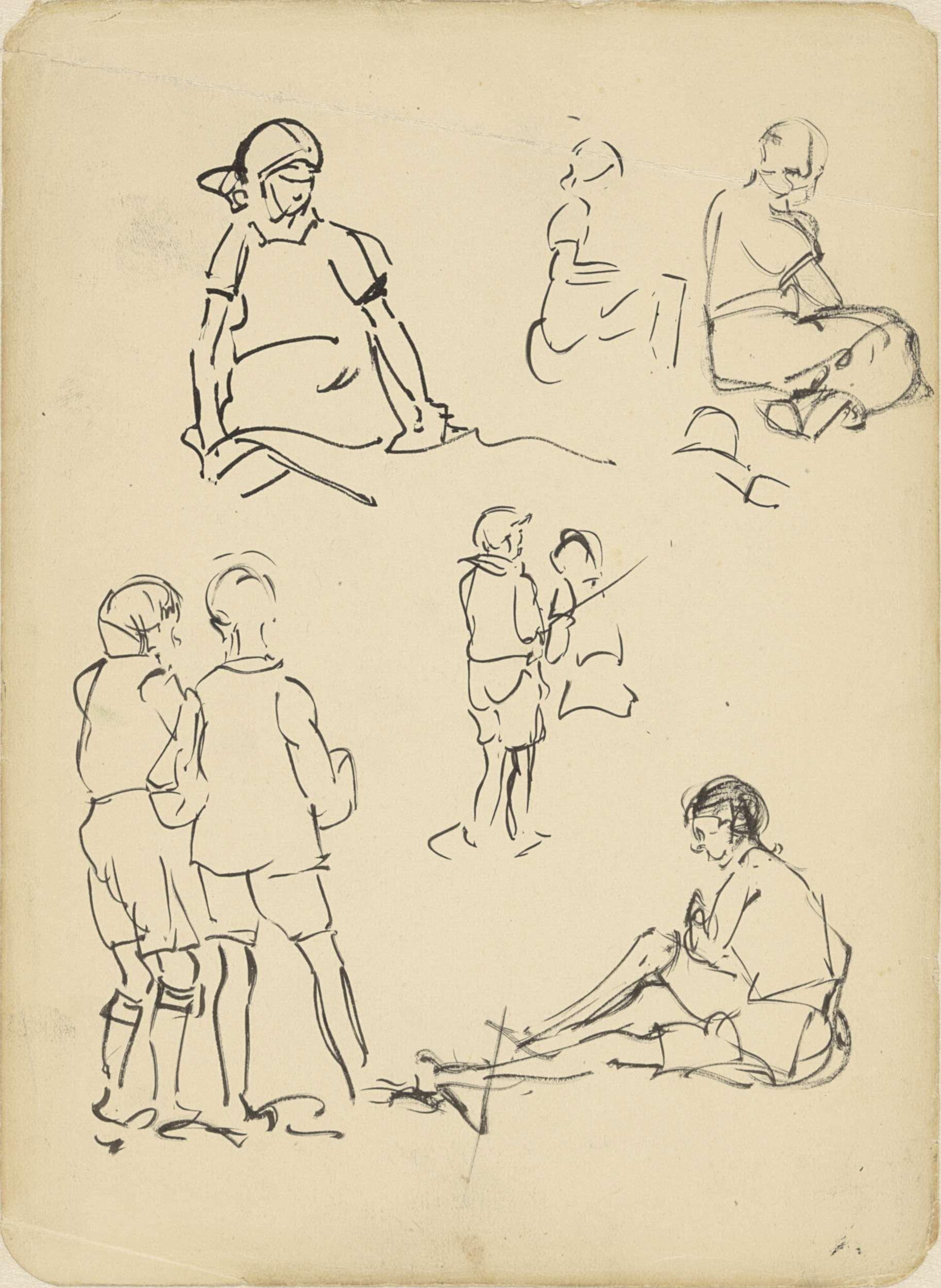 Vijf vrouwen onder een donkerblauwe hemel voor een w...