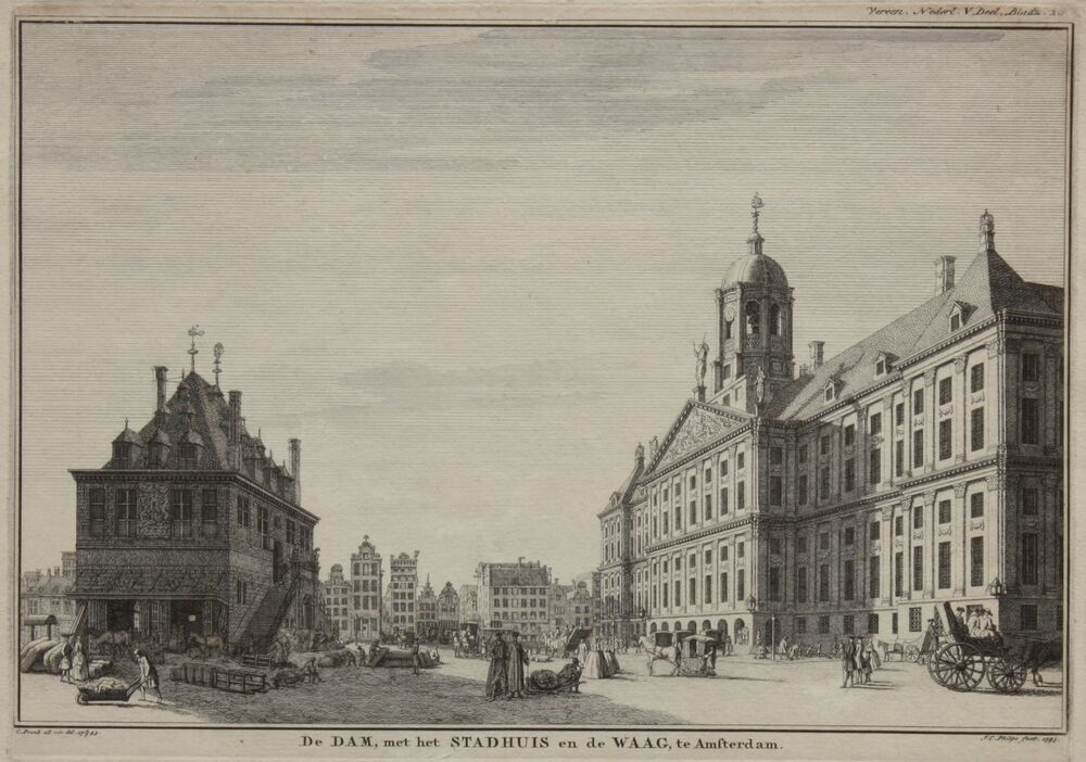 De DAM, met het STADHUIS en de WAAG, te Amsterdam