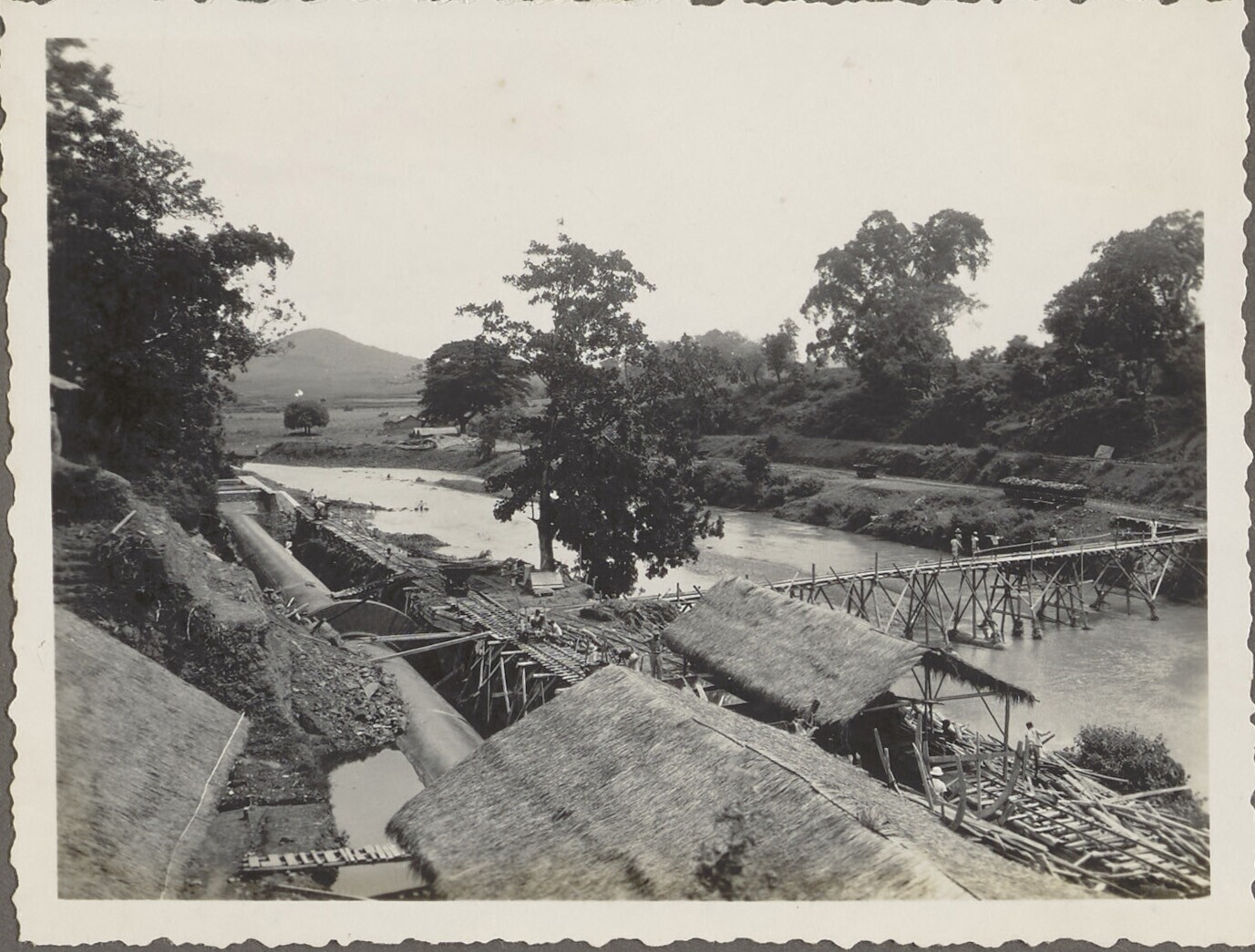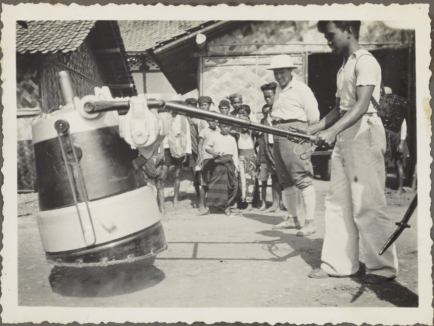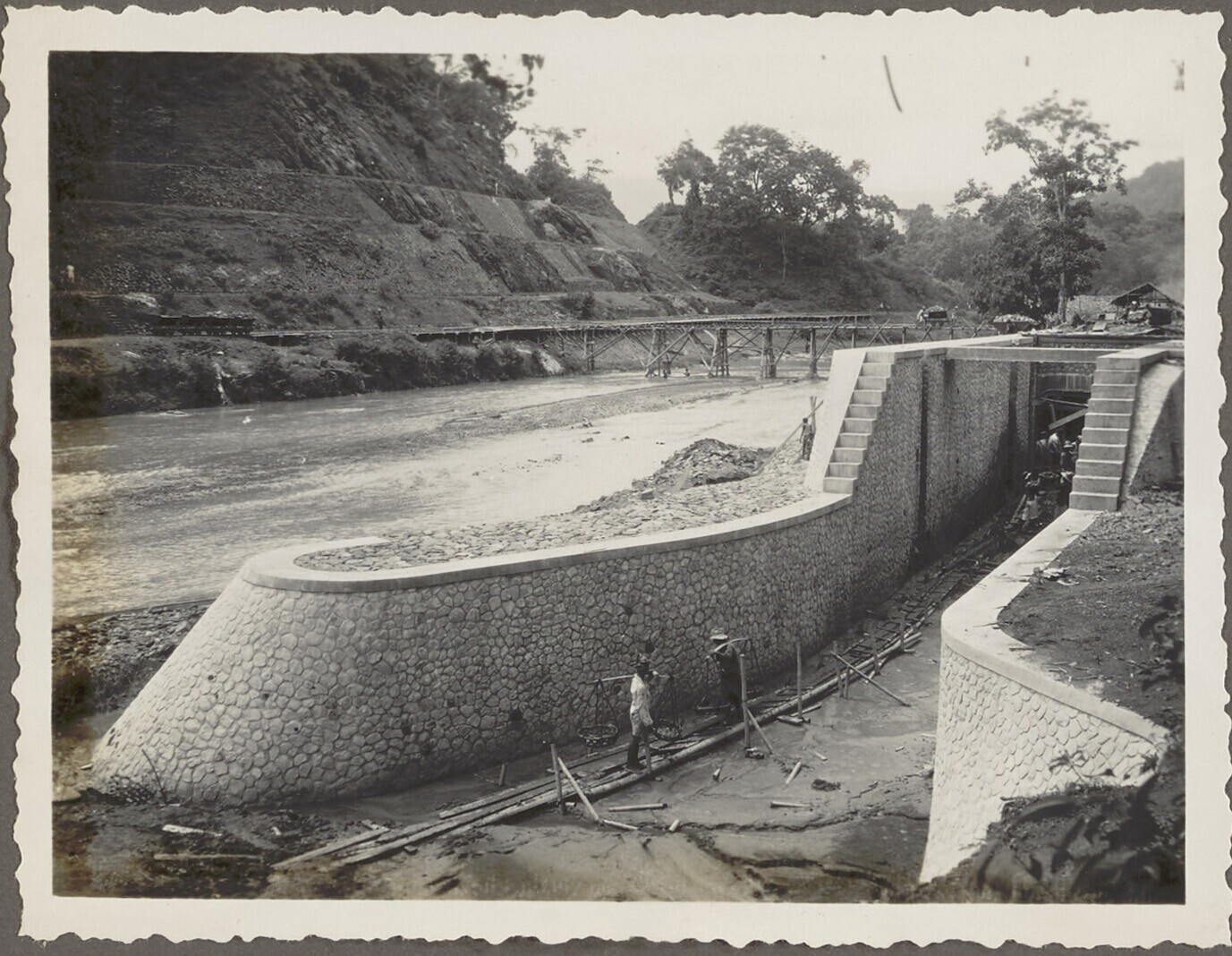 Aanleg van overlaat bij Kratjak door Javaanse arbeiders