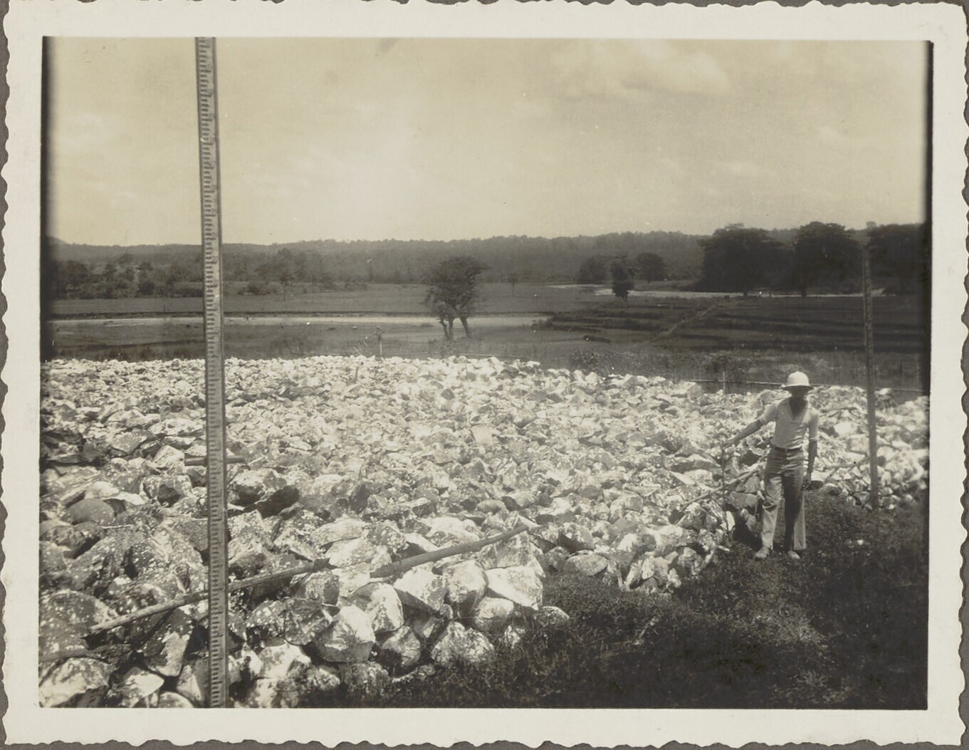 Graafwerkzaamheden bij aanleg van een overlaat bij K...