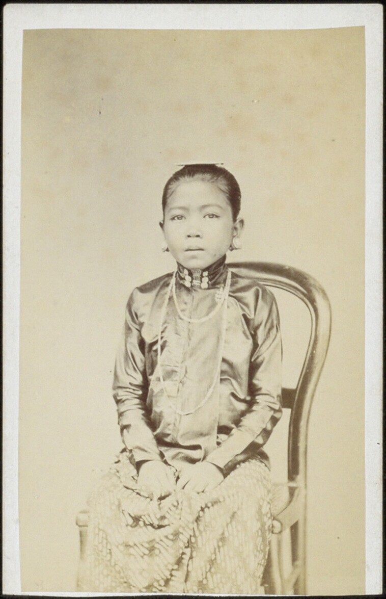 Studioportret van twee vrouwen met een sirihdoos