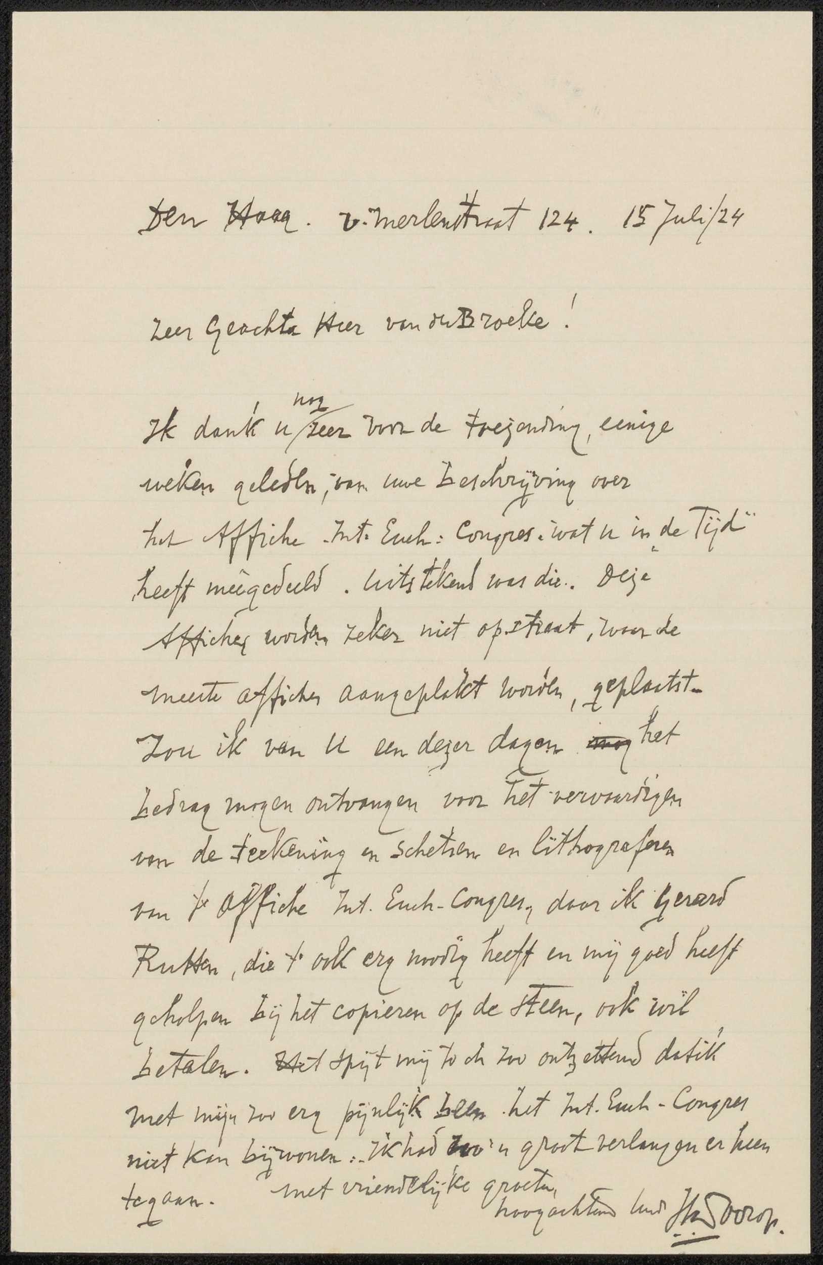 Brief aan L. van den Broeke
