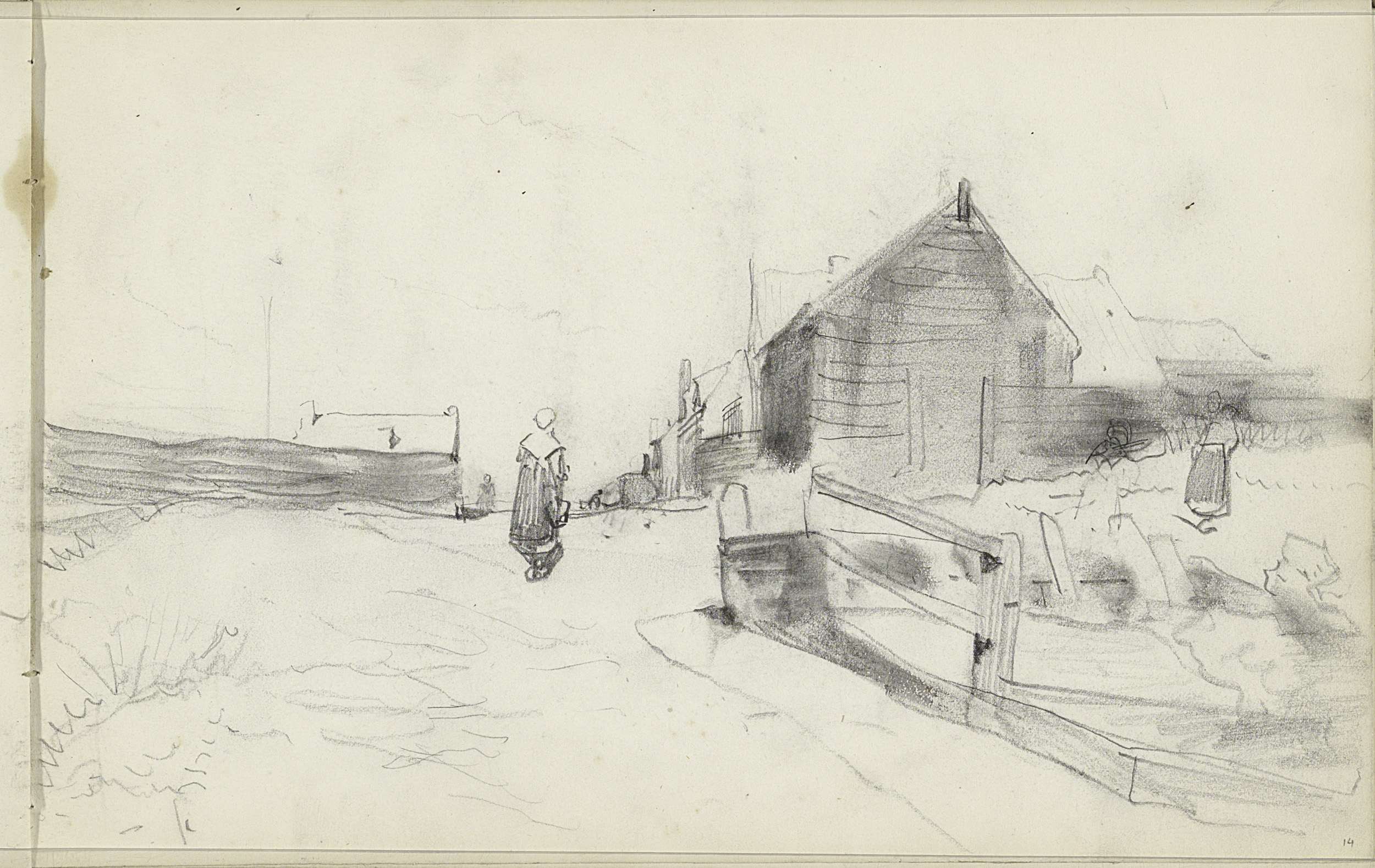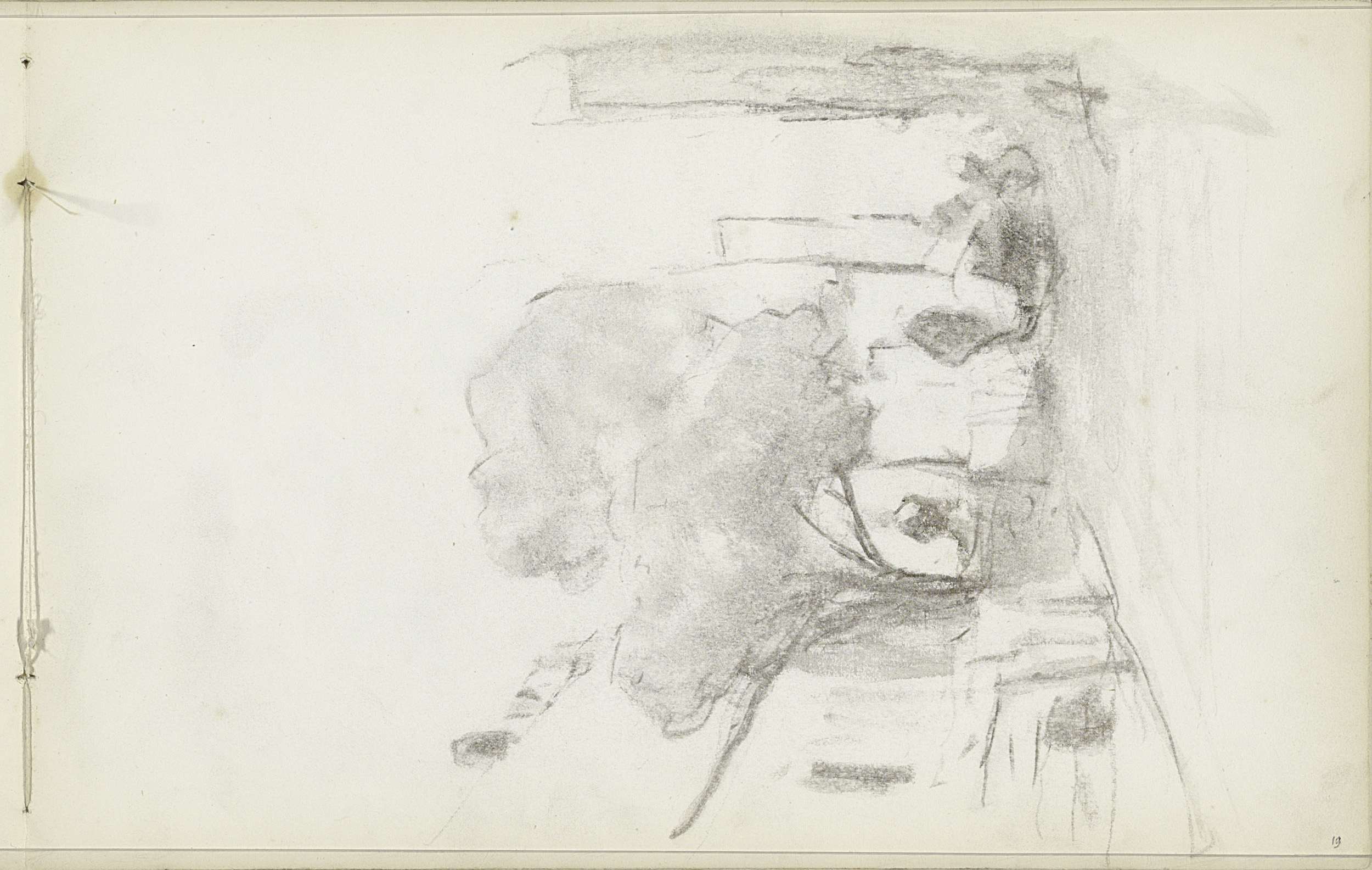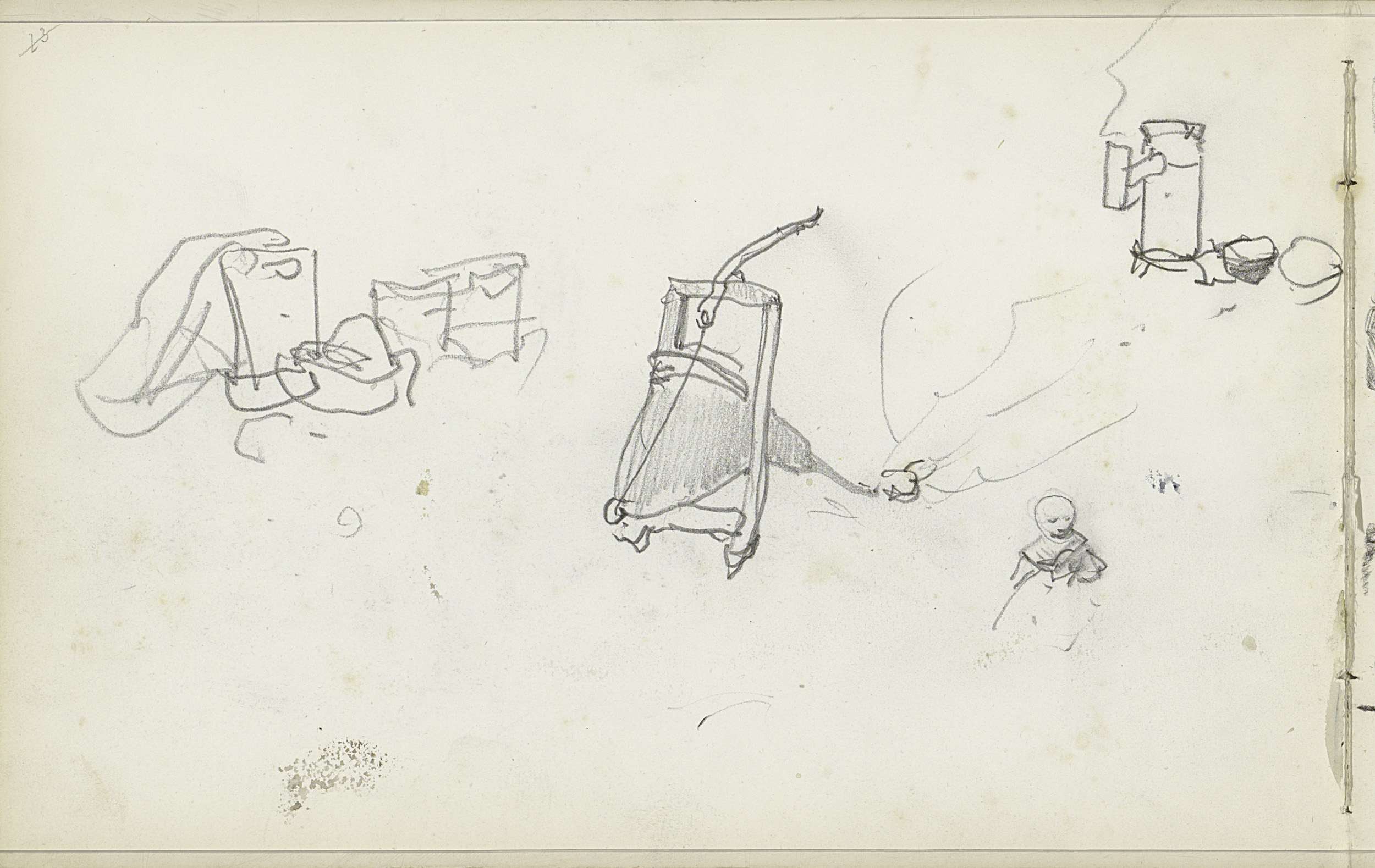 Studieblad, onder andere met een kachel een figuurst...
