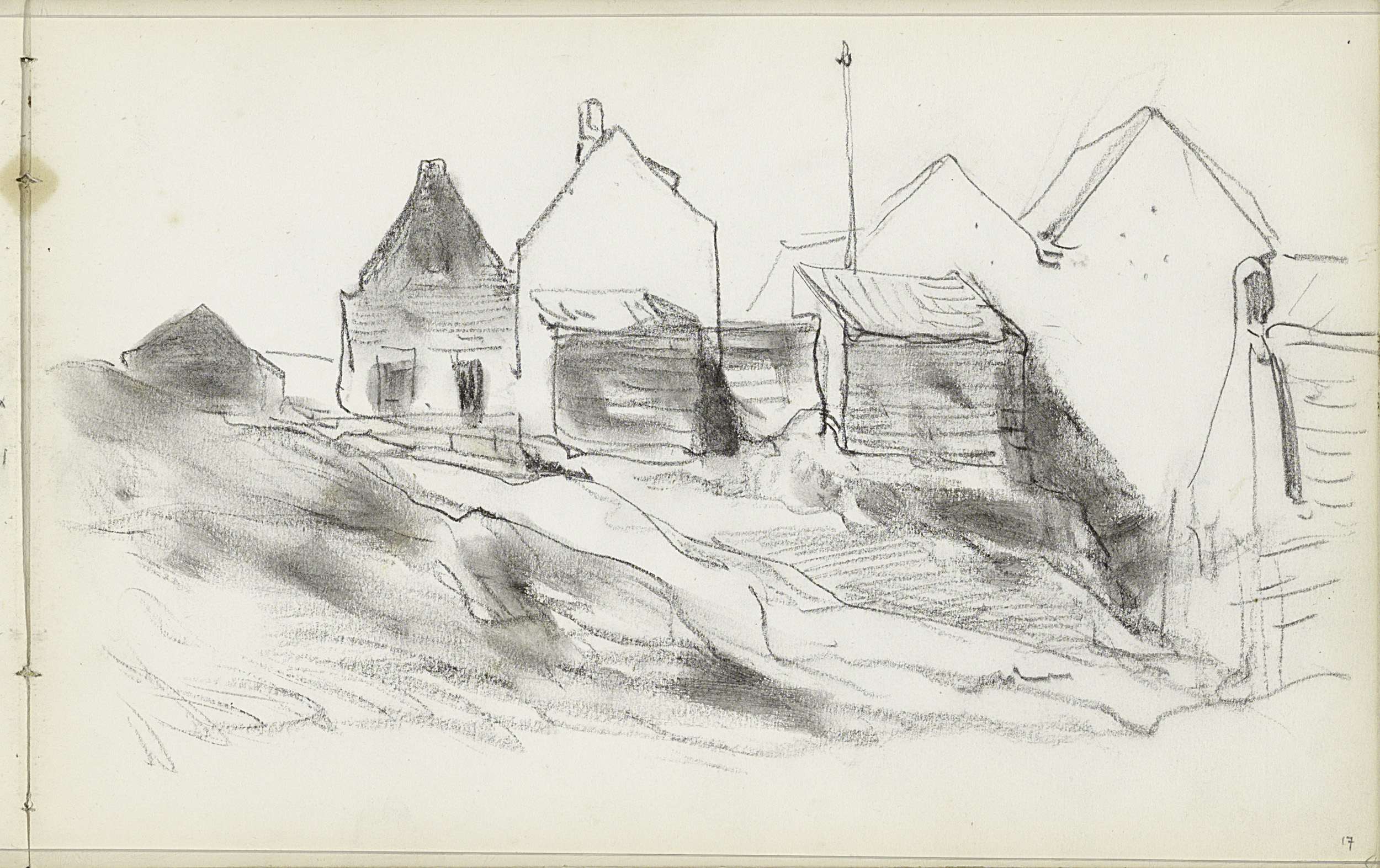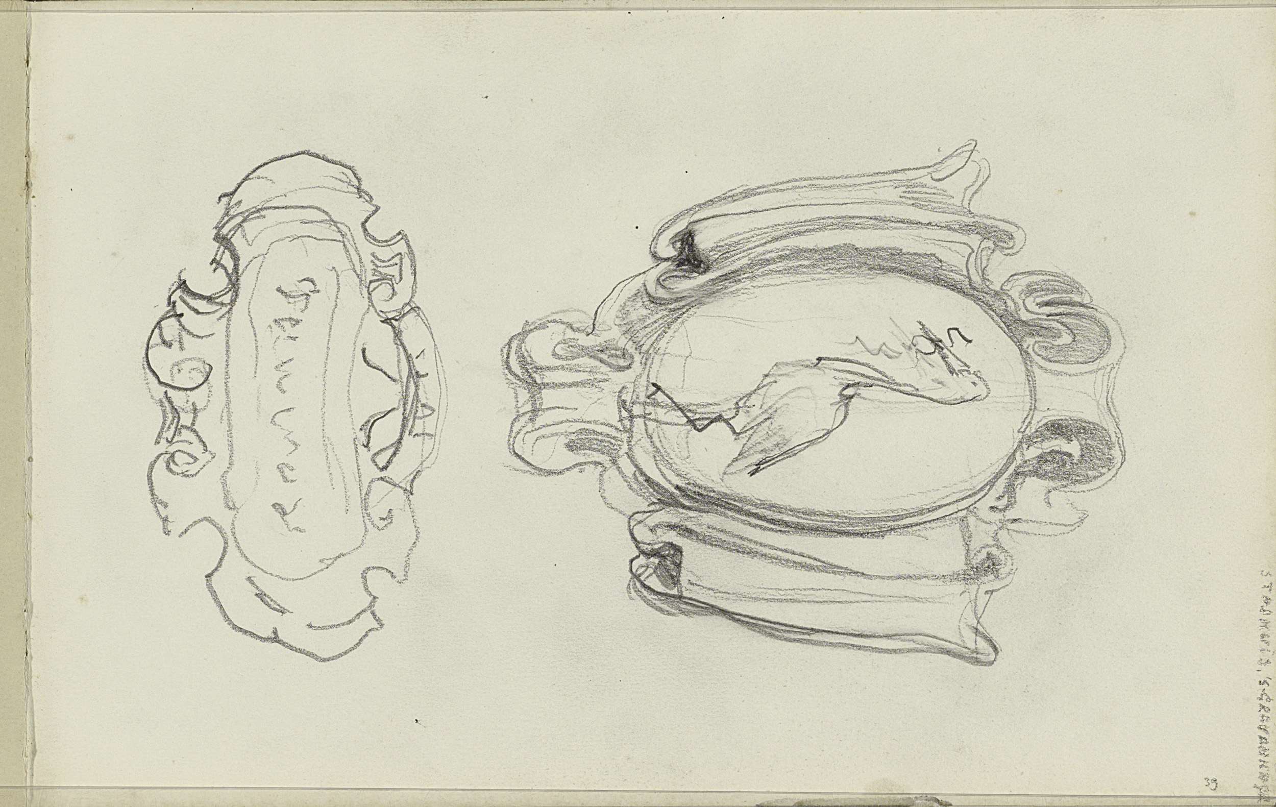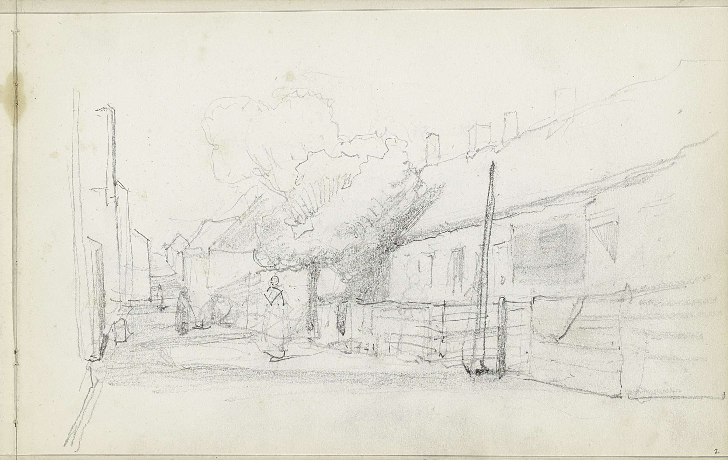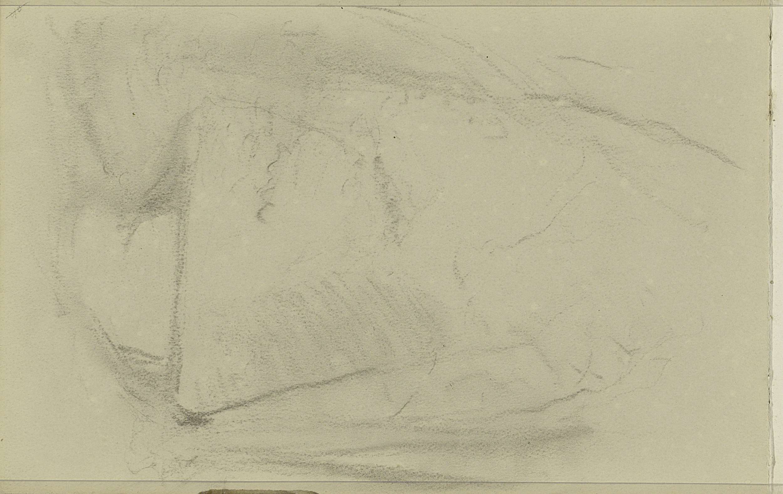 Studieblad, onder andere met een kachel een figuurst...