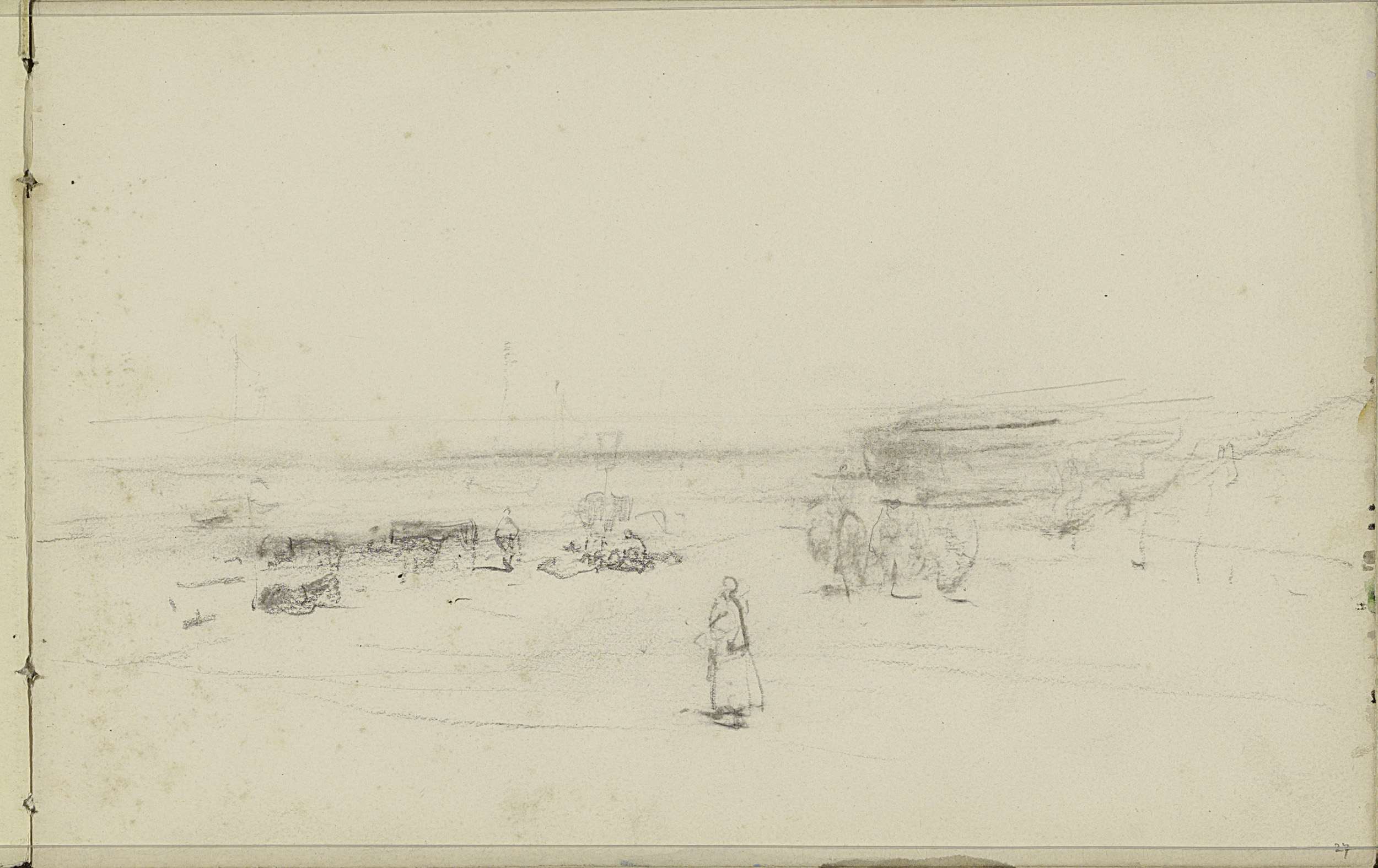 Karren en figuren op het strand van Scheveningen