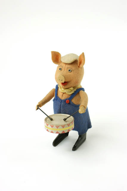 Kip op wielen die d.m.v een stok kan worden voortged...