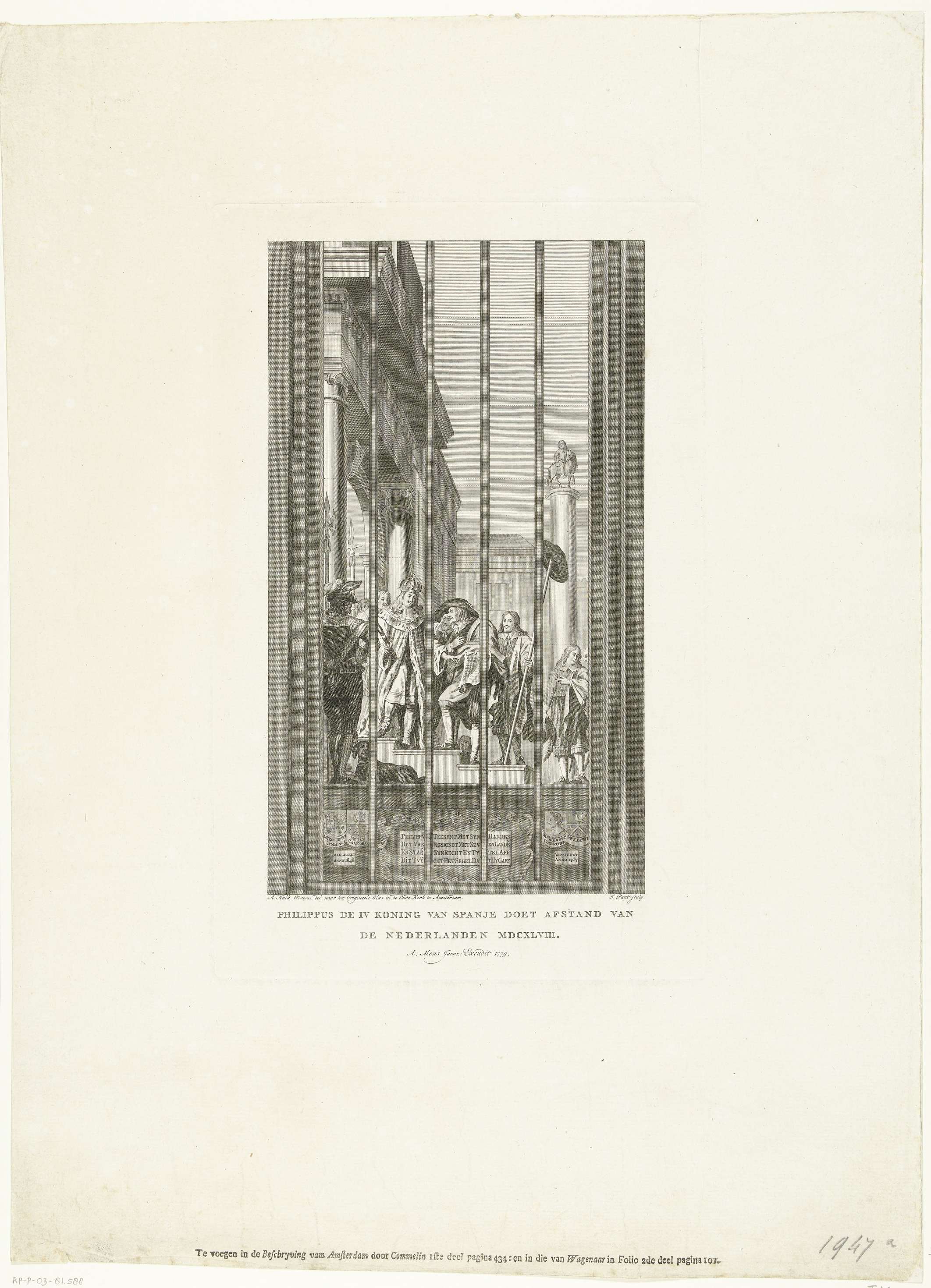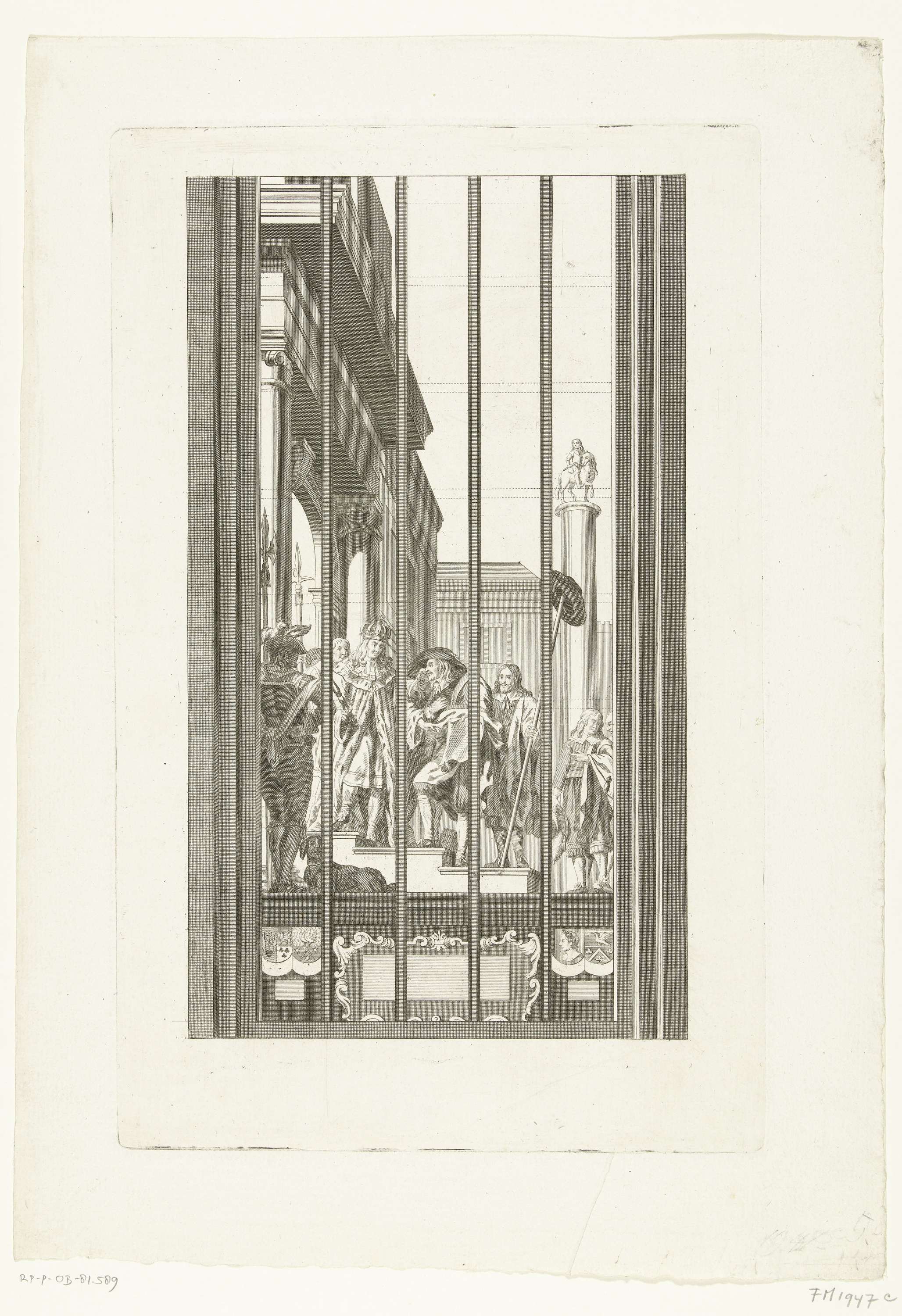Glas-in-loodraam met koning Filips IV die afstand do...