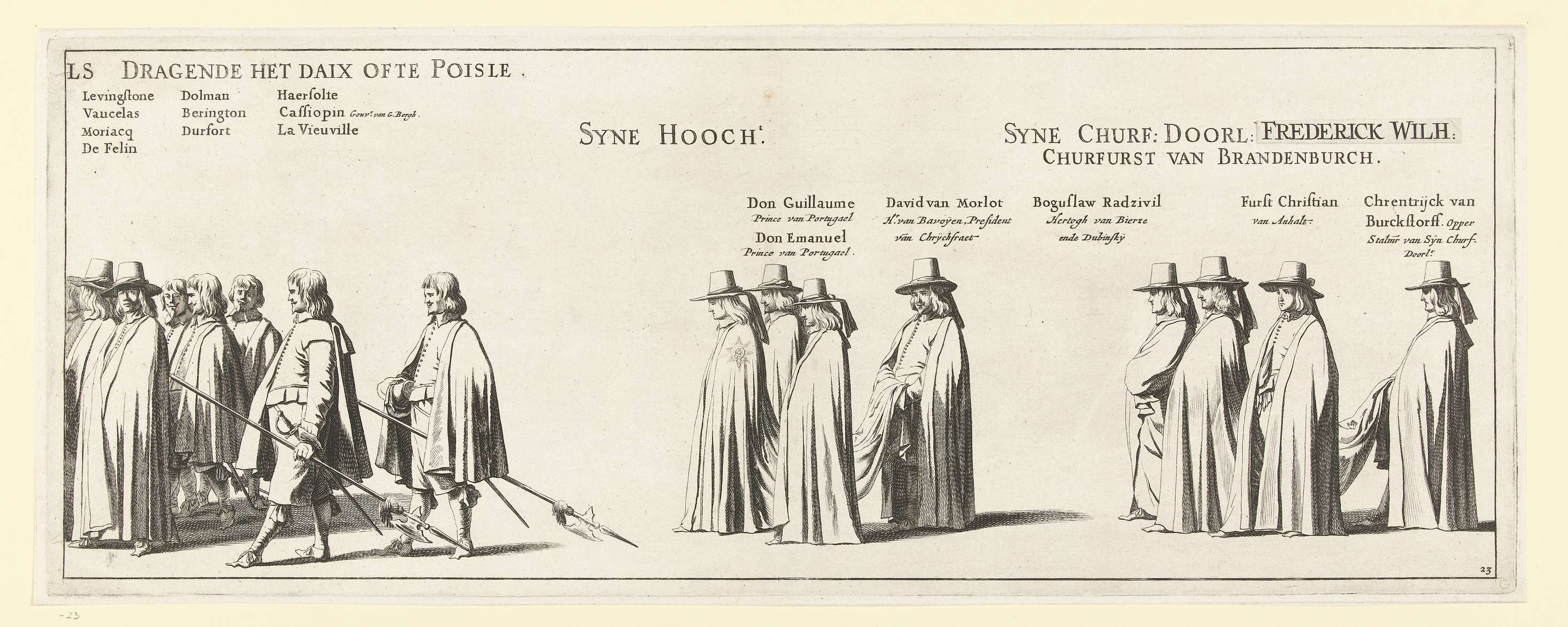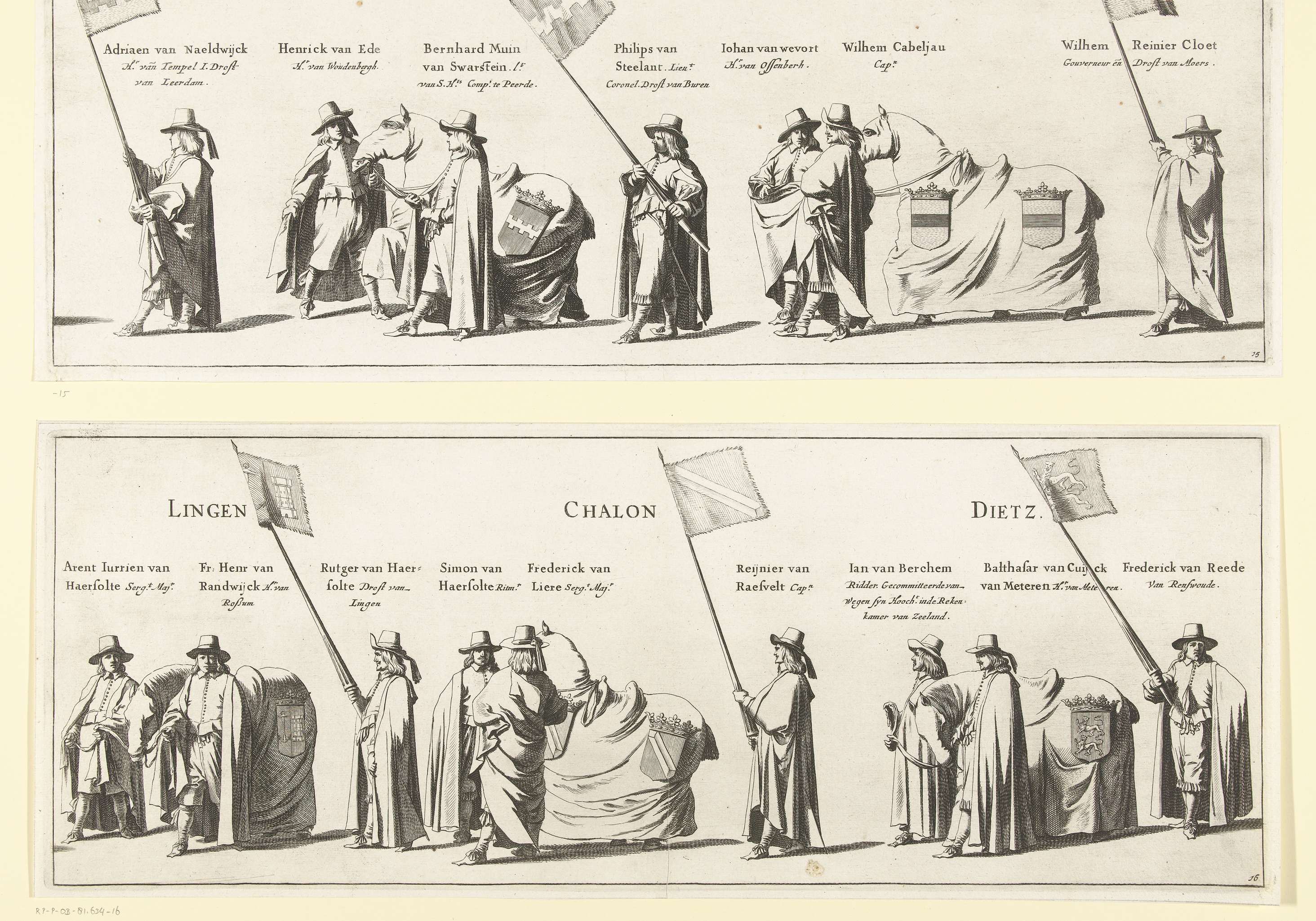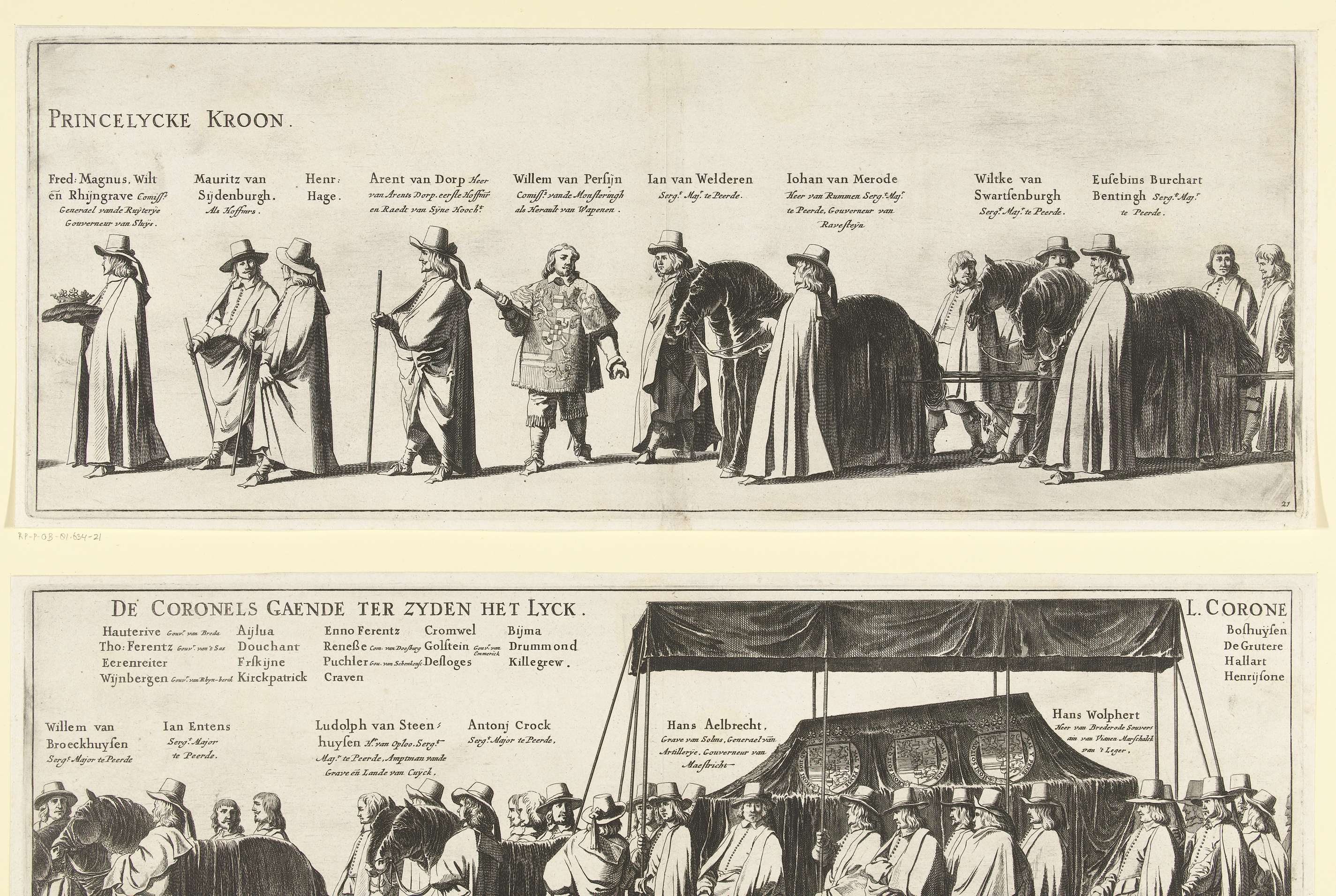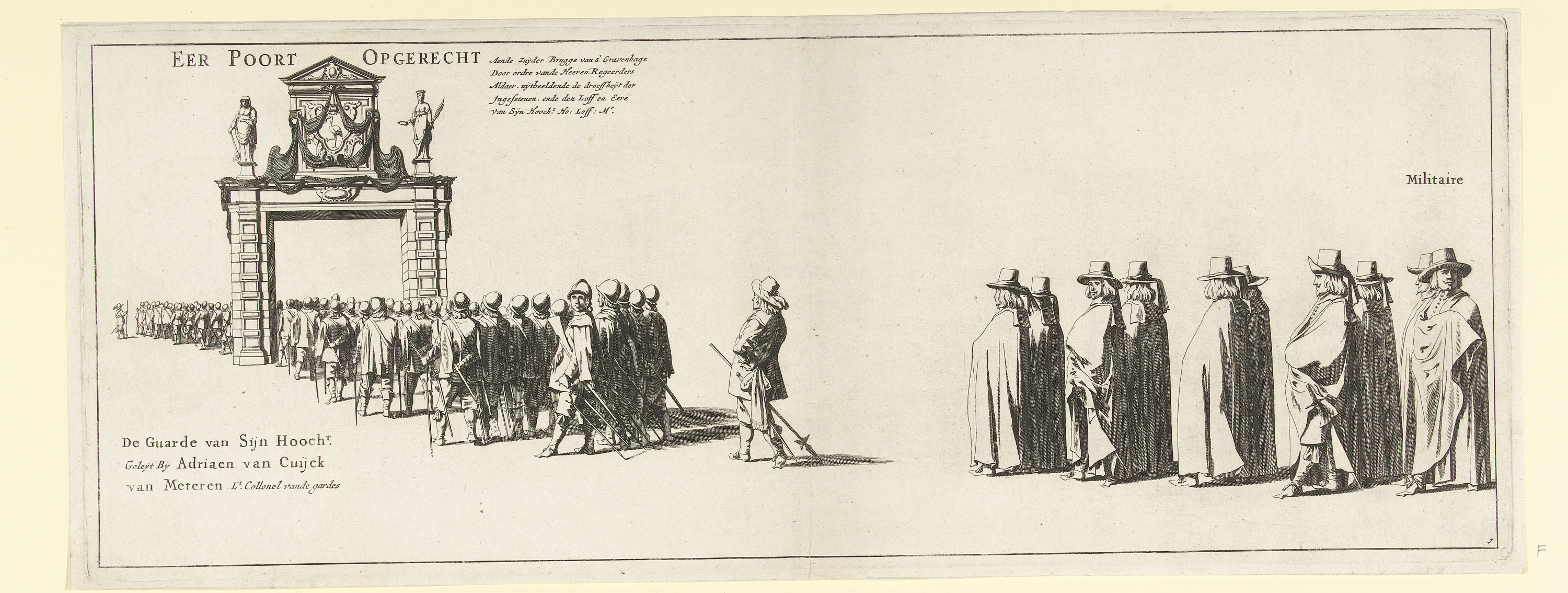 Frederik Hendrik komt Maria de Médicis tegemoet, bui...