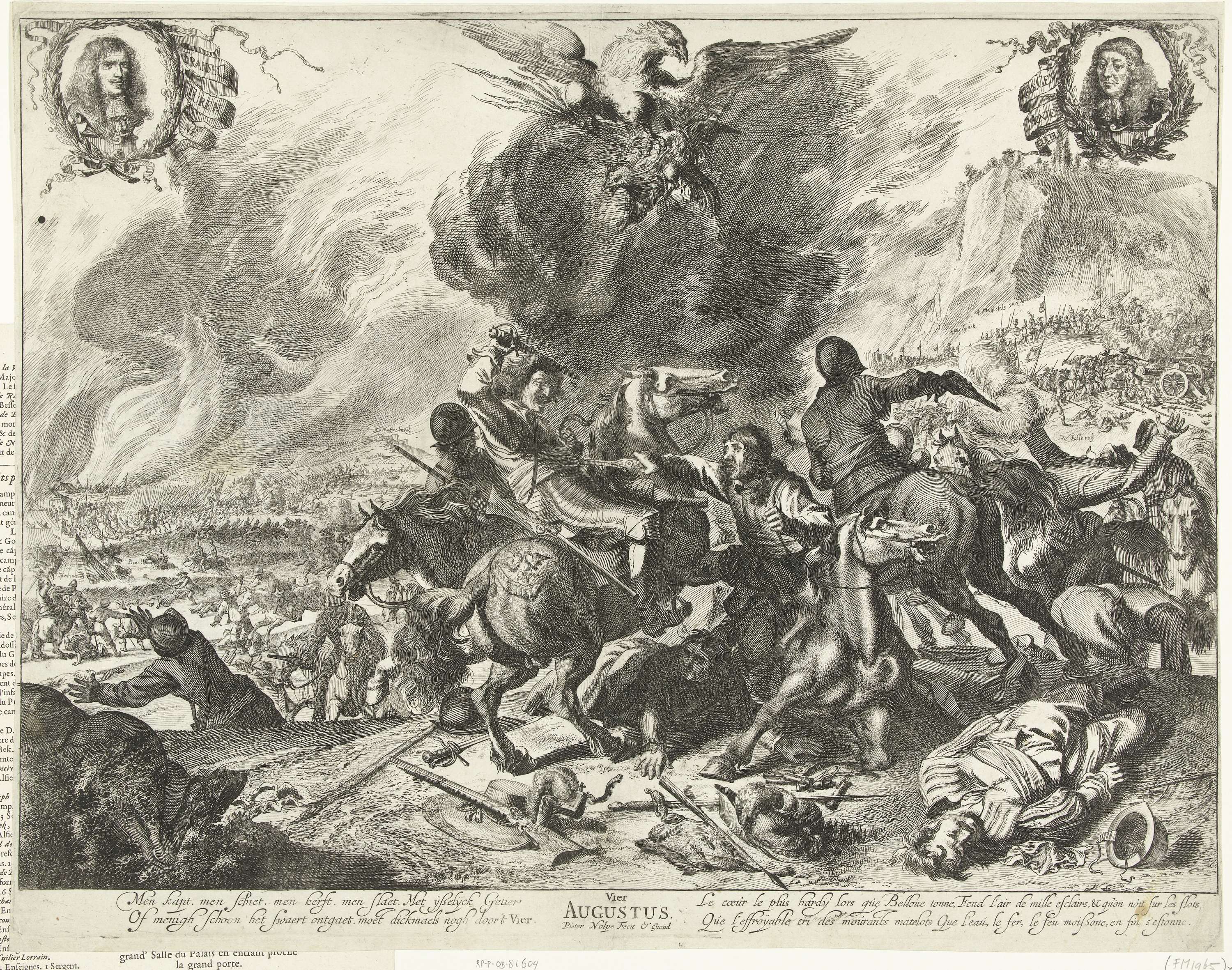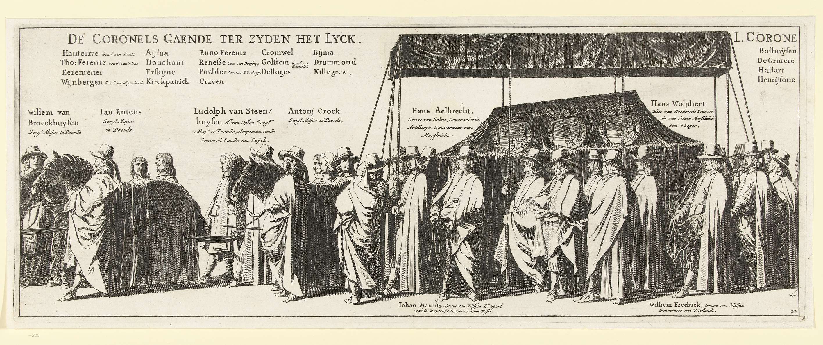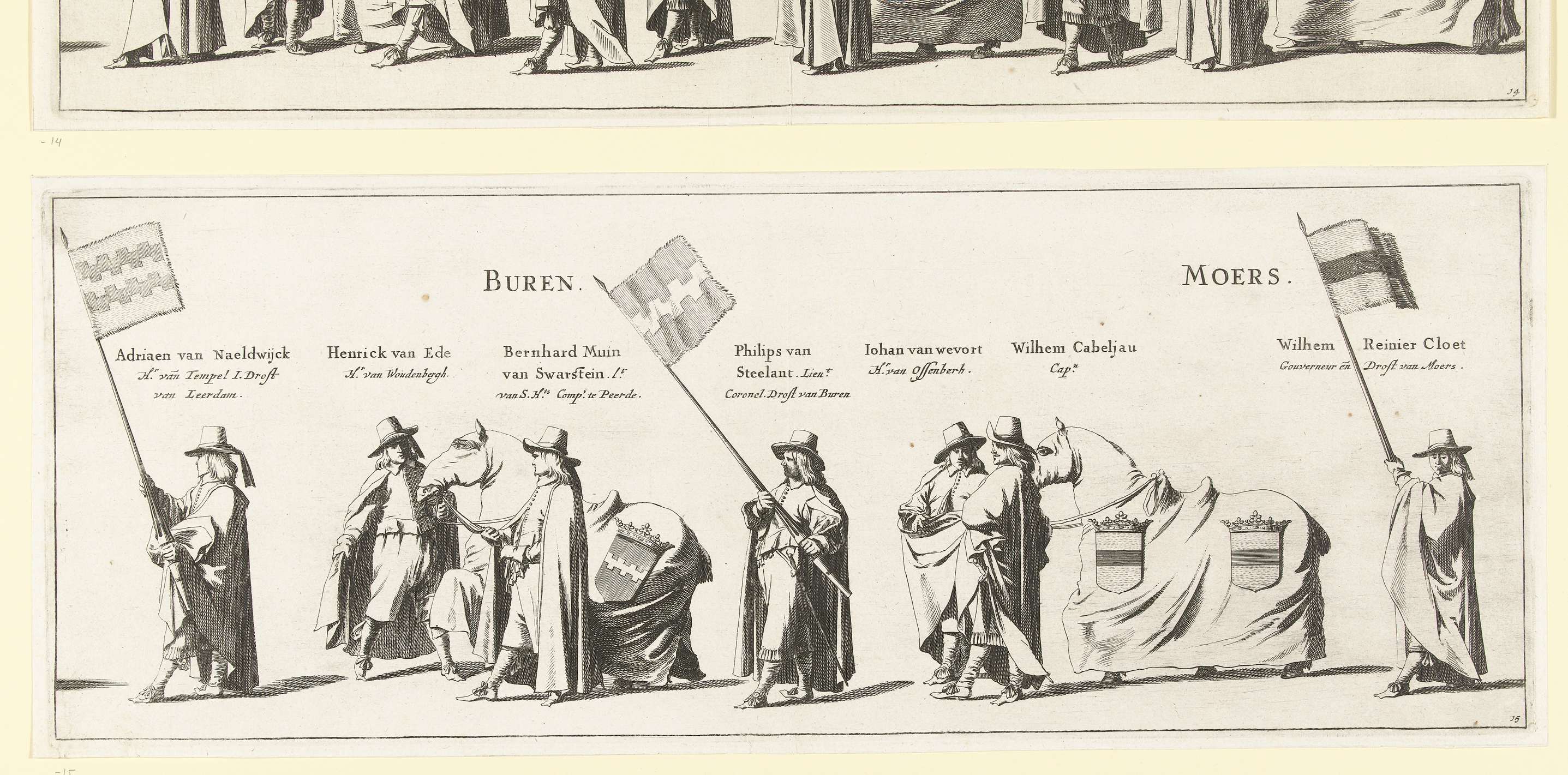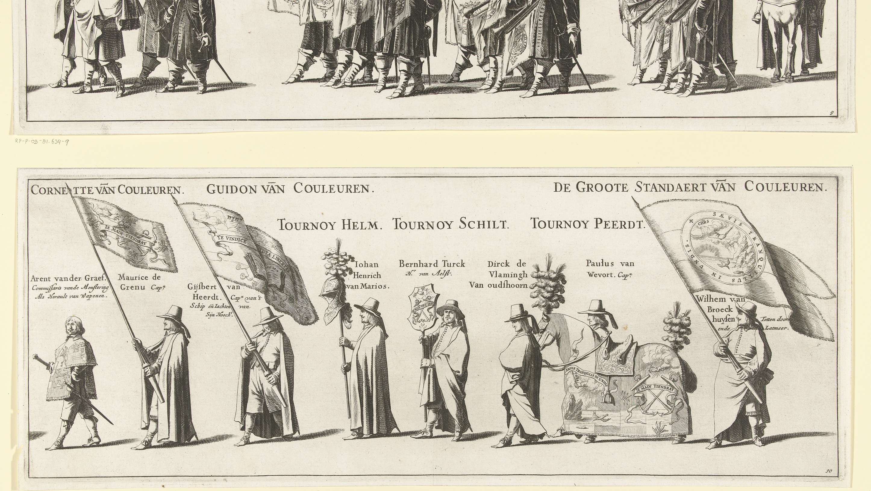 Frederik Hendrik komt Maria de Médicis tegemoet, bui...