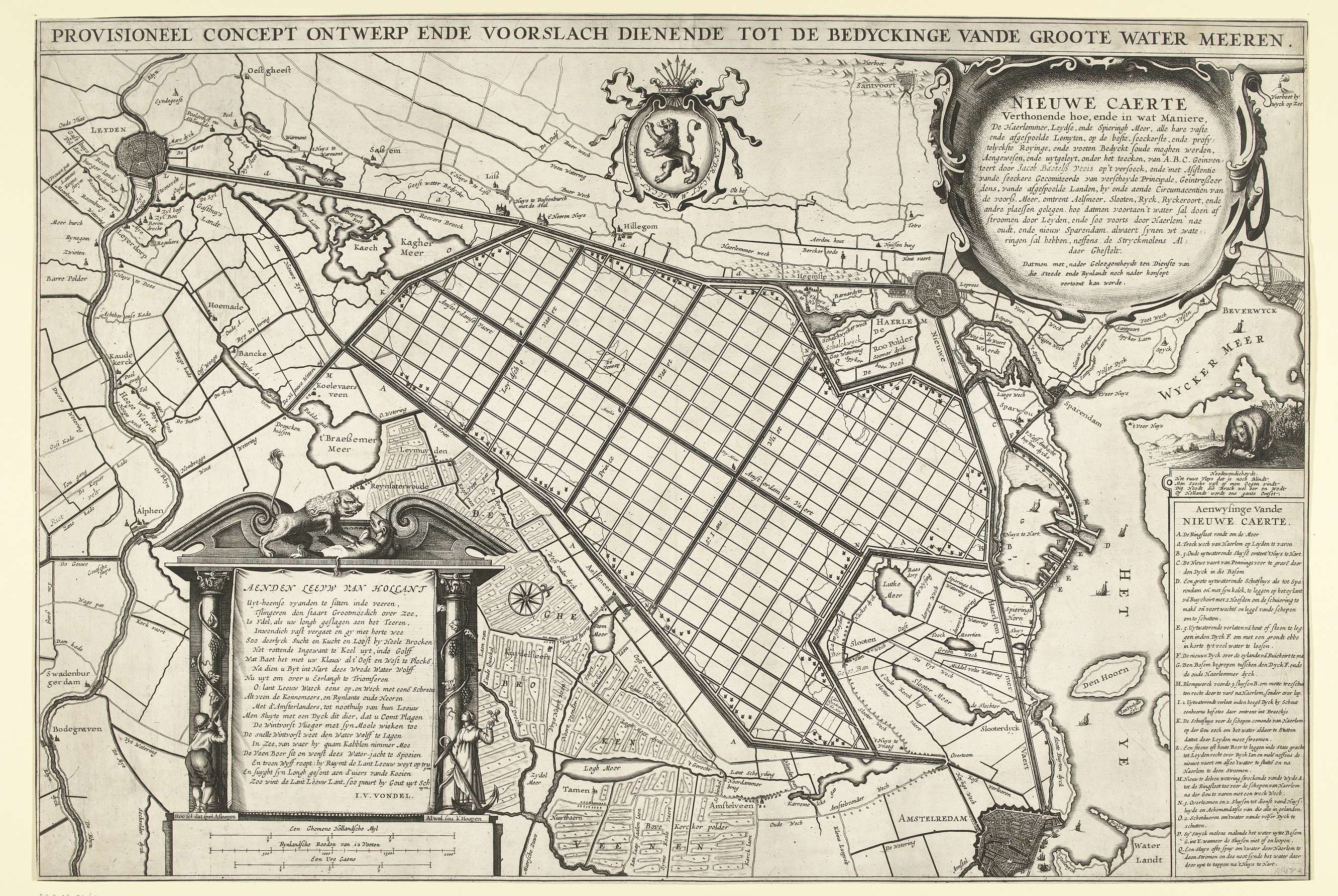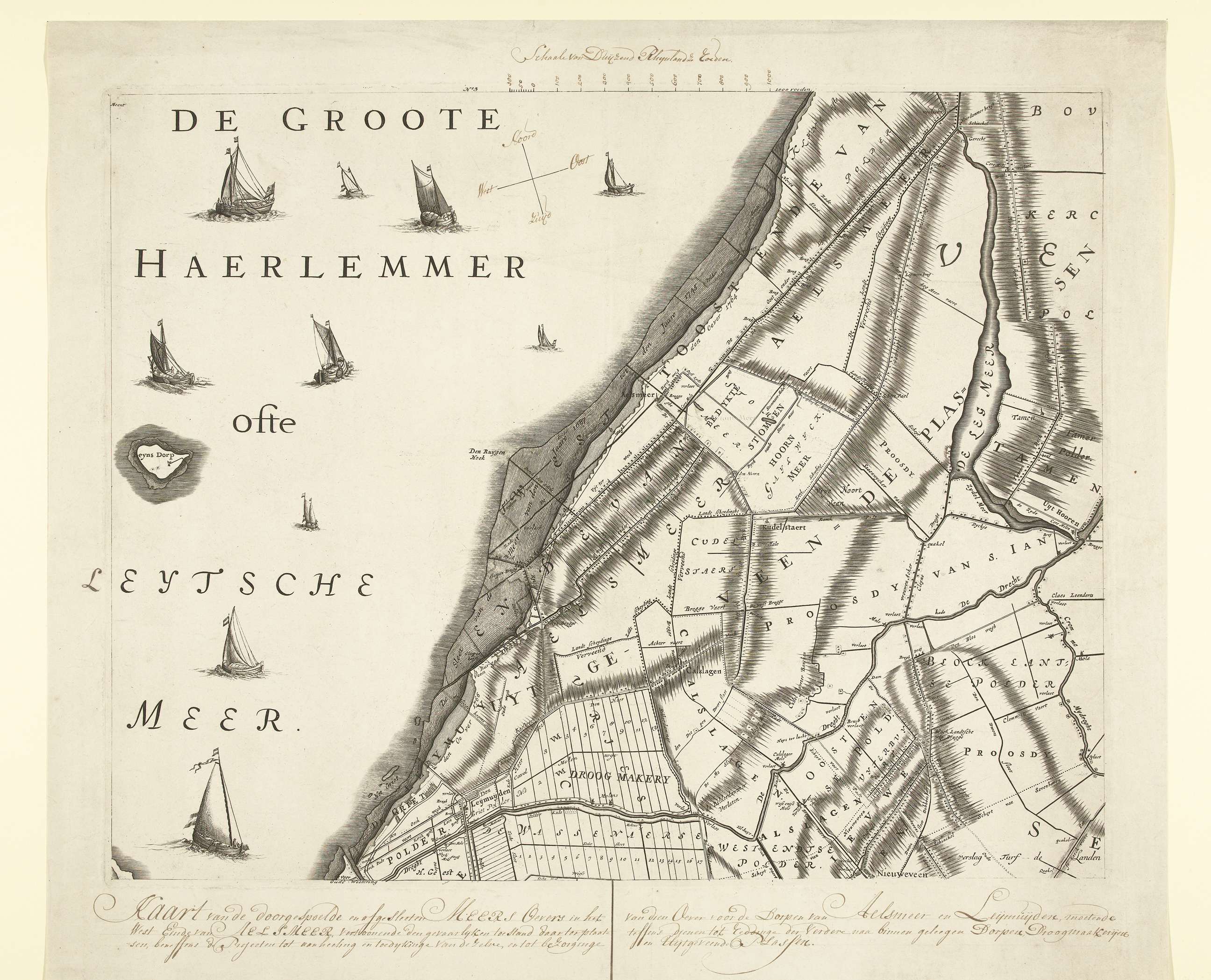 Kaart met de oude oevers van de Haarlemmermeer, ca. ...