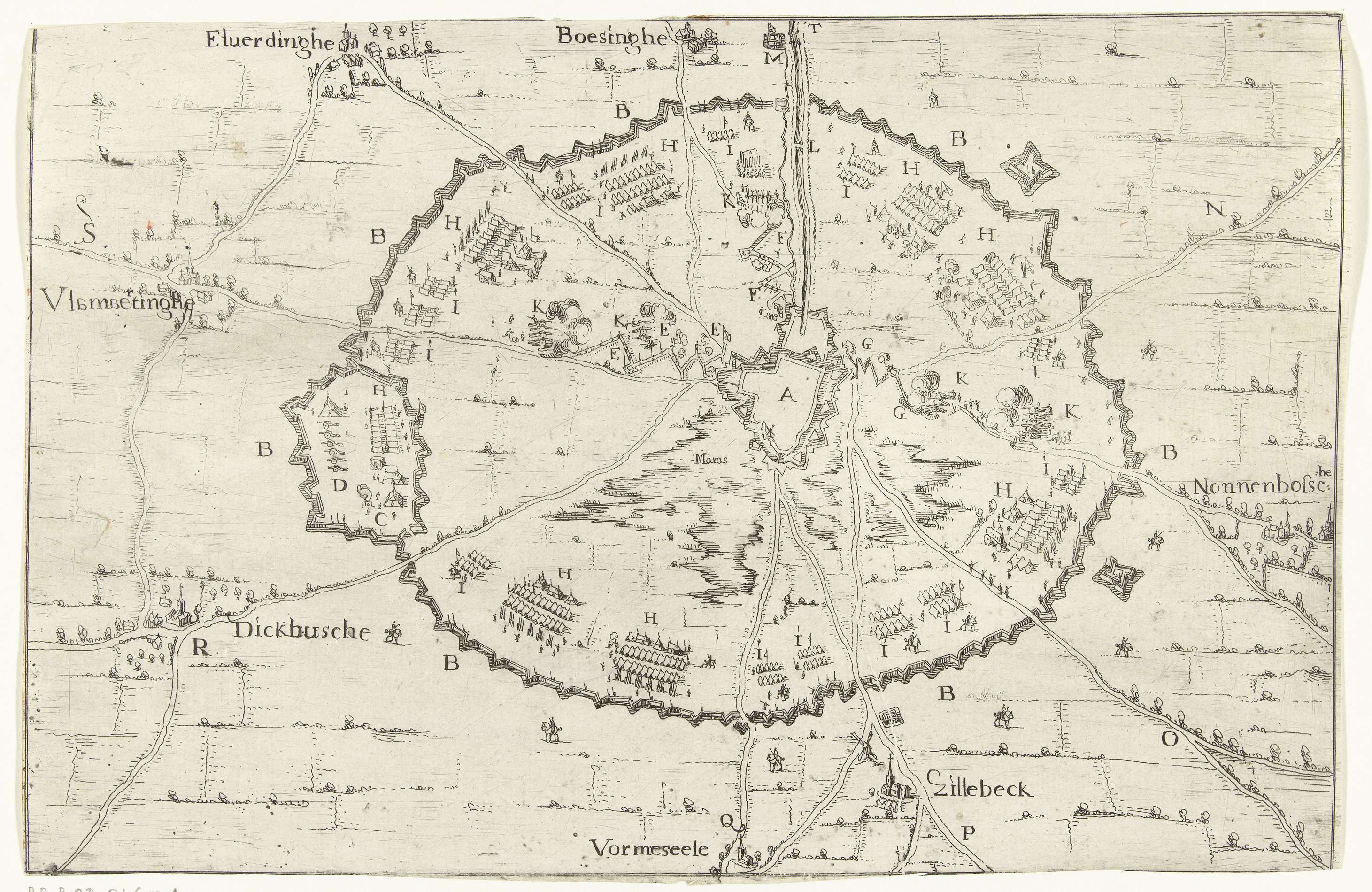 Kaart van beleg en verovering van Sas-van-Gent, 1644