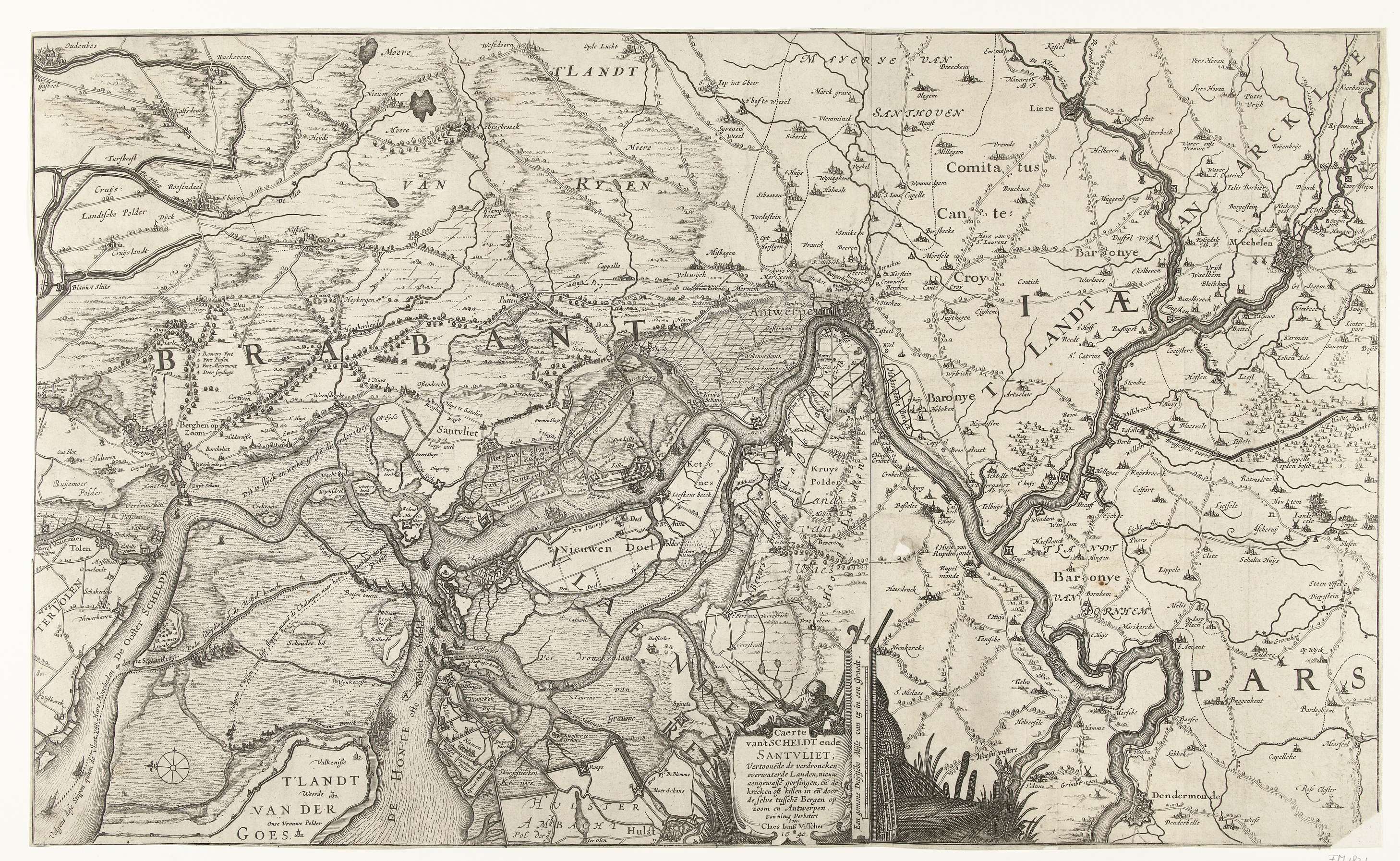 Kaart van het gebied tussen Bergen op Zoom en Antwer...