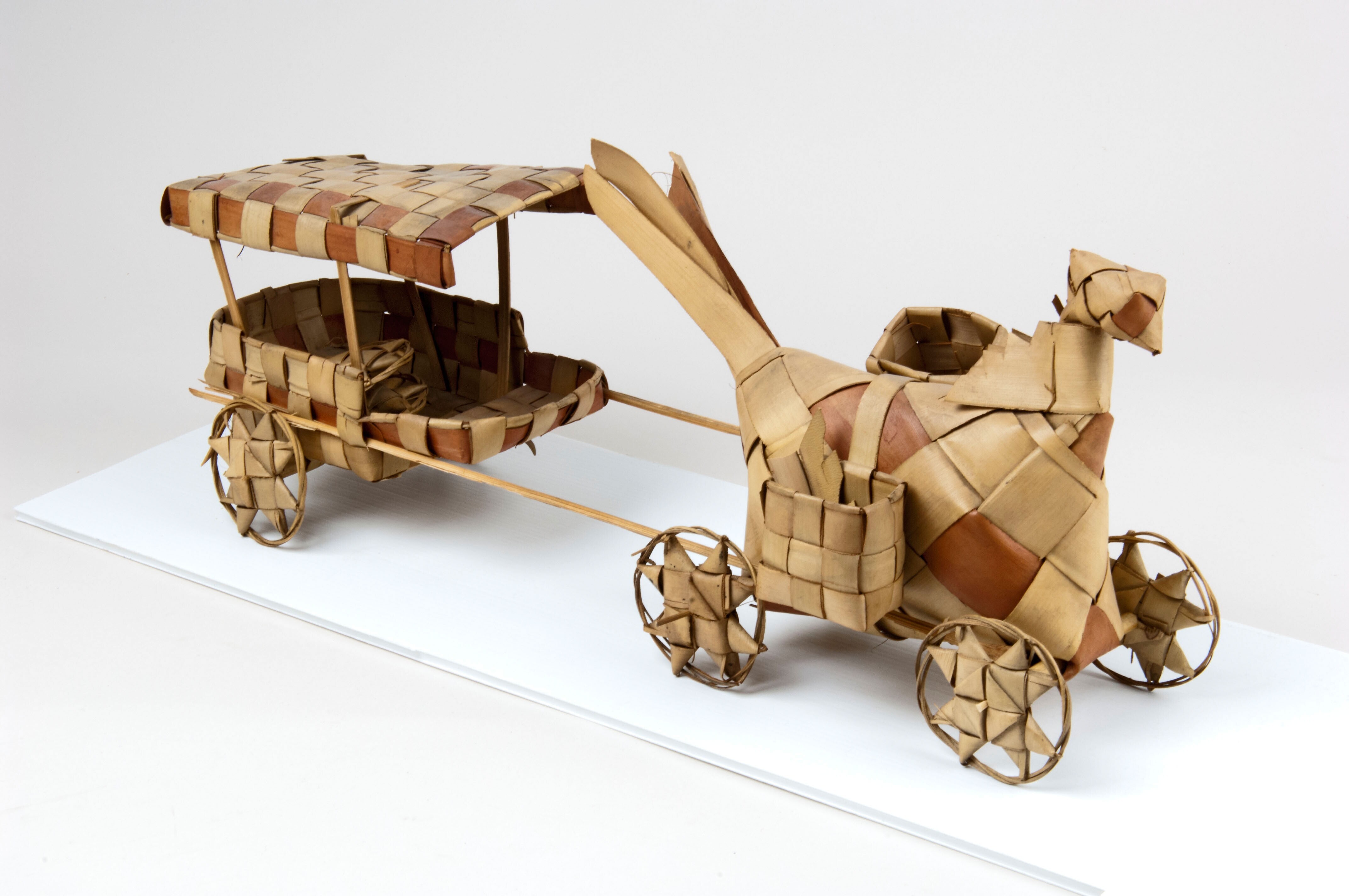 Kinderspeelgoed van lontarblad gevlochten kar met paard