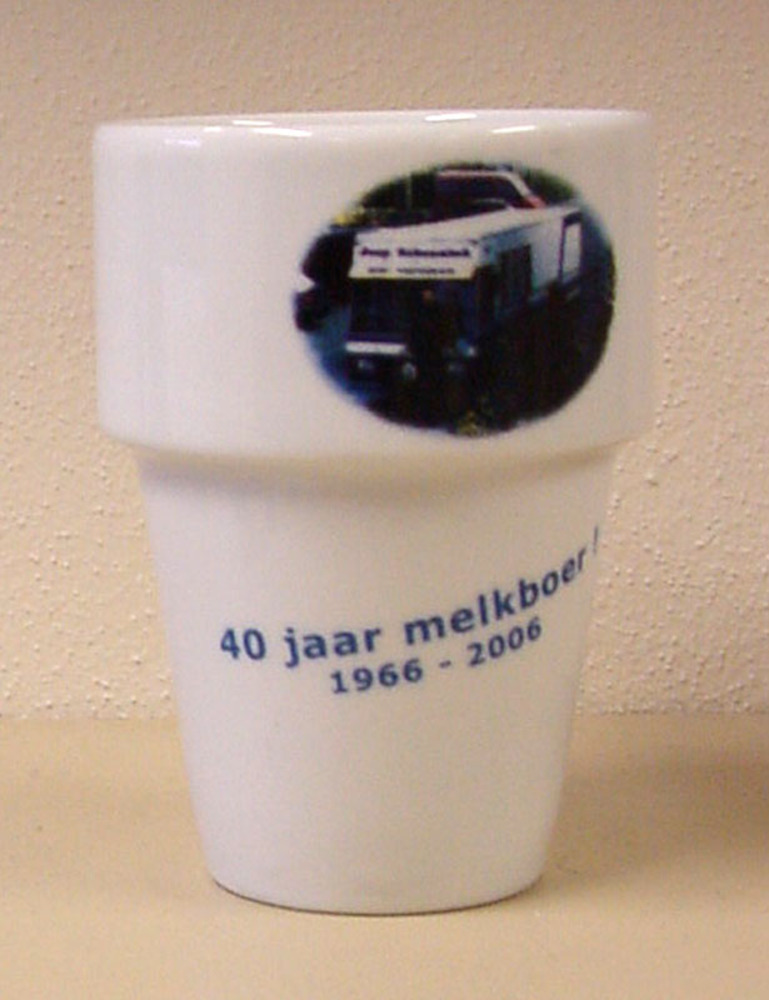 Melkbeker van aardewerk uitgegeven door Joep Schenni...