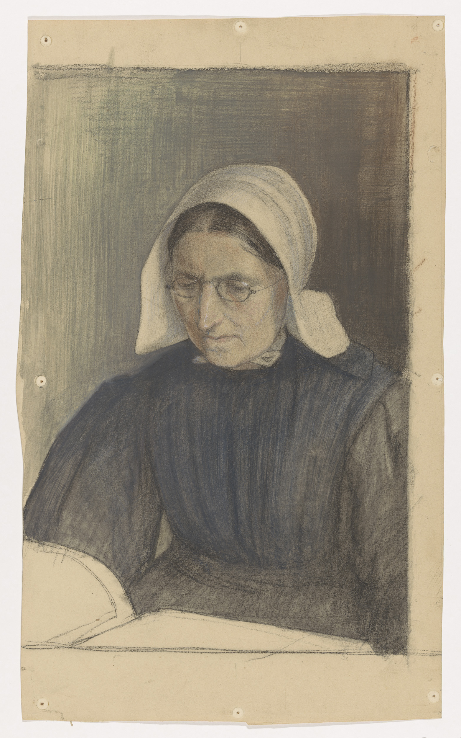 Lezende vrouw in Gooise klederdracht