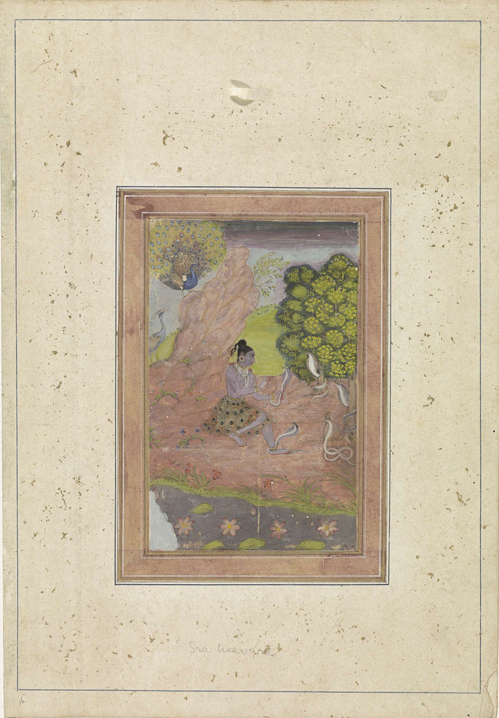 Vishnu ligt op de slang Ananta, Bhumi zit voor hem