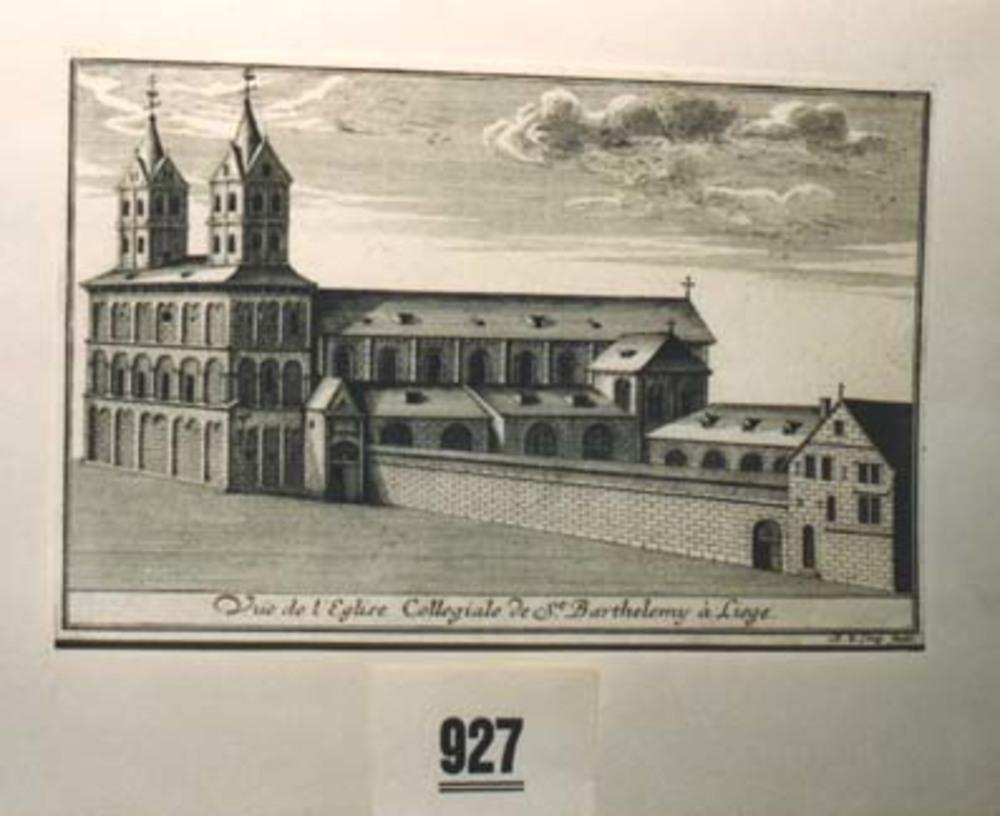 Gravure "Vue d'eglise Collegiale de St.Barthelemy à ...