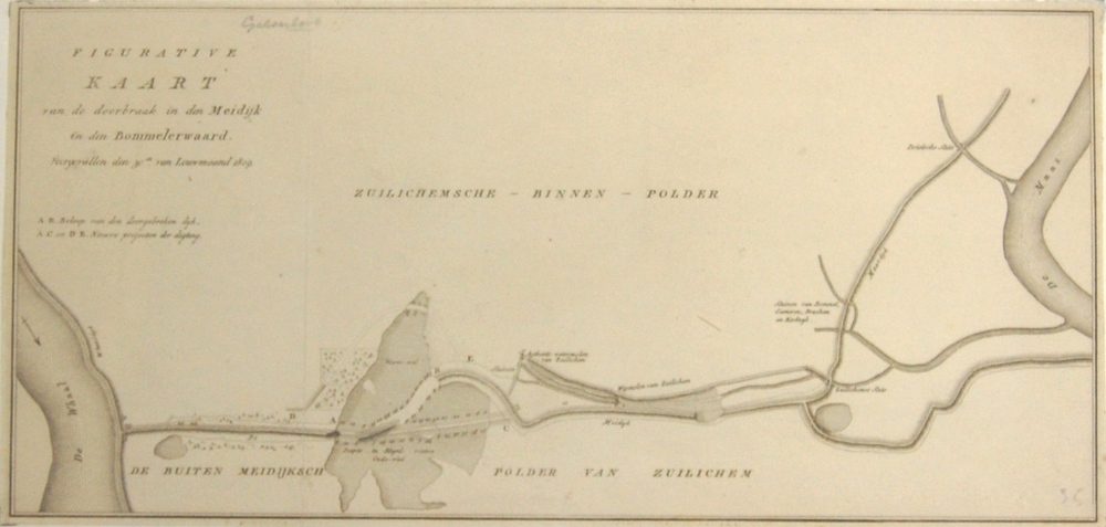 Kaartje van Zuilichem met dijkdoorbraak 1809. Figura...