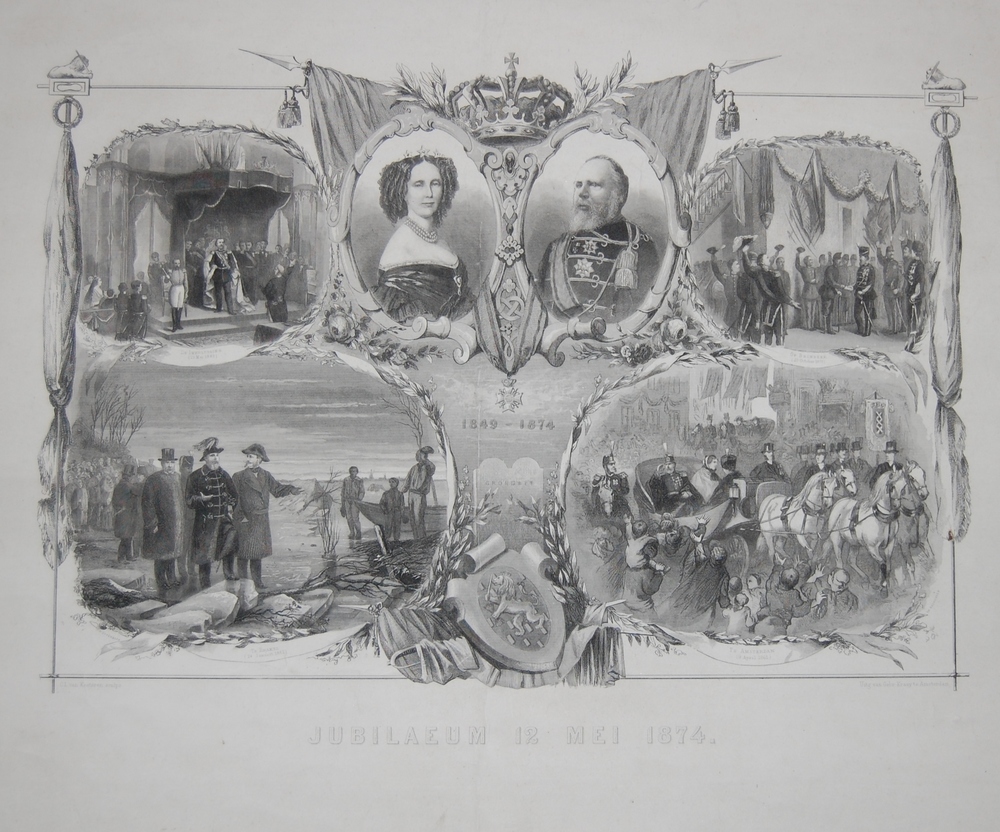 Centraal binnen twee gekroonde ovalen Willem III en ...