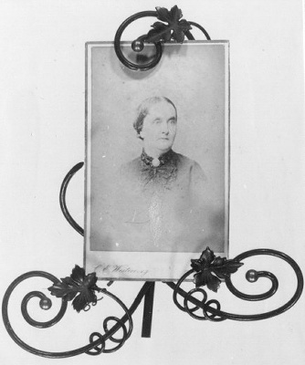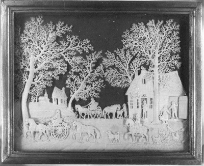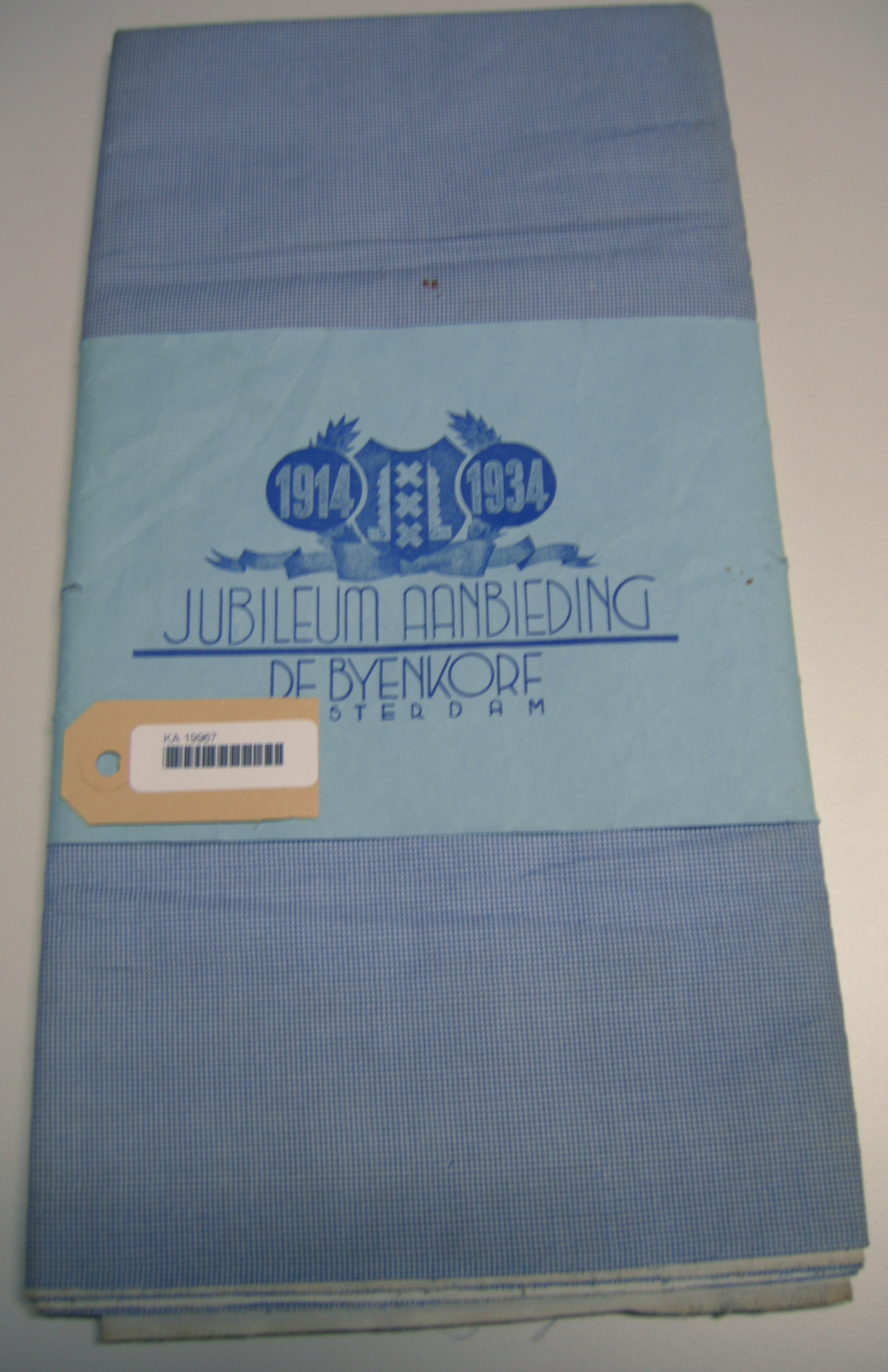 Ingelijst en op textiel bevestigd knipsel met Willem...
