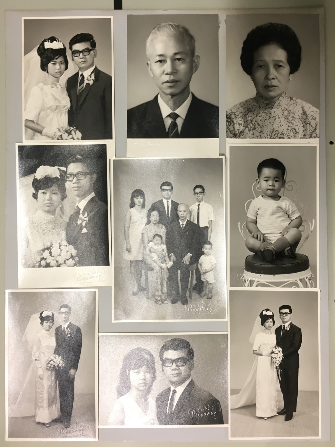Chinese boedel, blad met 9 verschillende familiefoto's