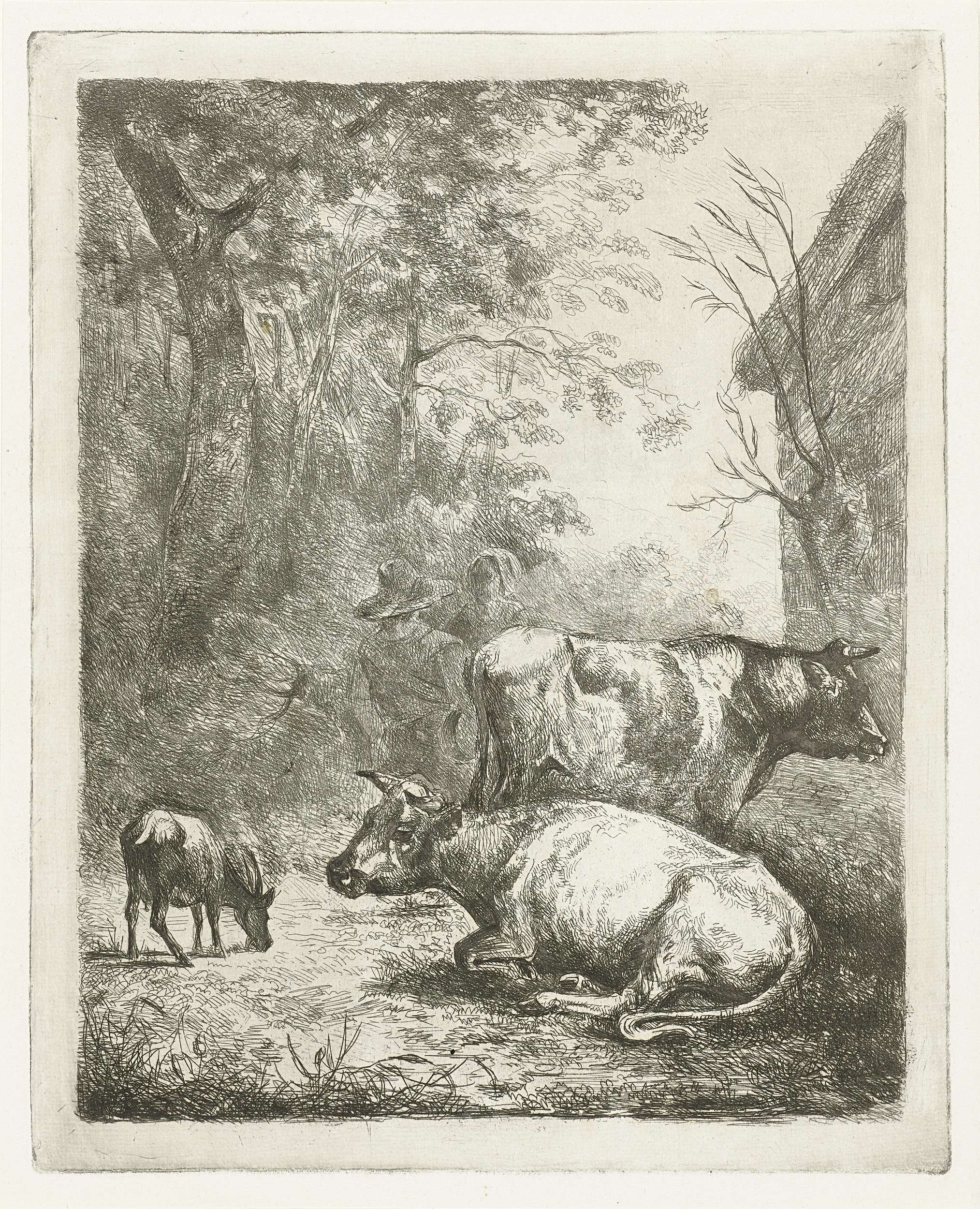 Boerenerf met twee koeien, een bokje en een pratend ...