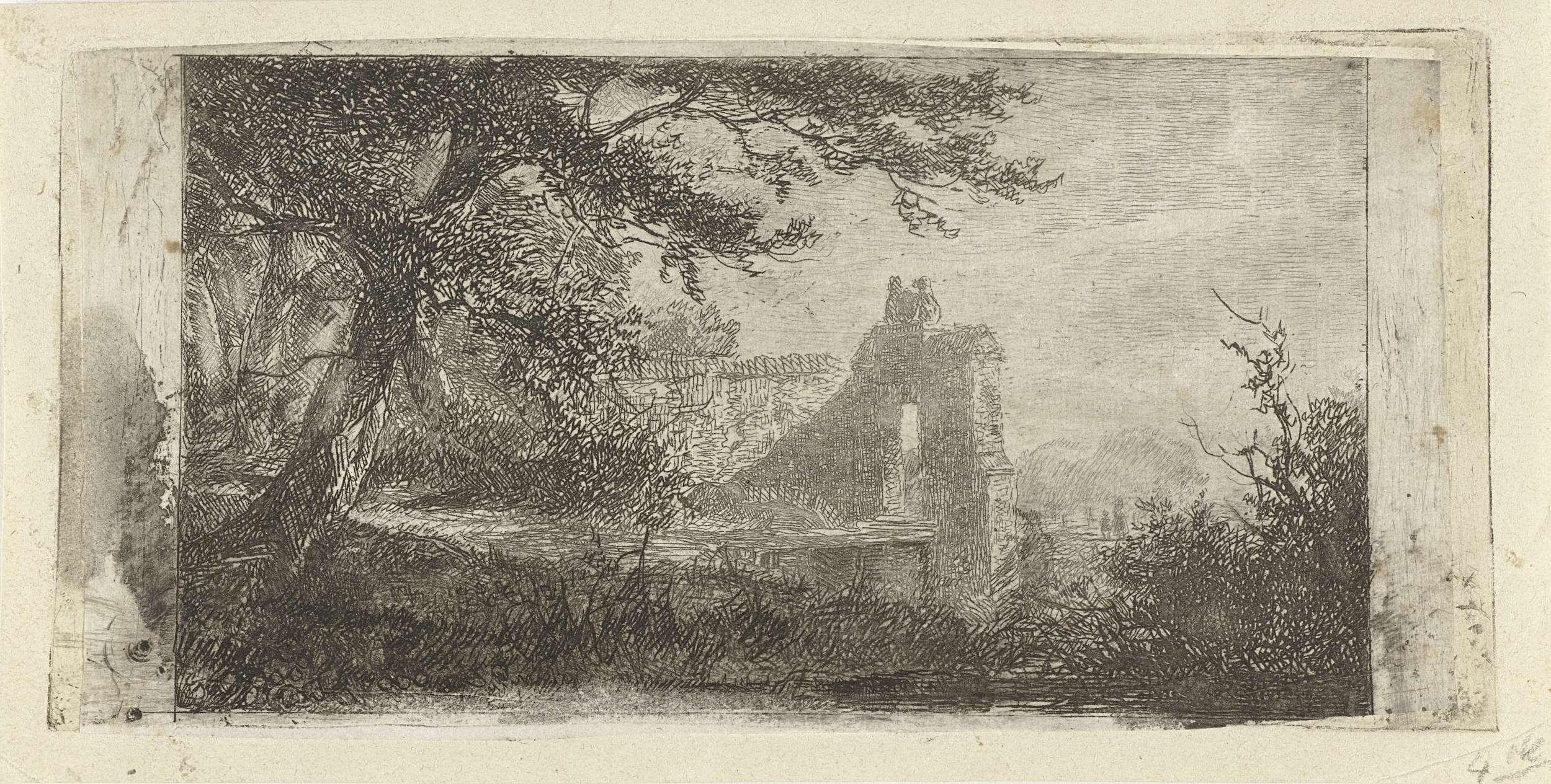 Landschap met poortgebouw