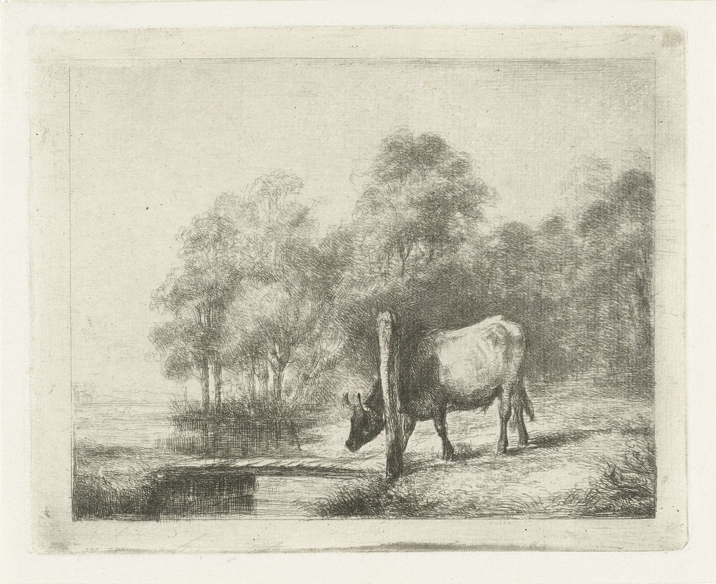 Landschap met een koe naast een sloot