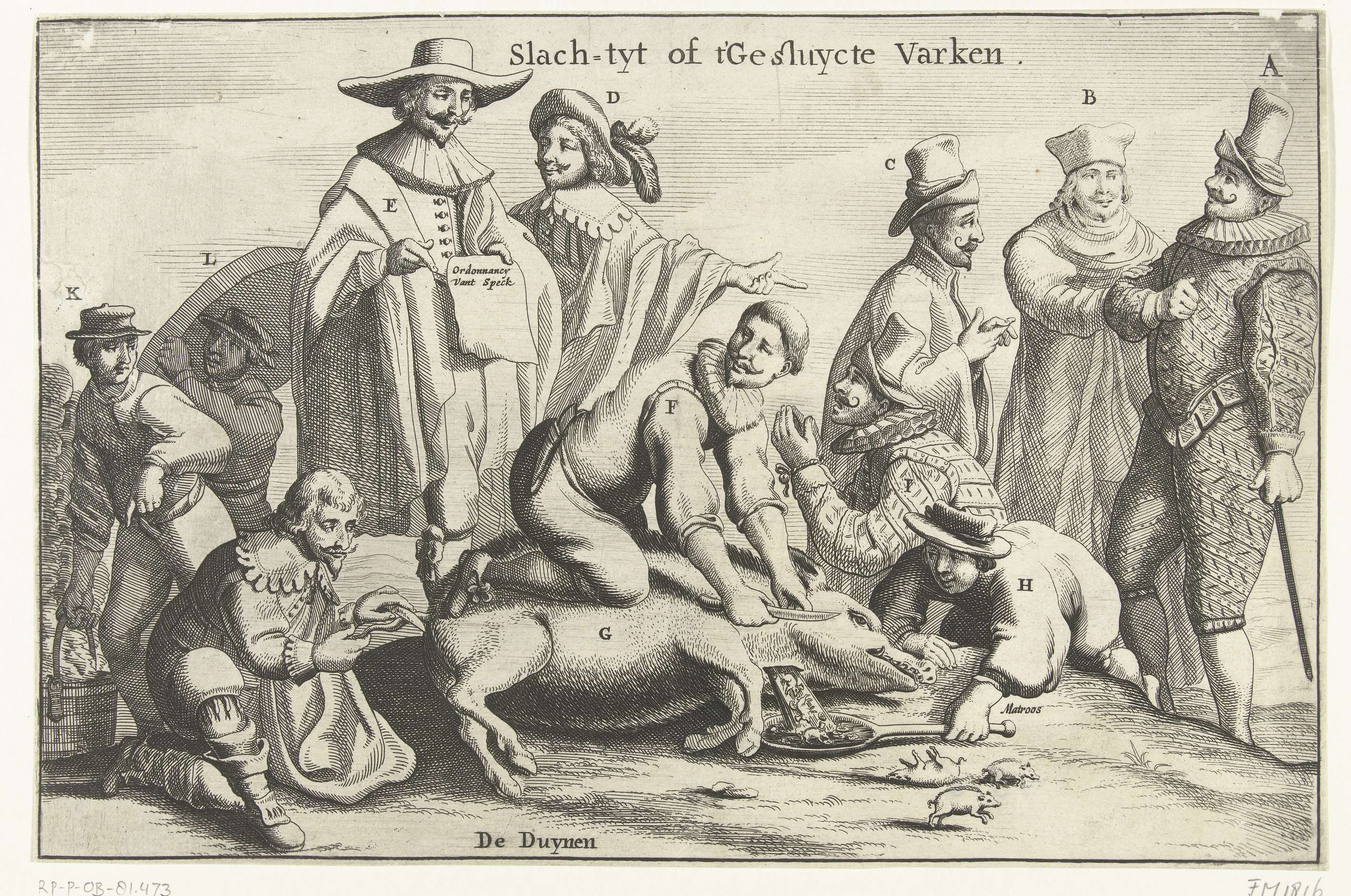 Slach-tyt of t'Gesluycte Varken, spotprent op de Spa...