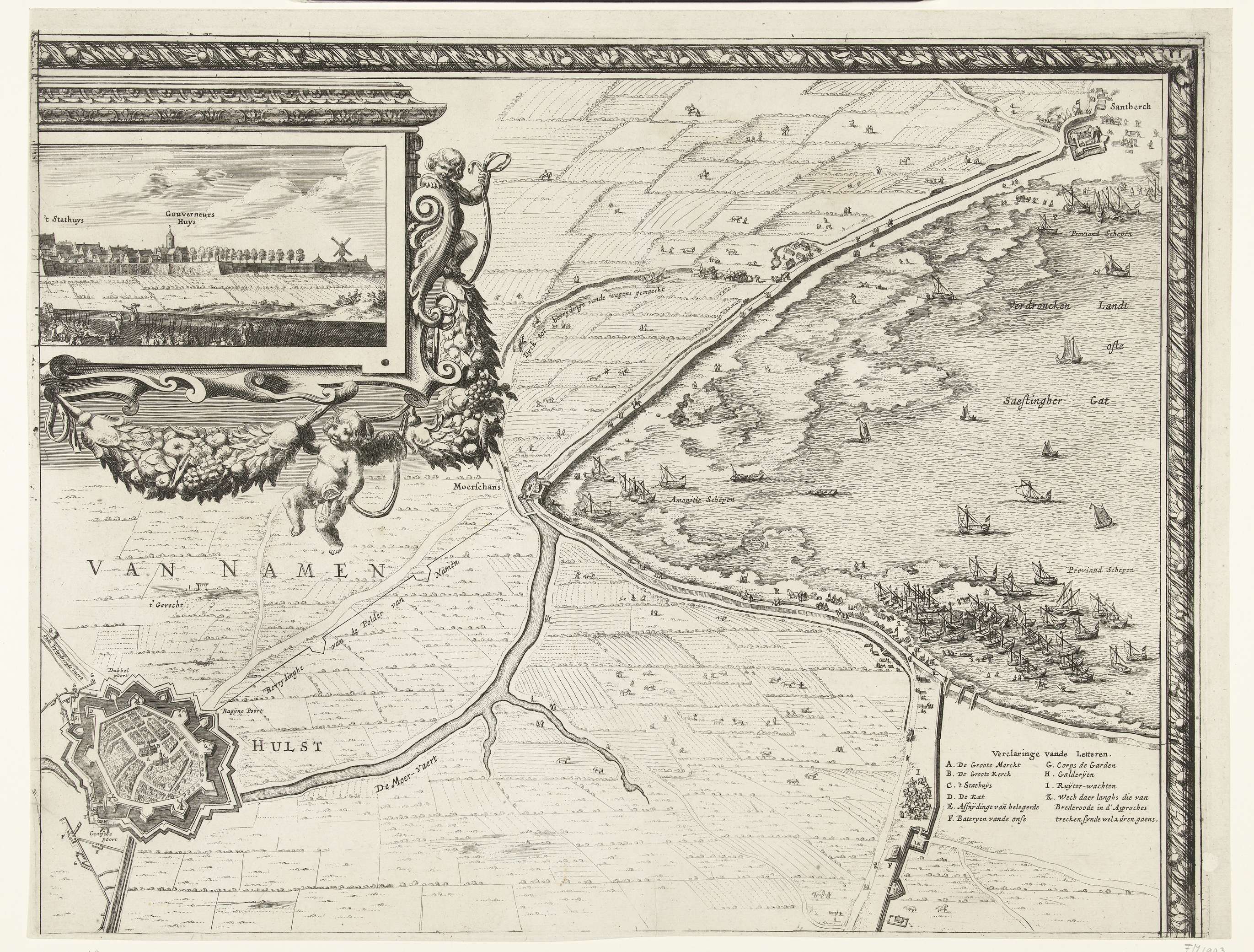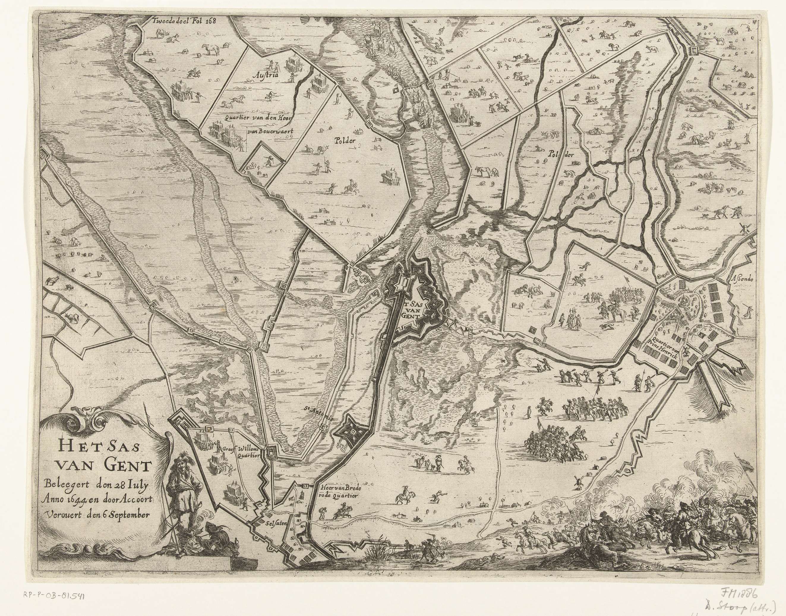 Plattegrond van het belegerde Sas van Gent, 1644