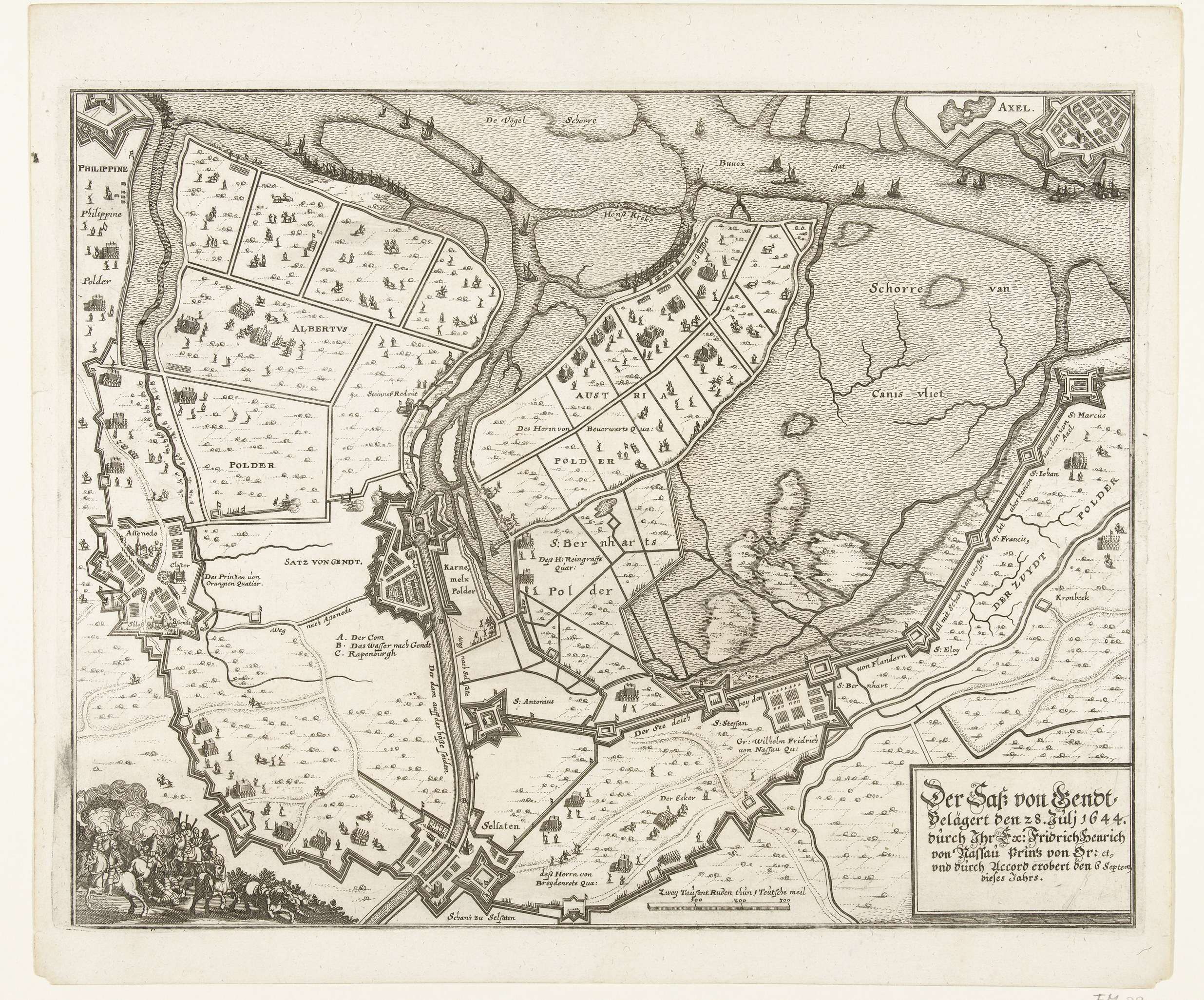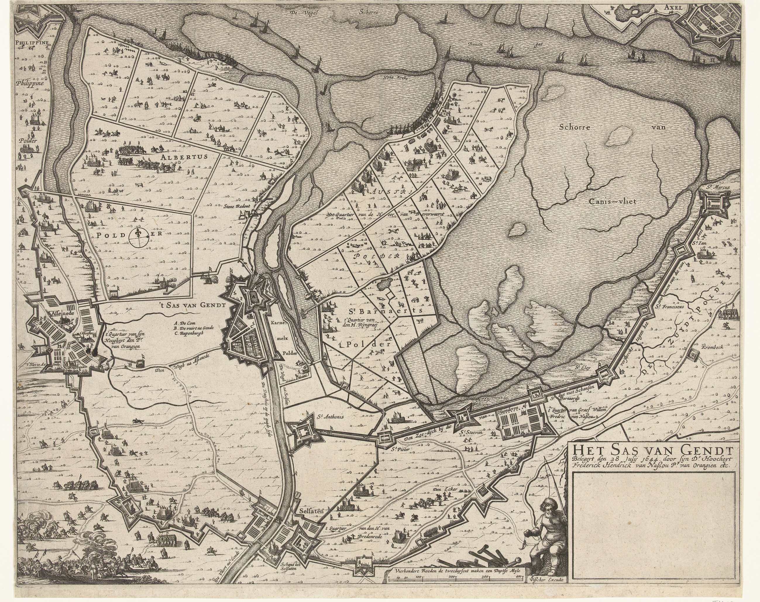 Kaart van het beleg van Sas-van-Gent, 1644