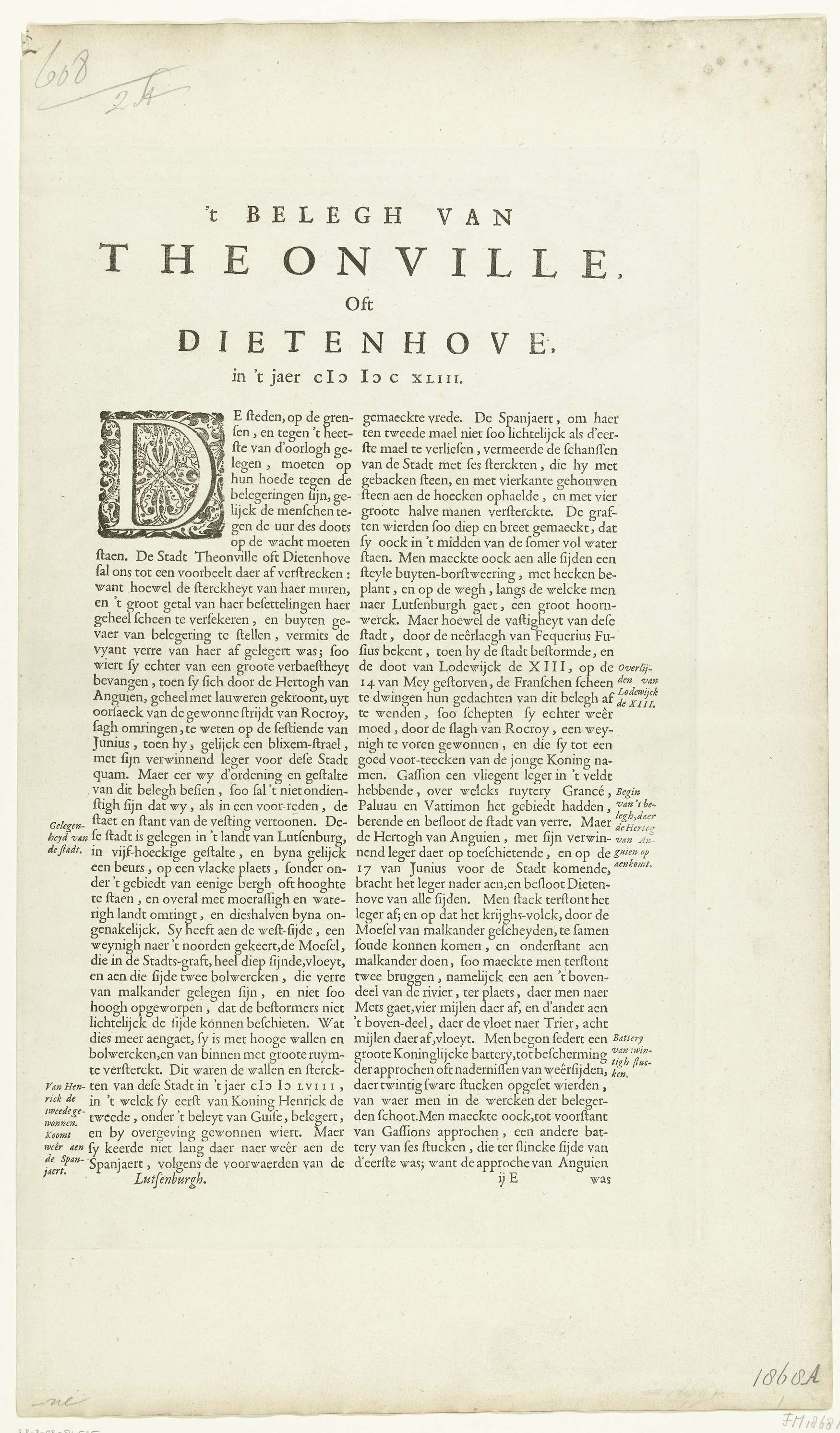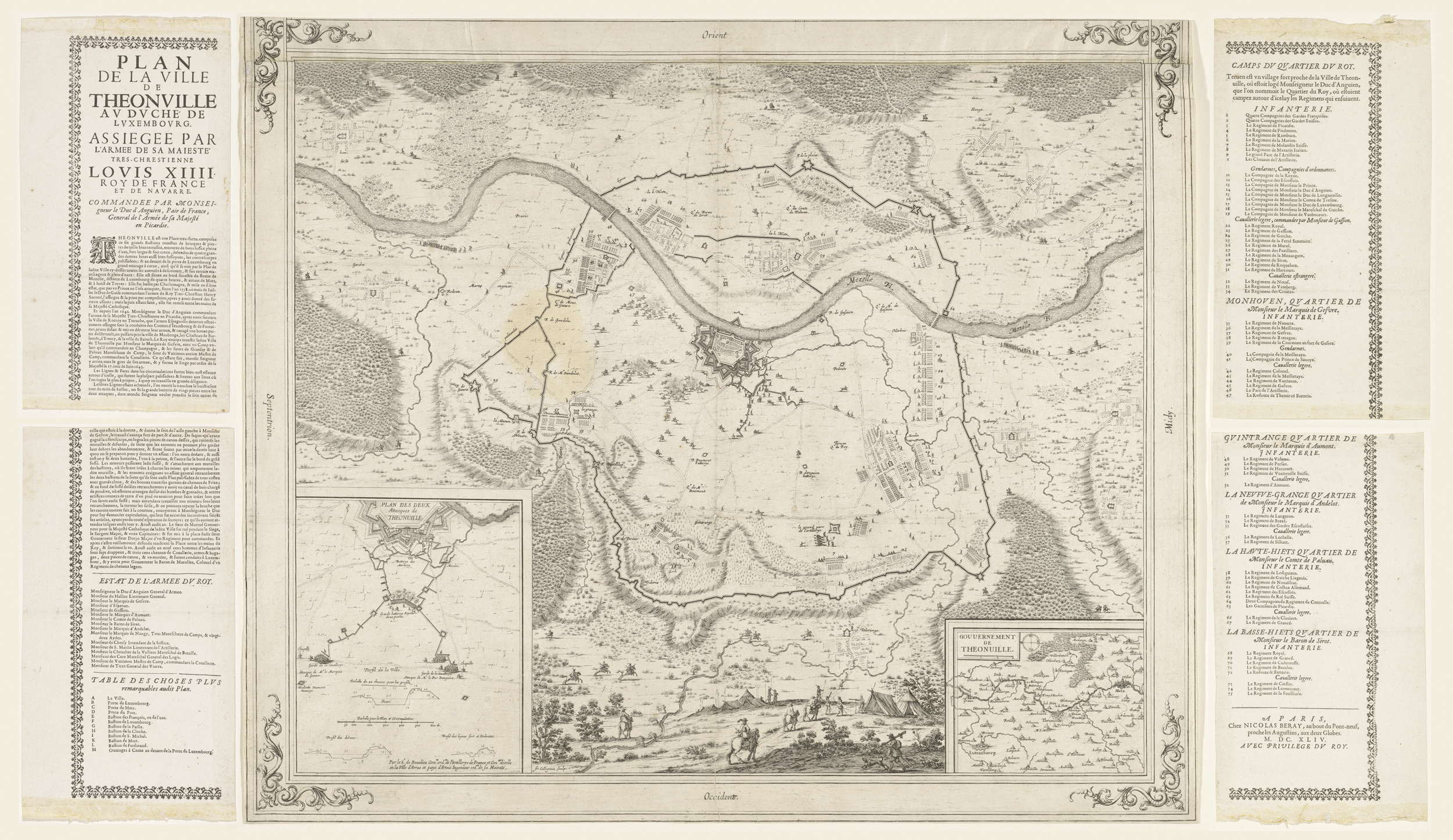 Kaart van het beleg van Thionville, 1643