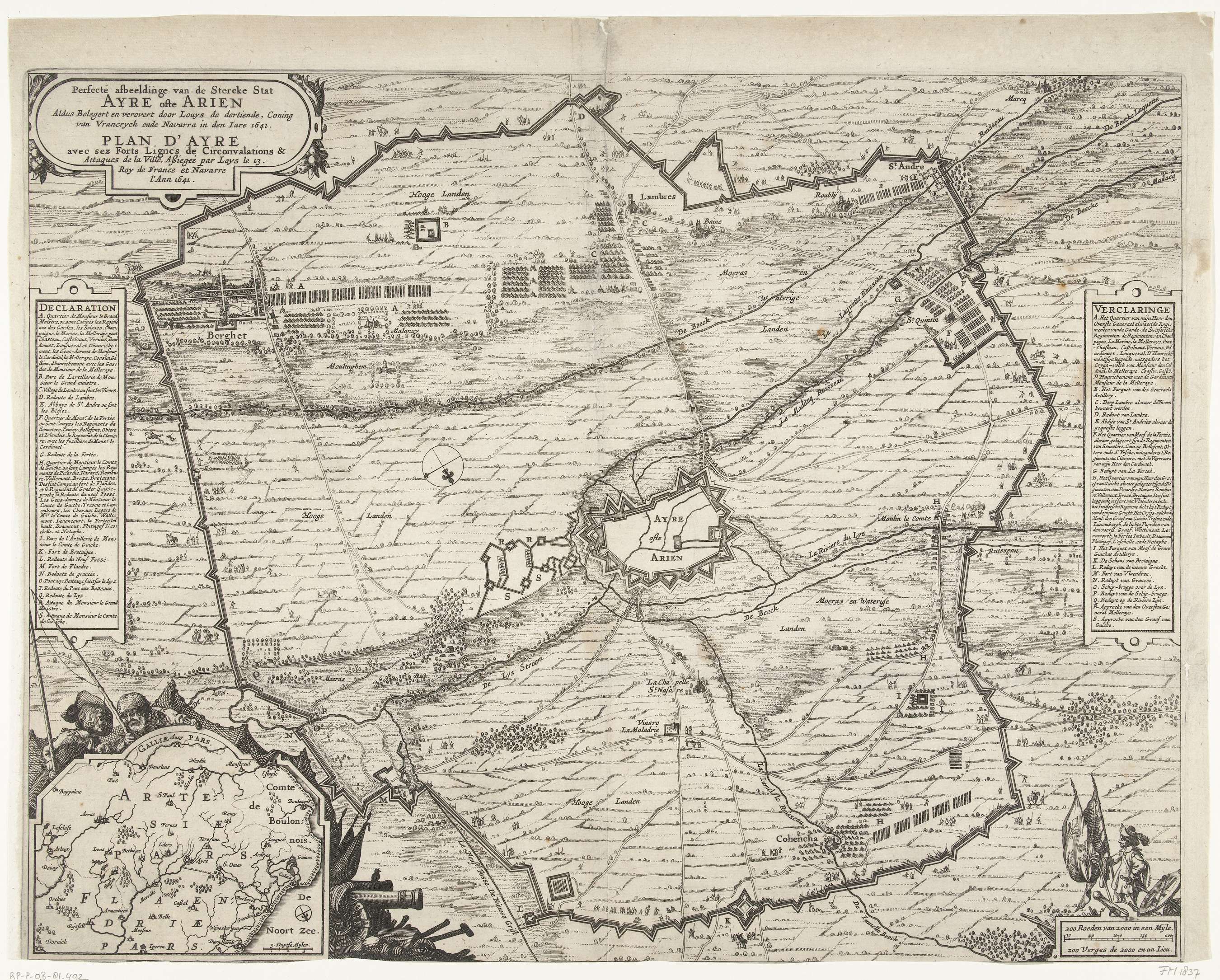 Kaart van het beleg van Aire-sur-la-Lys, 1641