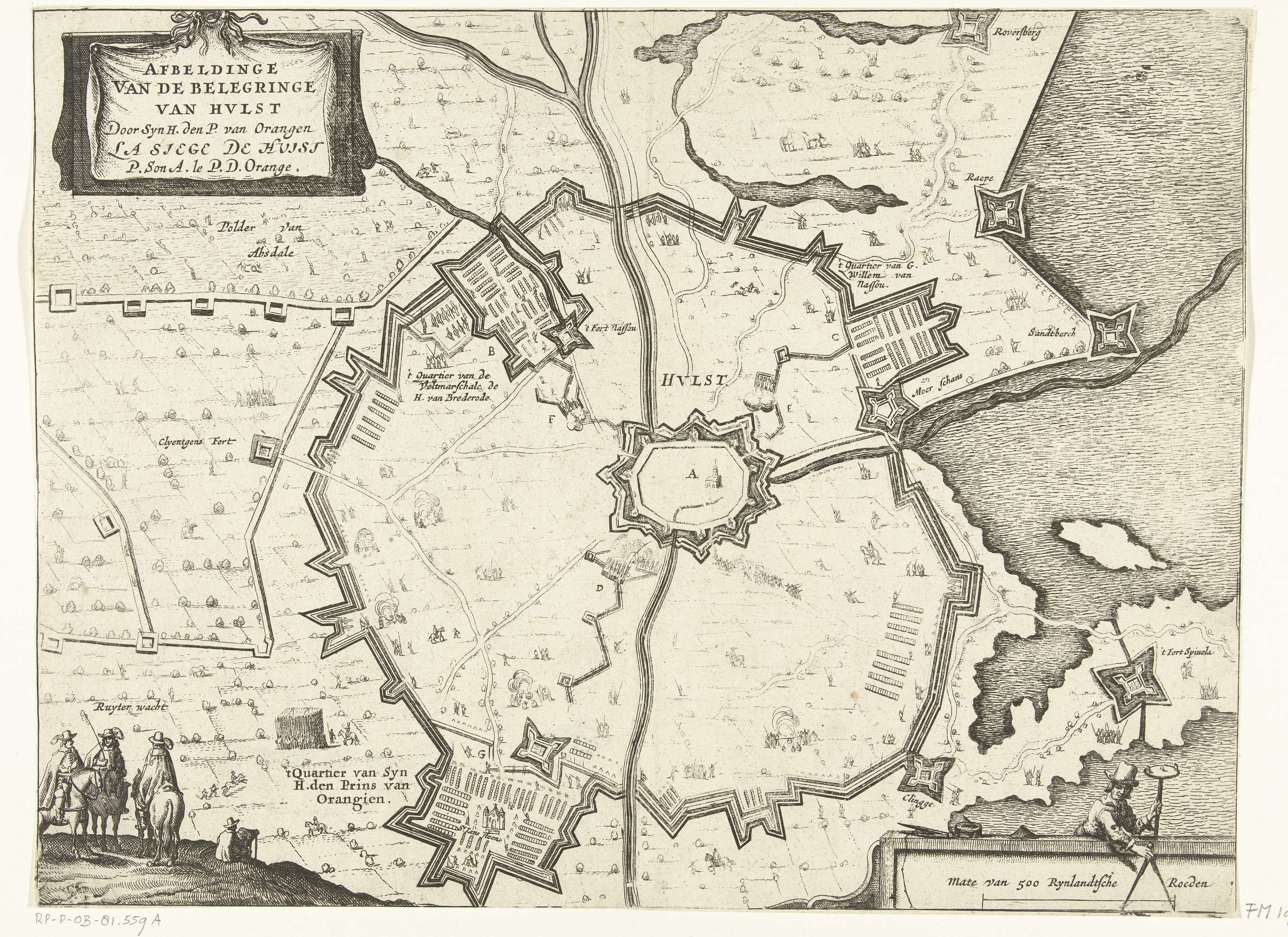 Plattegrond van het belegerde Sas-van-Gent, 1644