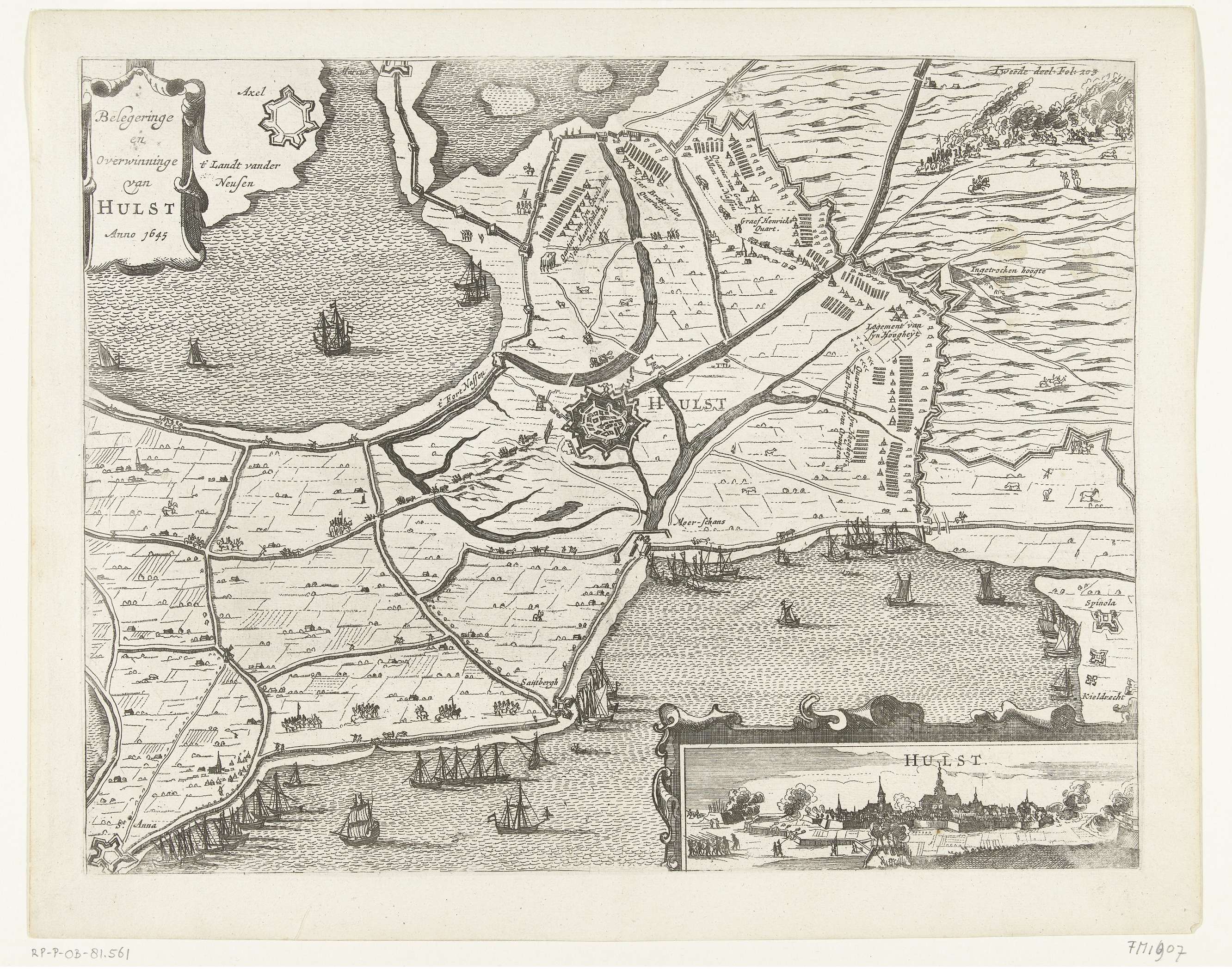 Kaart van beleg en verovering van Sas-van-Gent, 1644