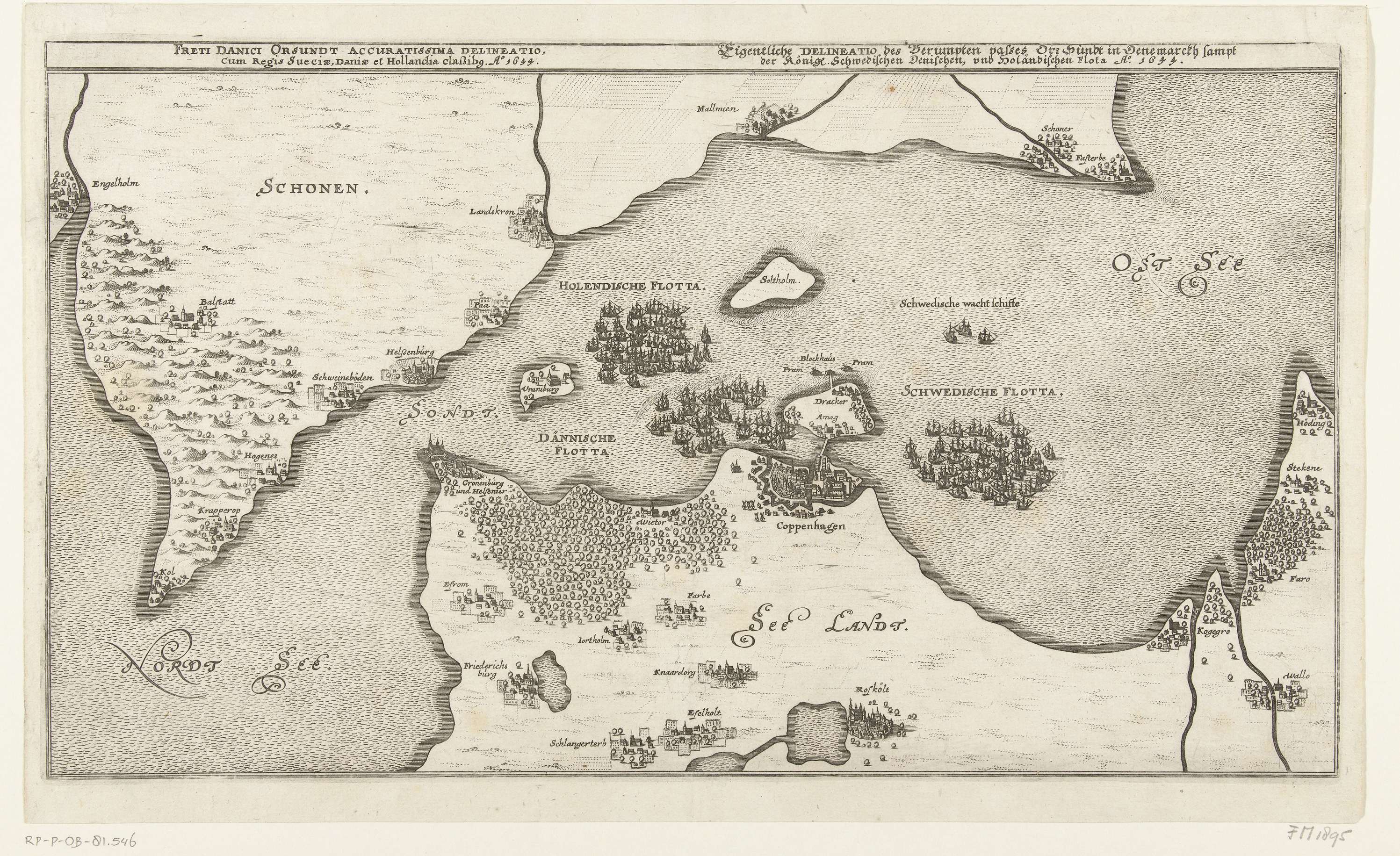 Kaart van de zeeslag tussen de Zweedse en Deense vlo...