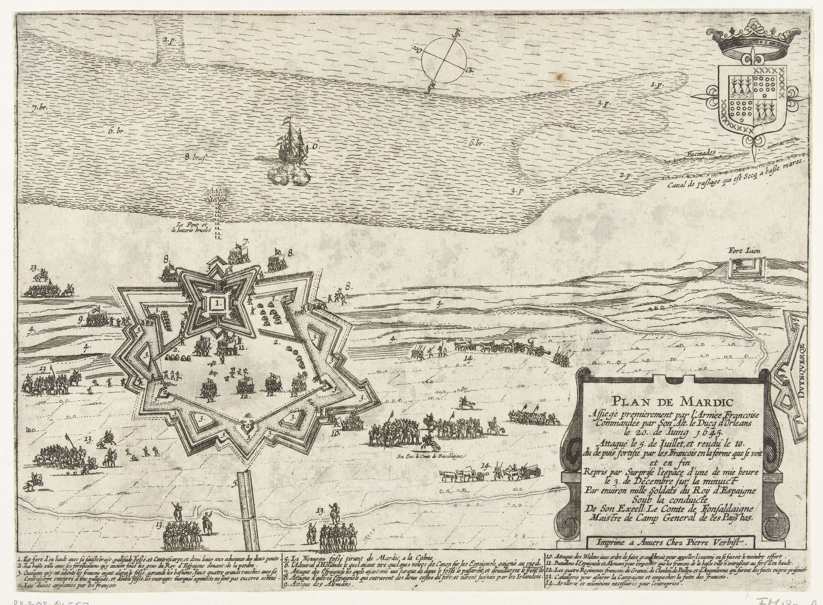 Kaart van beleg en verovering van Grevelingen, 1644