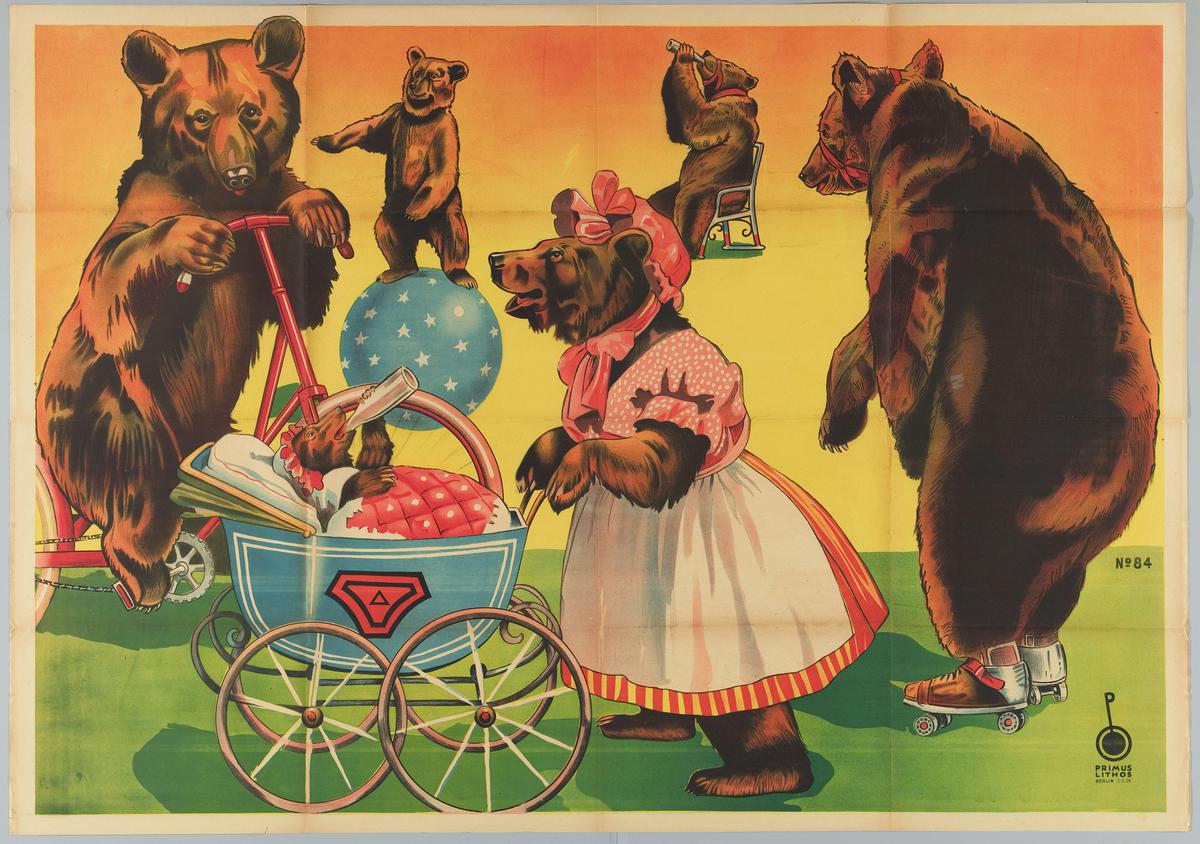 Beren op rolschaatsen, fiets, aangeklede moederbeer ...