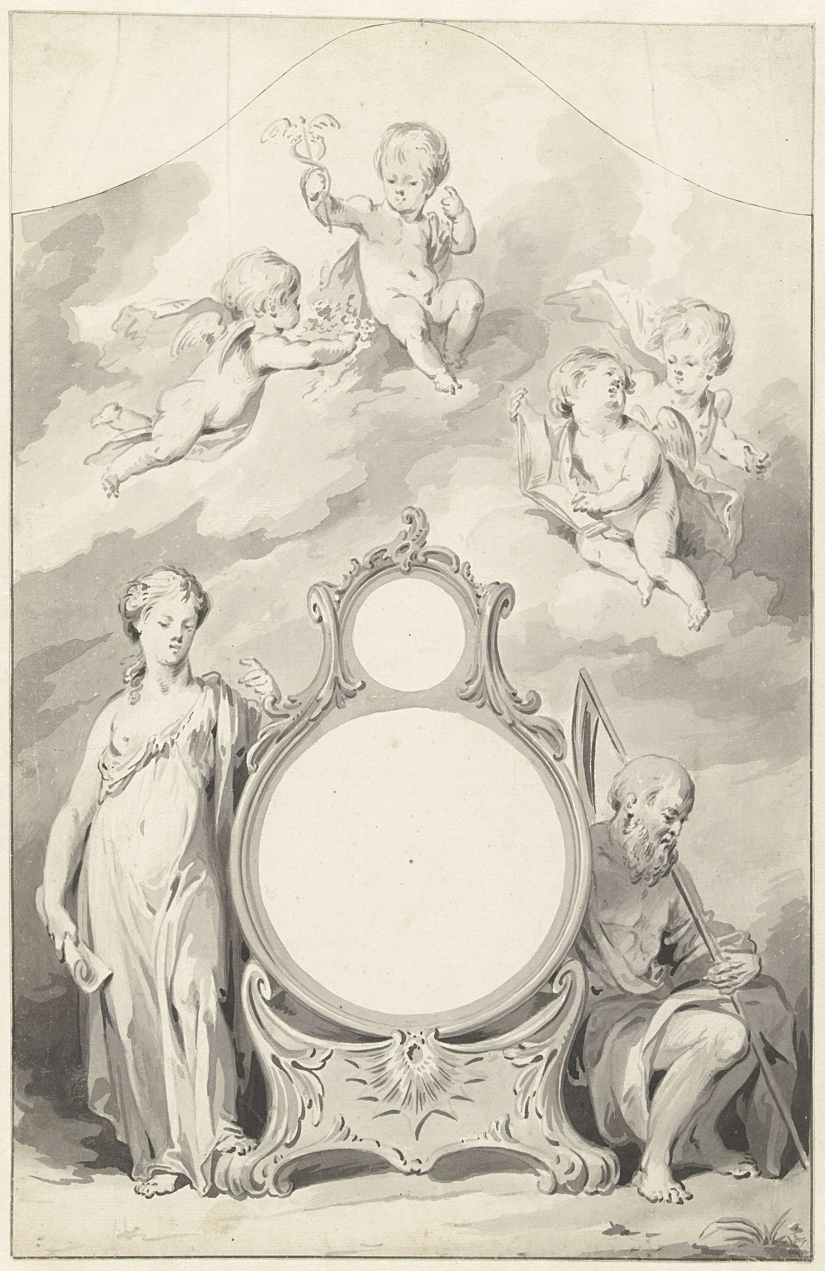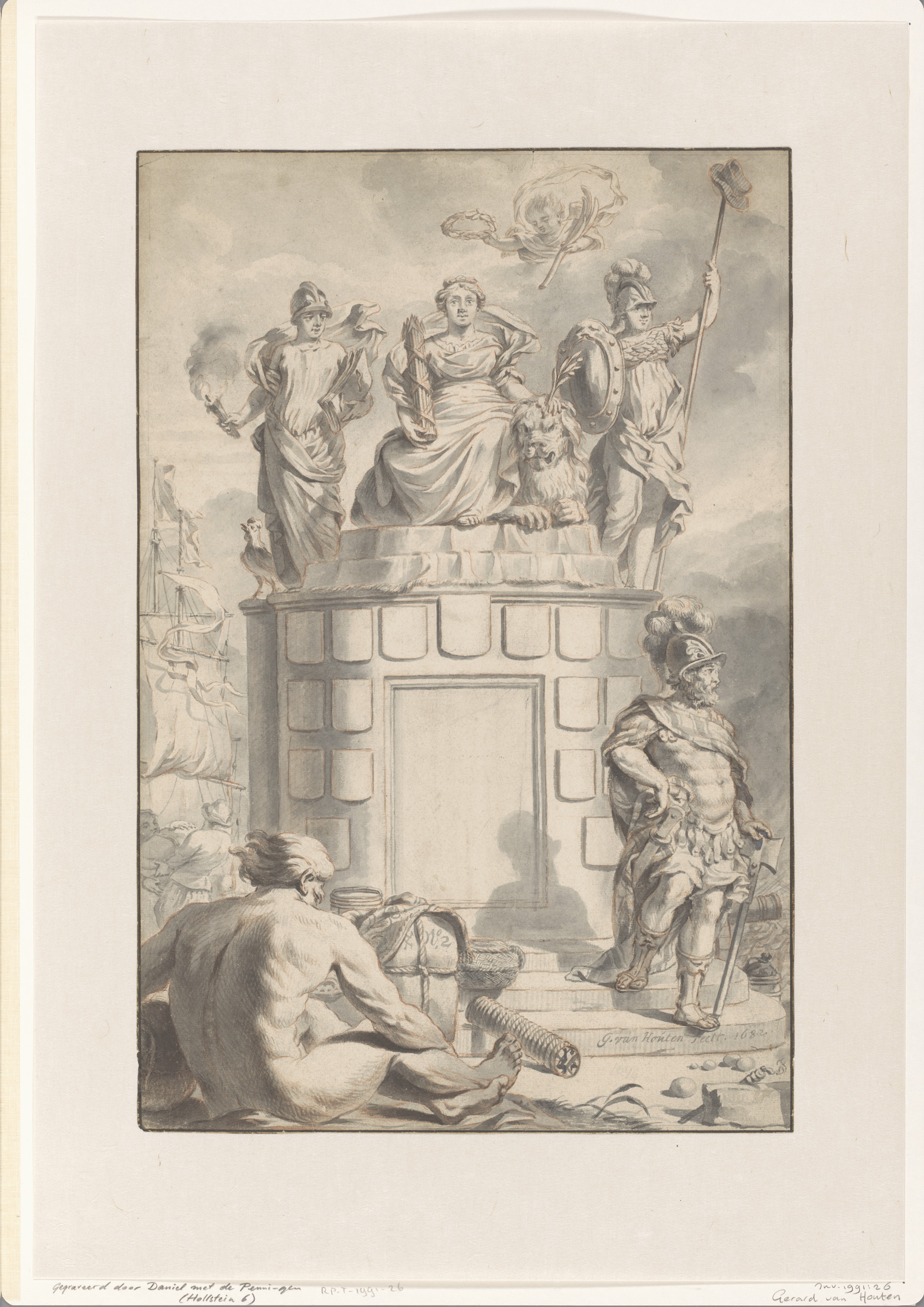 Ontwerp voor een titelprent met de Nederlandsche maa...