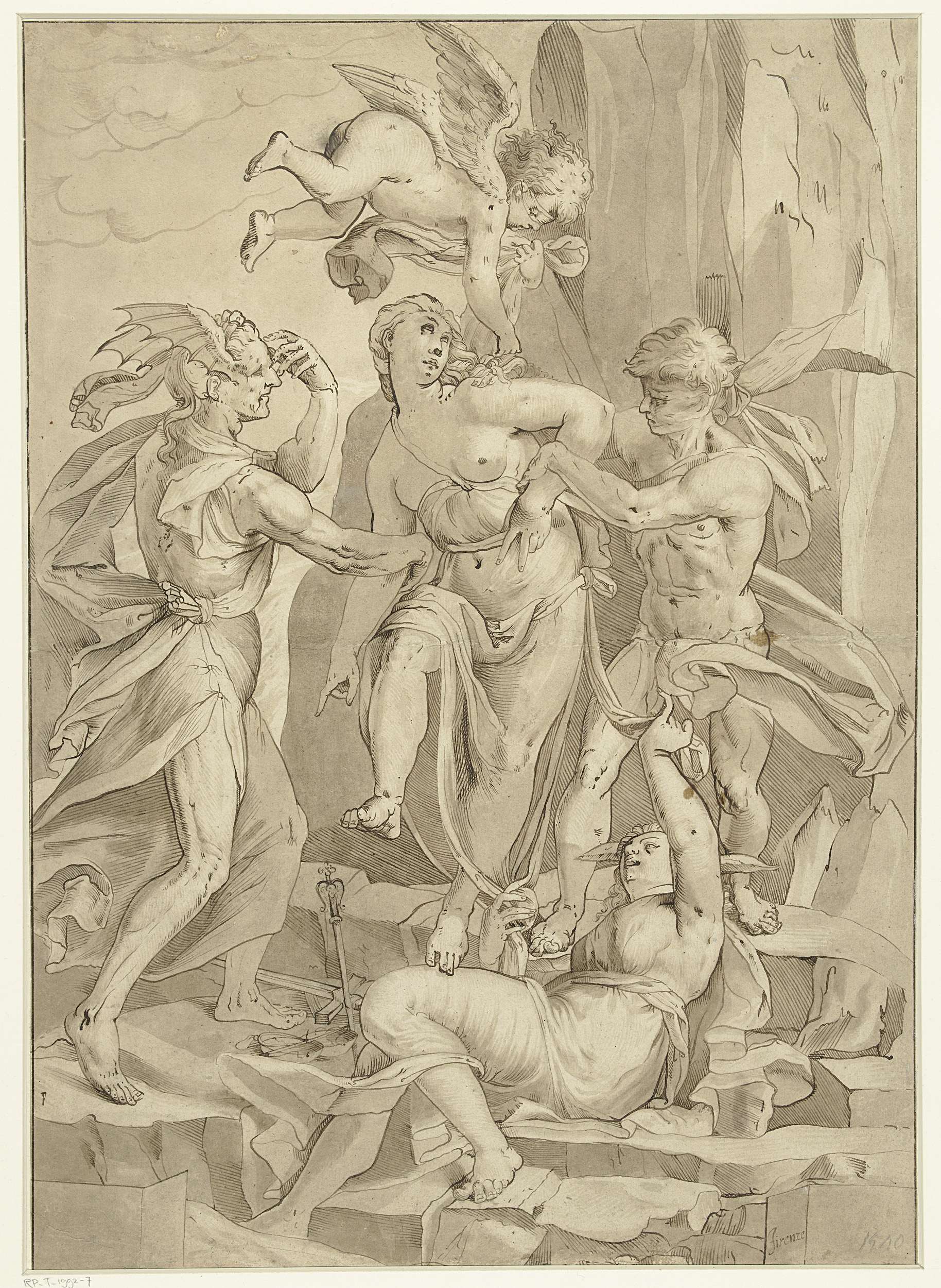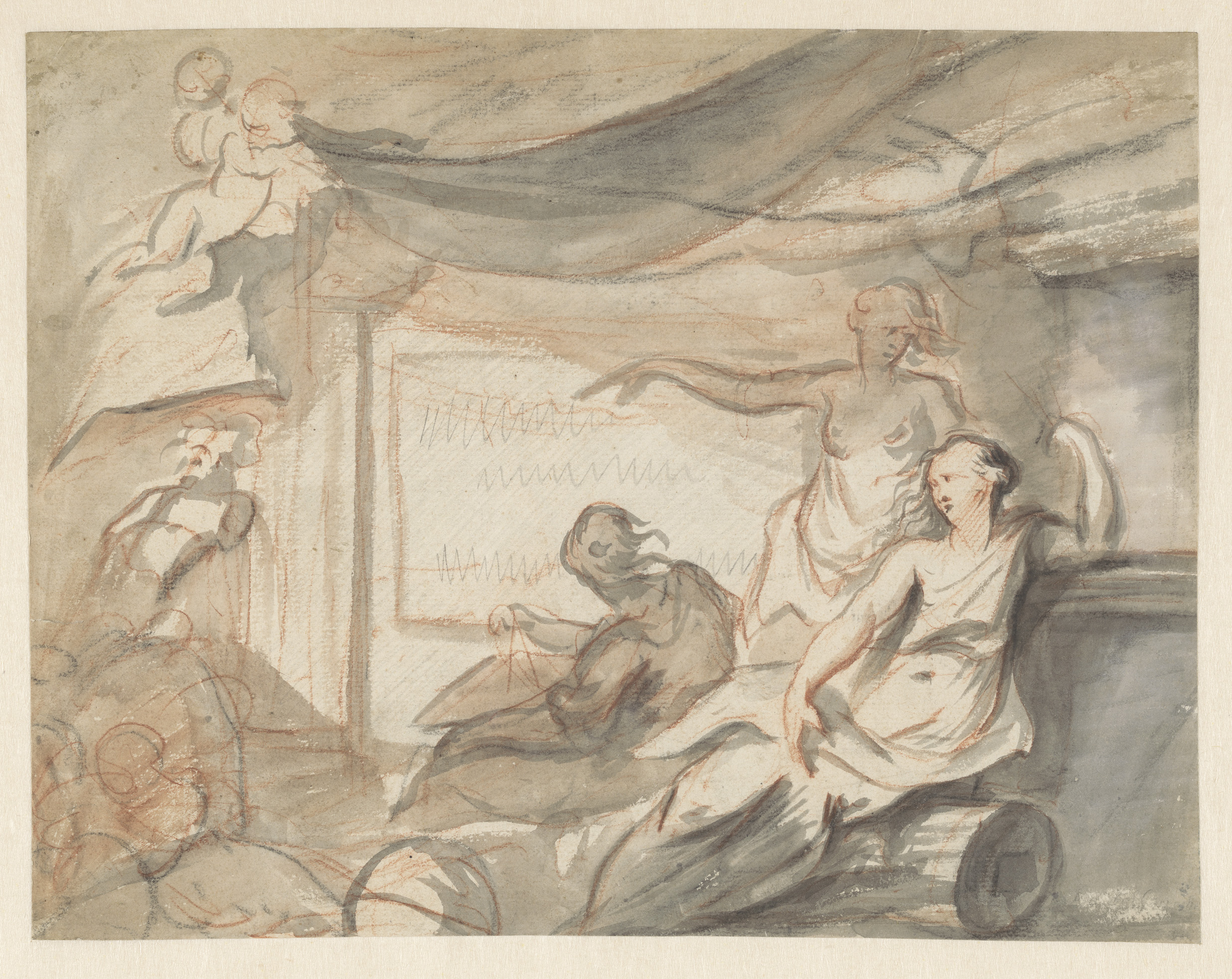 Allegorische voorstelling met Prudentia, Minerva en ...