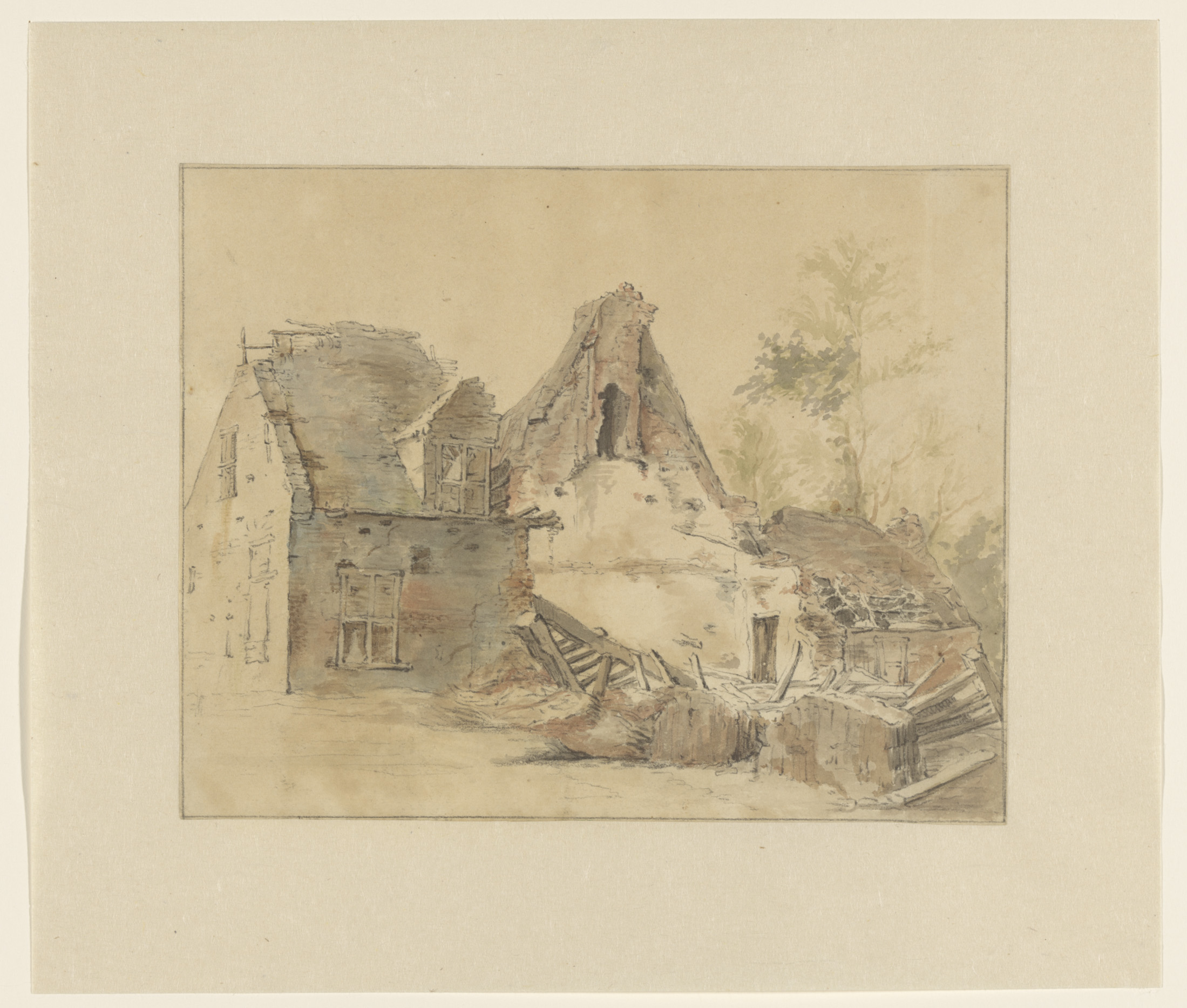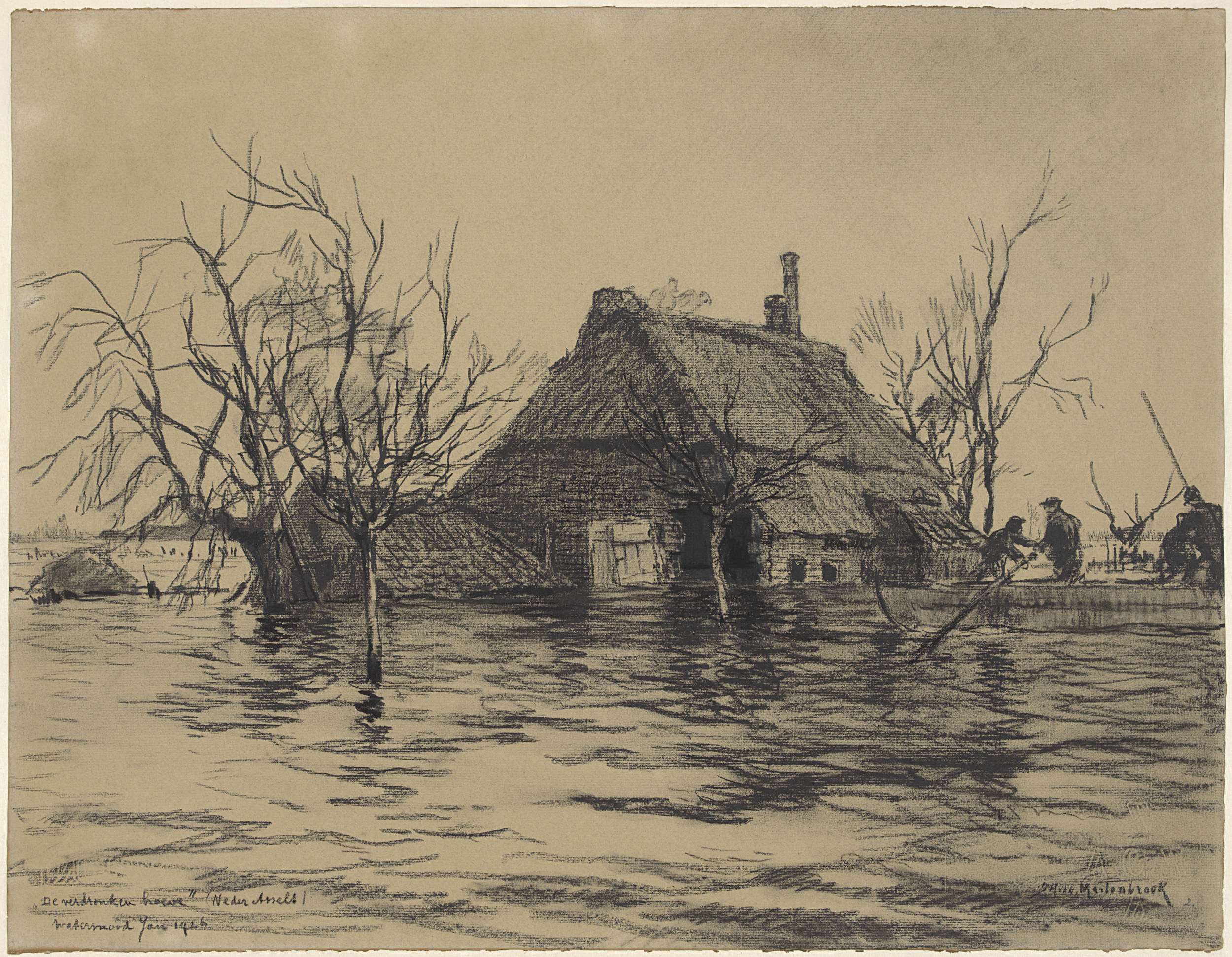 Ondergelopen boerderij te Neder-Asselt (Land van Maa...