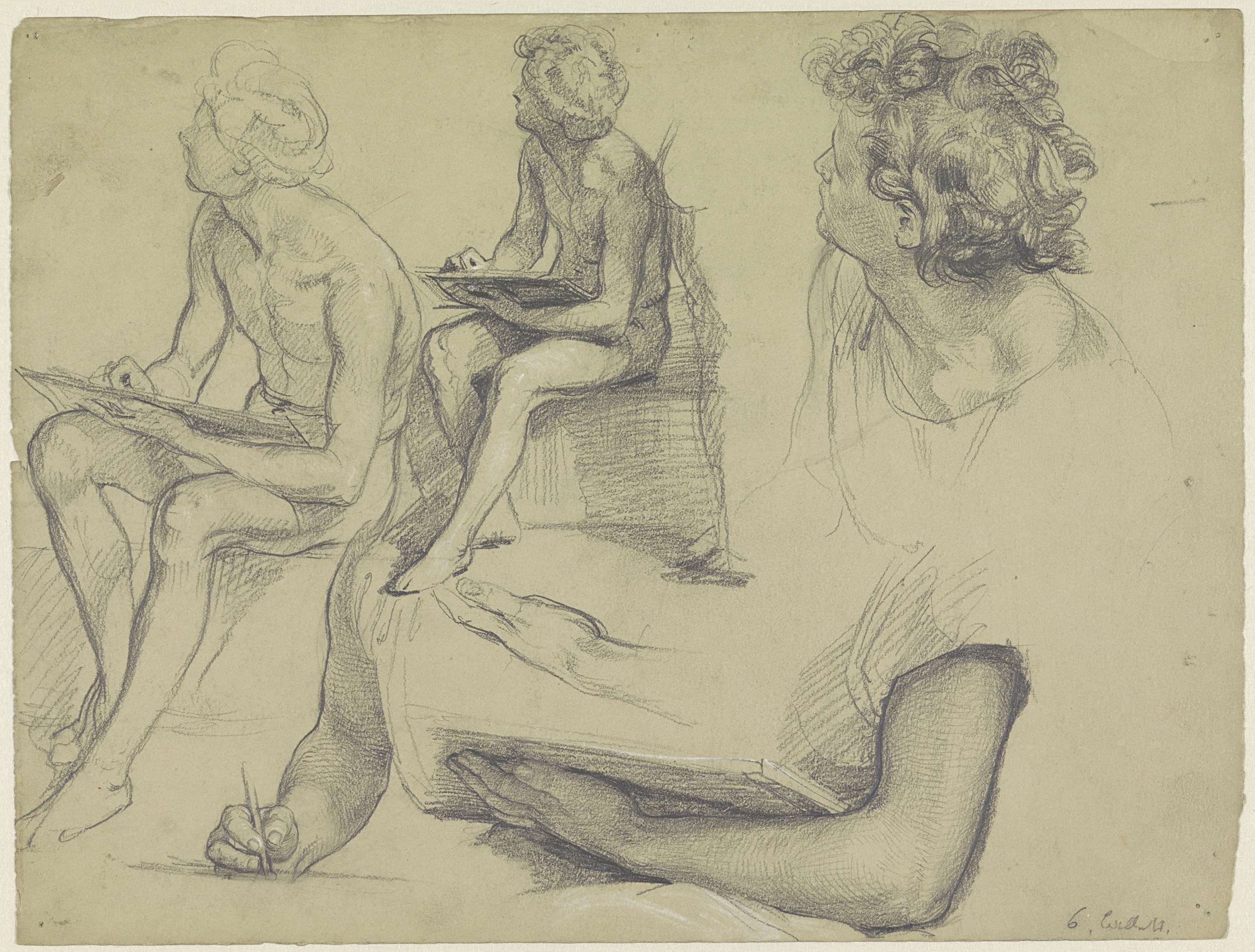 Fragment van een academiestudie: man met rechterhand...