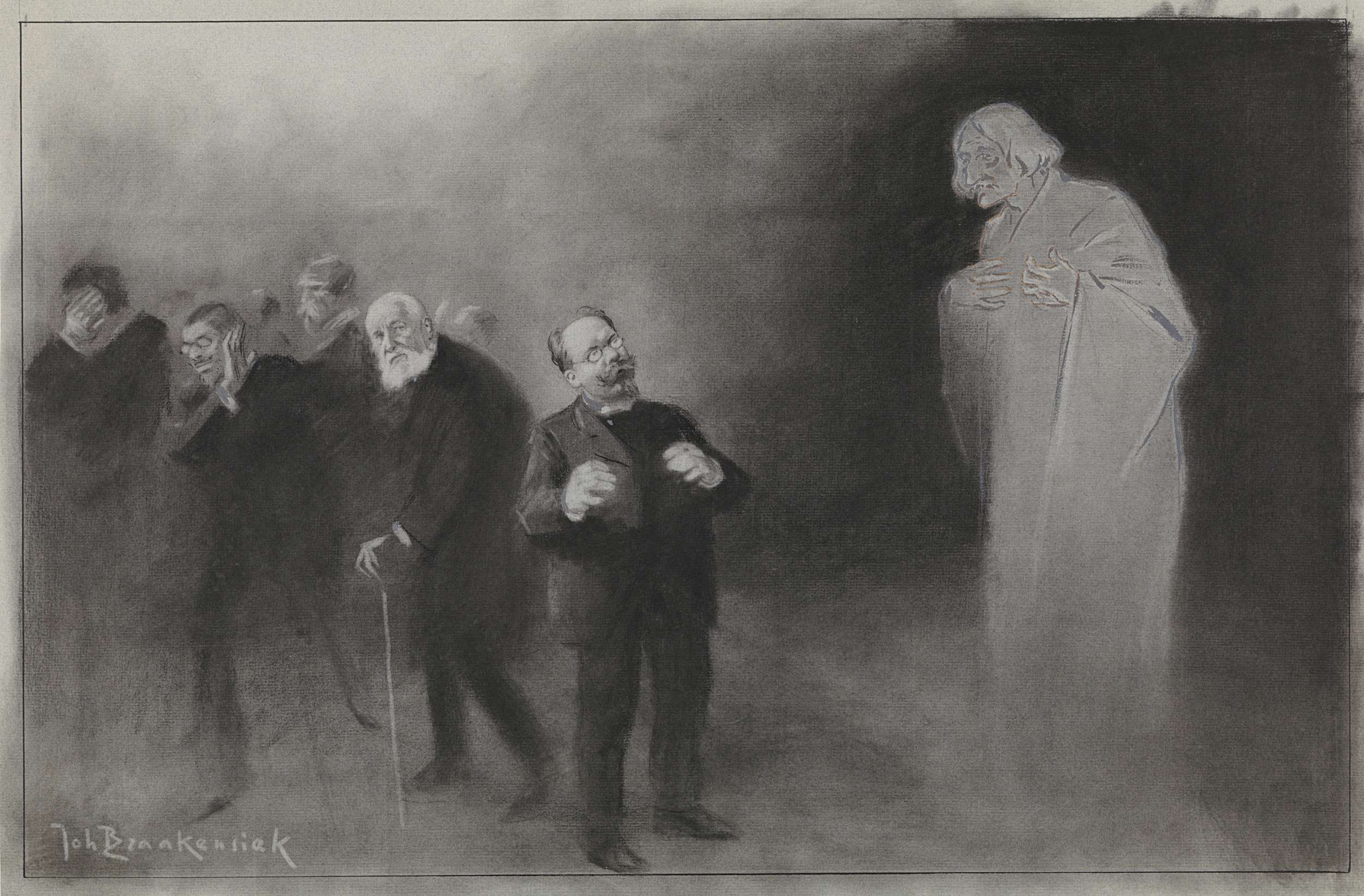 Ontwerp voor illustratie in De Amsterdammer: "Vijf e...