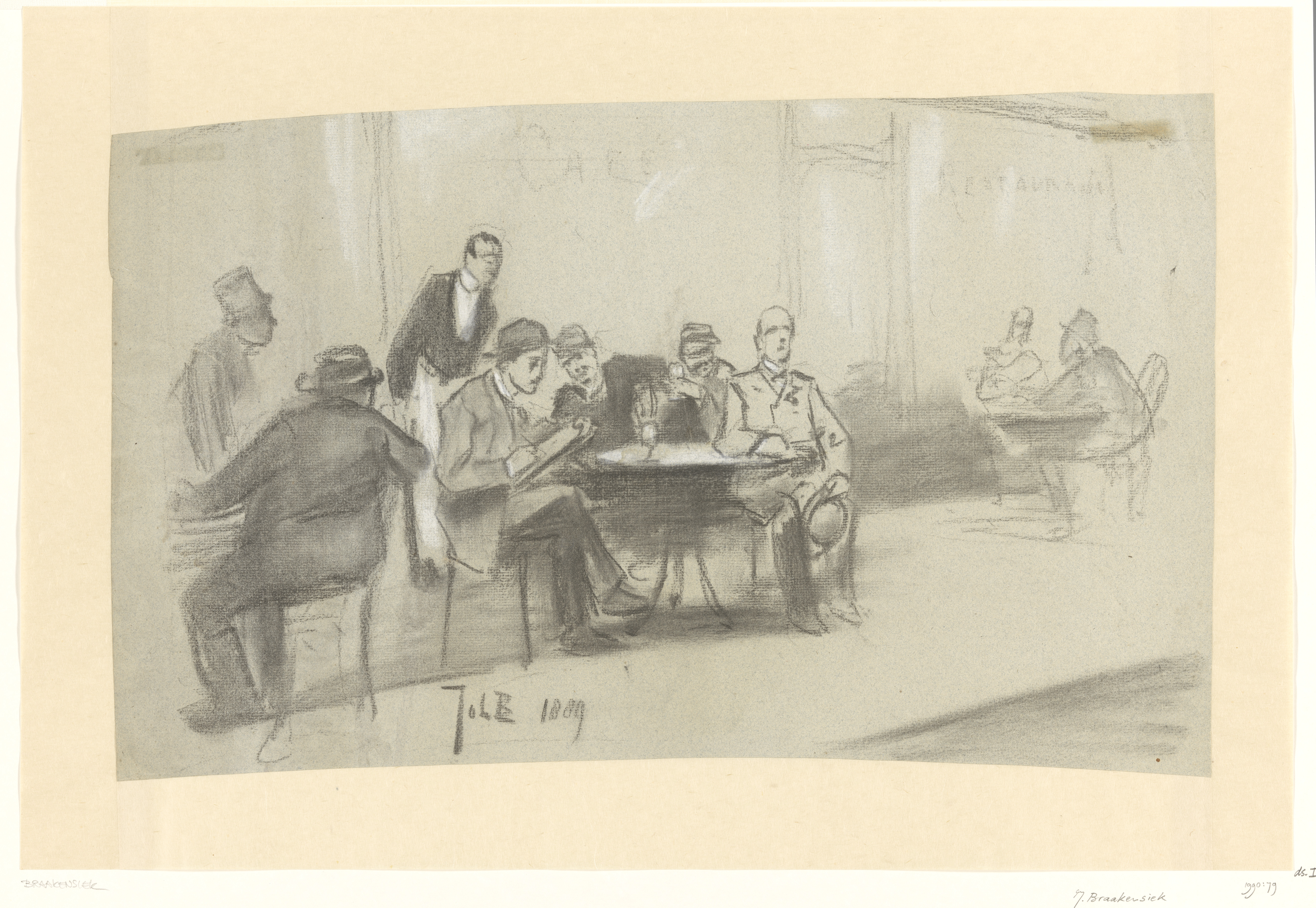 Terras van een café-restaurant, met tekenende kunste...