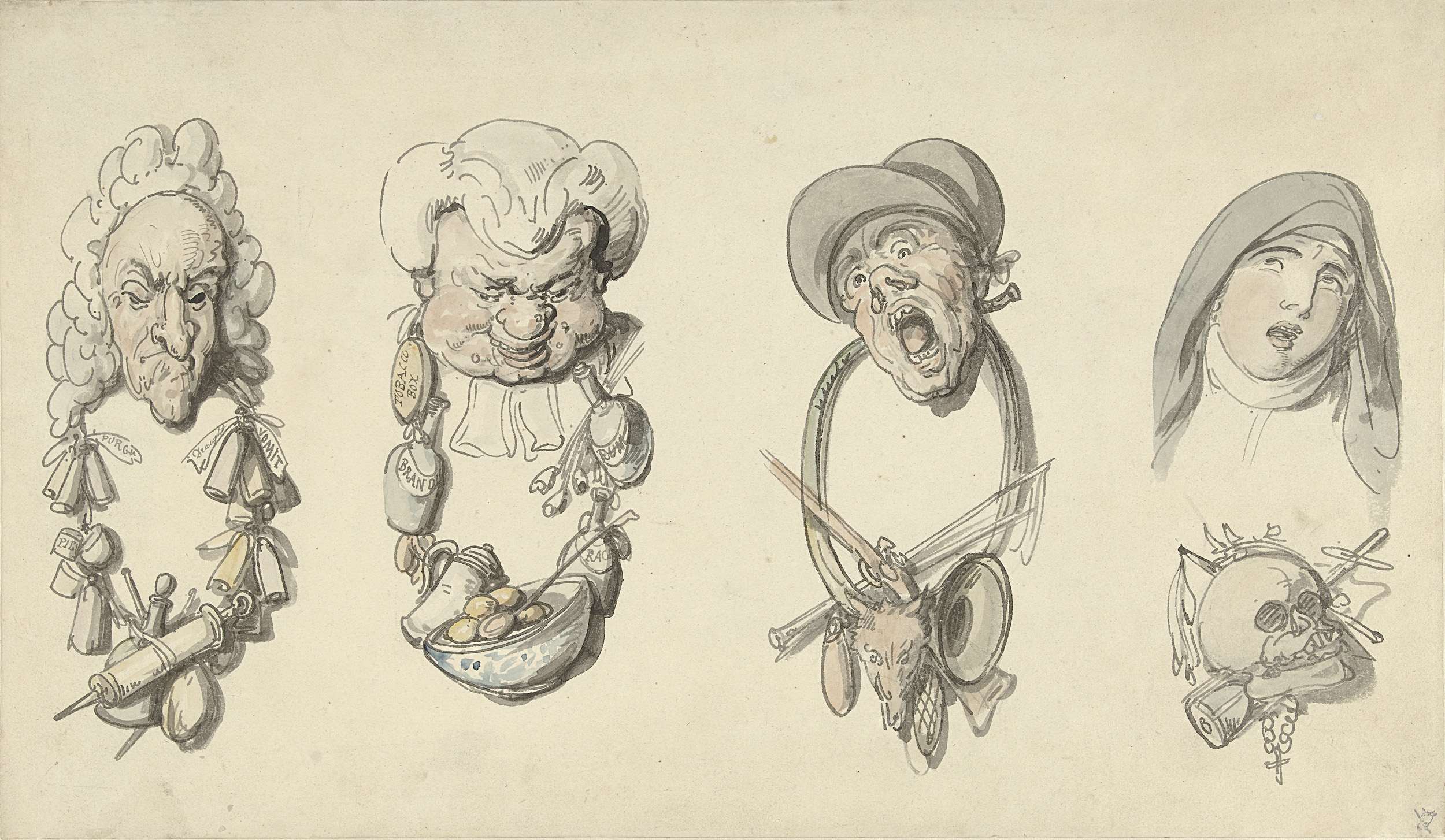 Vier karikaturale koppen